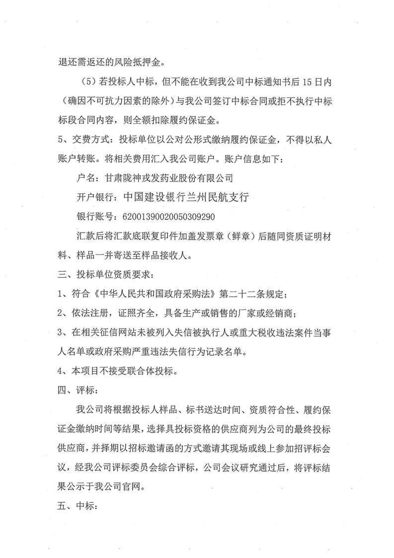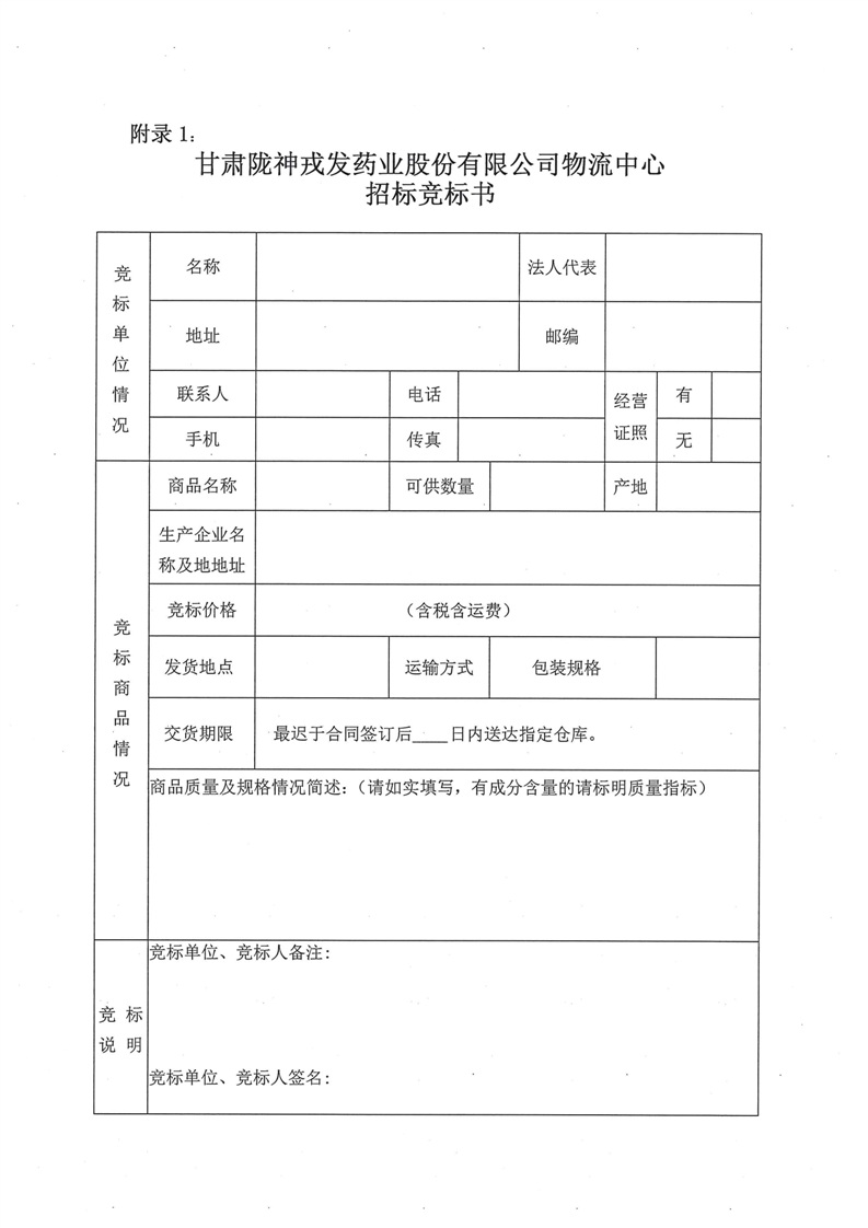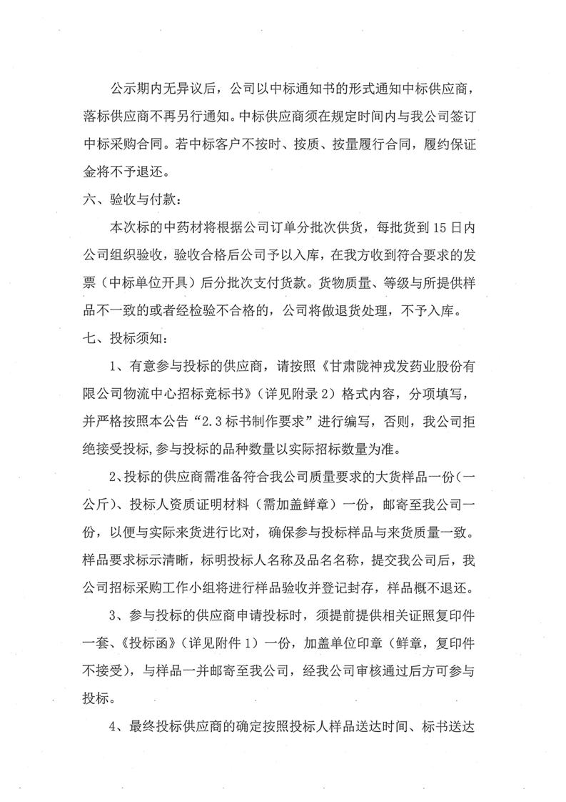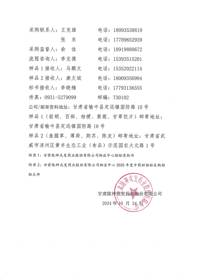 甘肃陇神戎发药业股份有限公司物流中心2025 年度中药材招标采购公告
