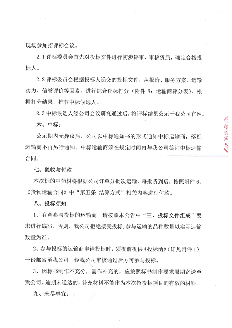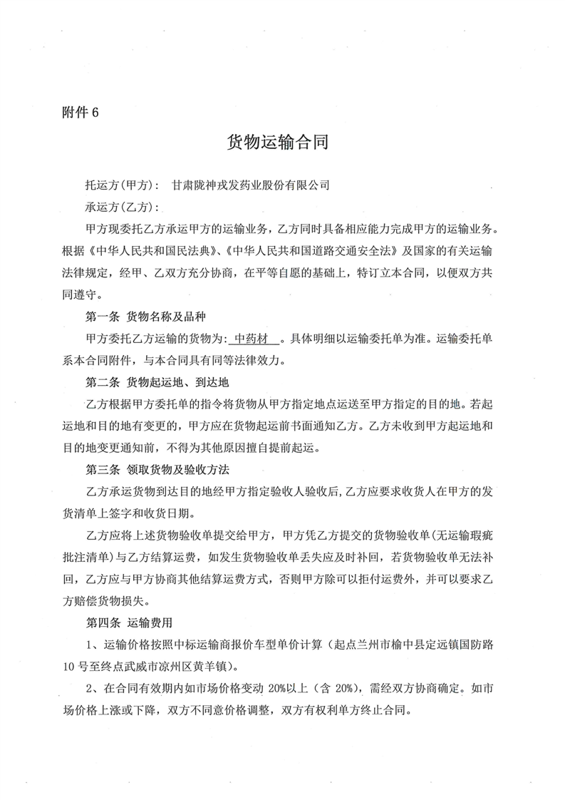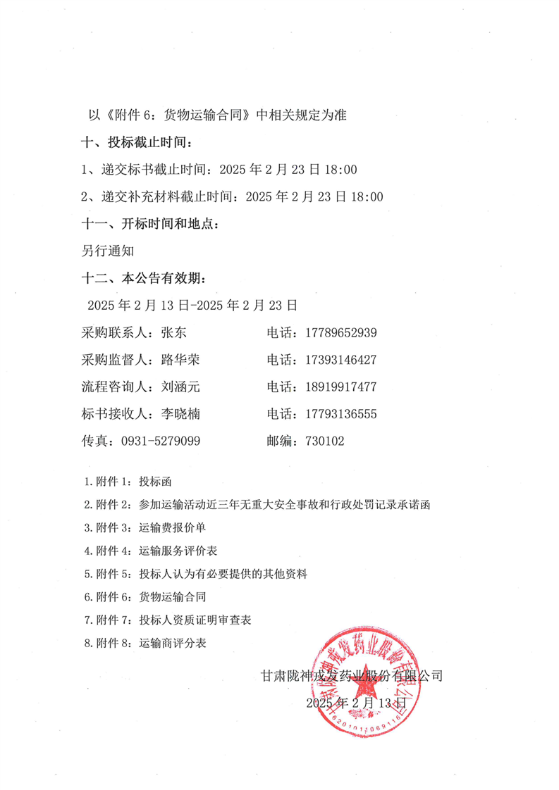 甘肃陇神戎发药业股份有限公司中药材运输服务招标公告