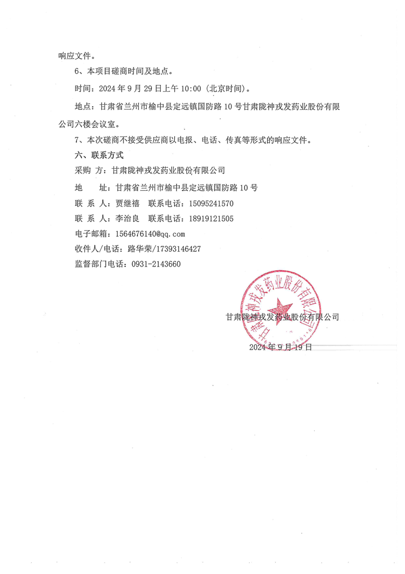 甘肃陇神戎发药业股份有限公司三类医疗器械血液透析浓缩液(粉)开发及生产线建设项目注册服务机构选聘竞争性磋商公告