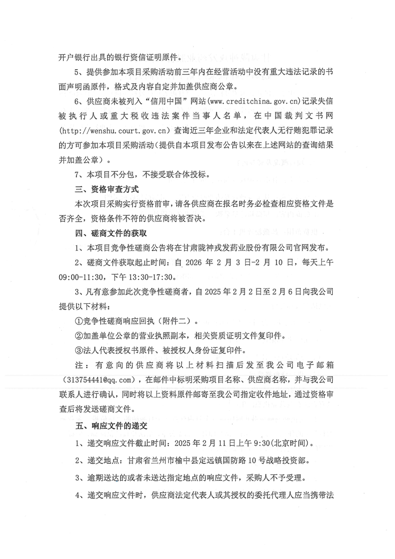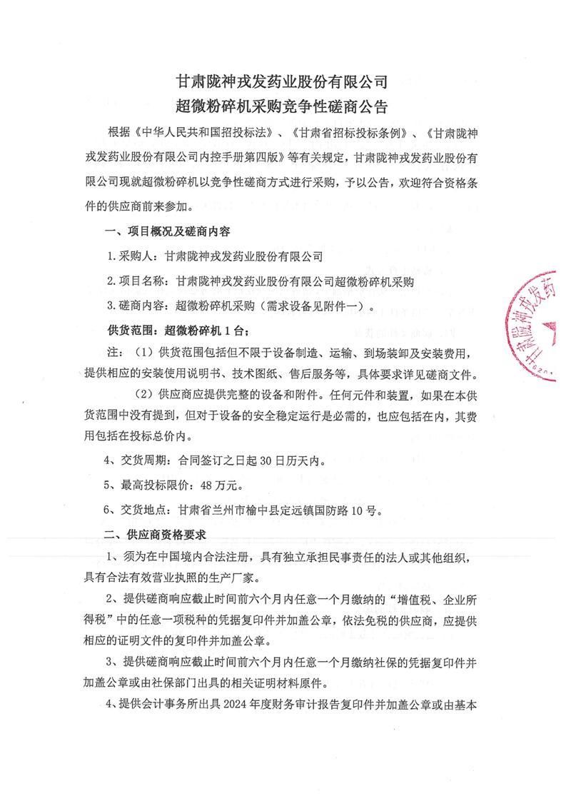 甘肃陇神戎发药业股份有限公司超微粉碎机采购竞争性磋商公告