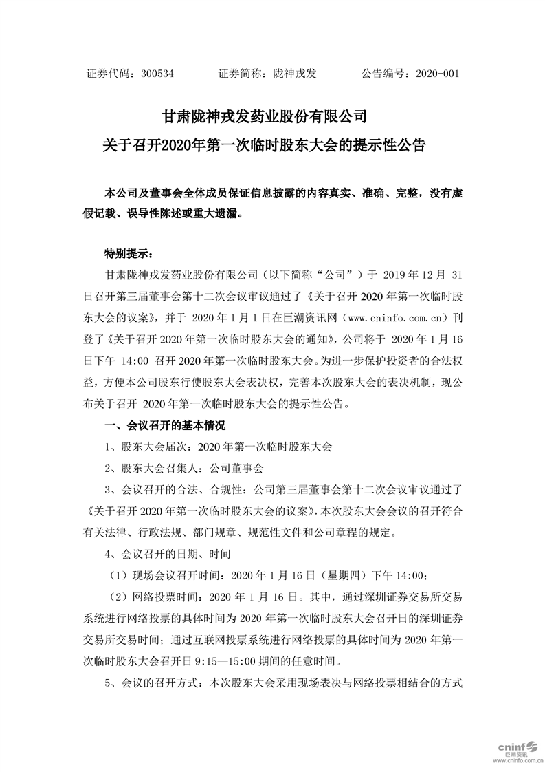 关于召开2020年第一次临时股东大会的提示性公告