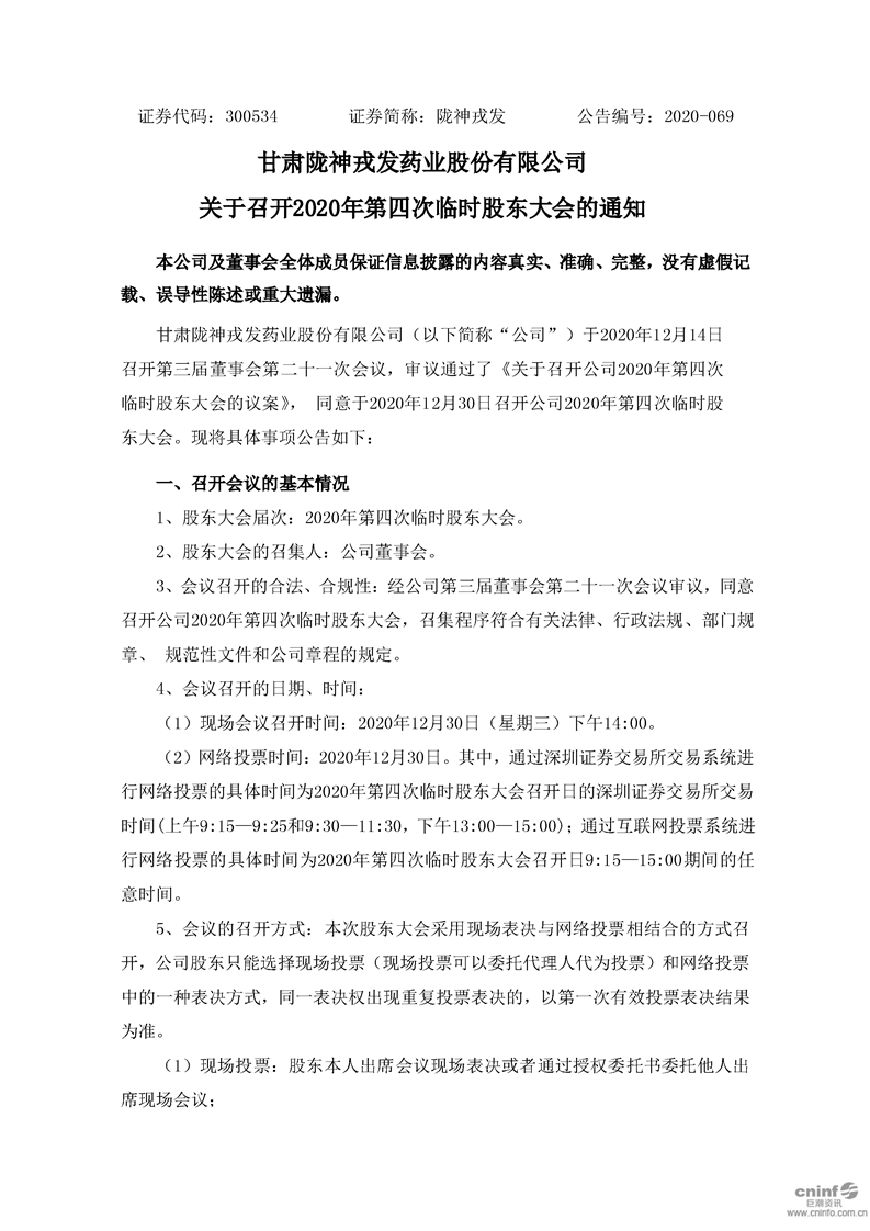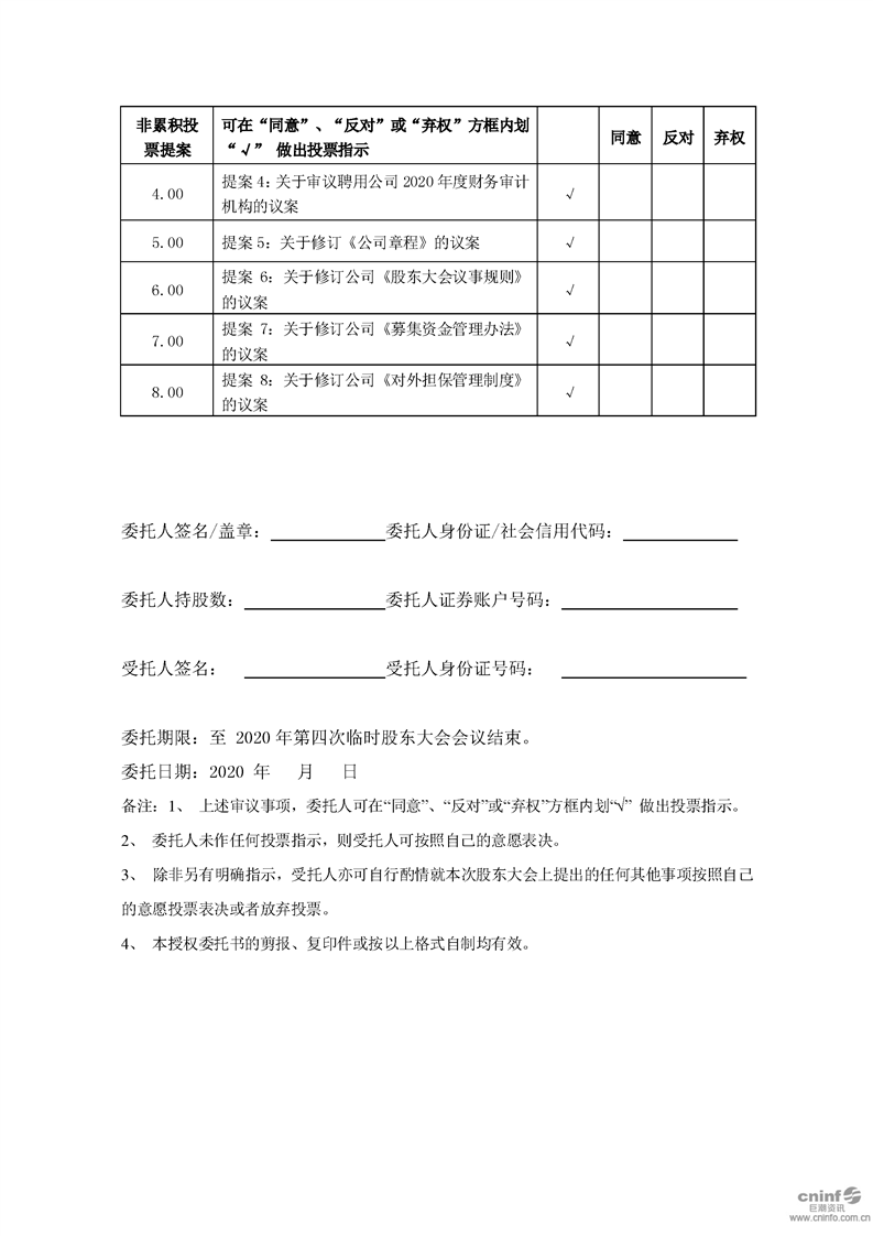 关于召开2020年第四次临时股东大会的通知