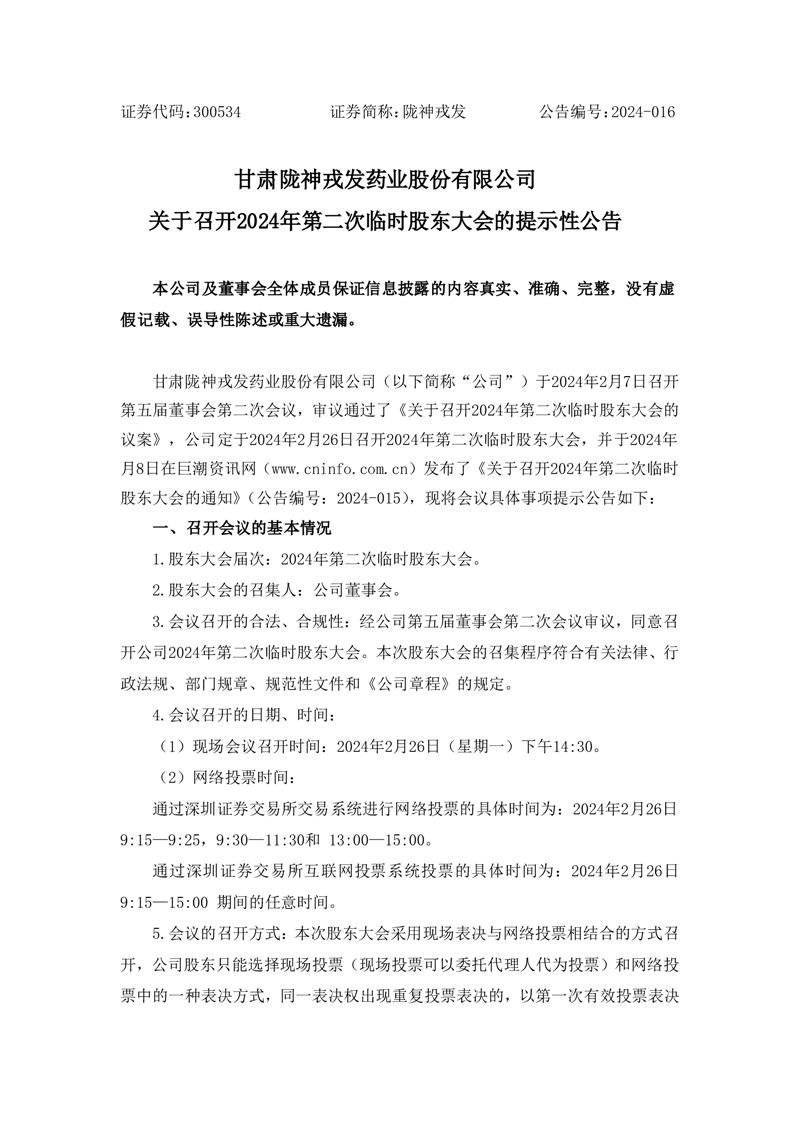 关于召开2024年第二次临时股东大会的提示性公告