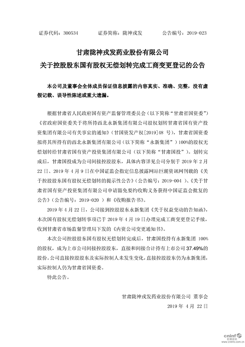 关于控股股东国有股权无偿划转完成工商变更登记的公告