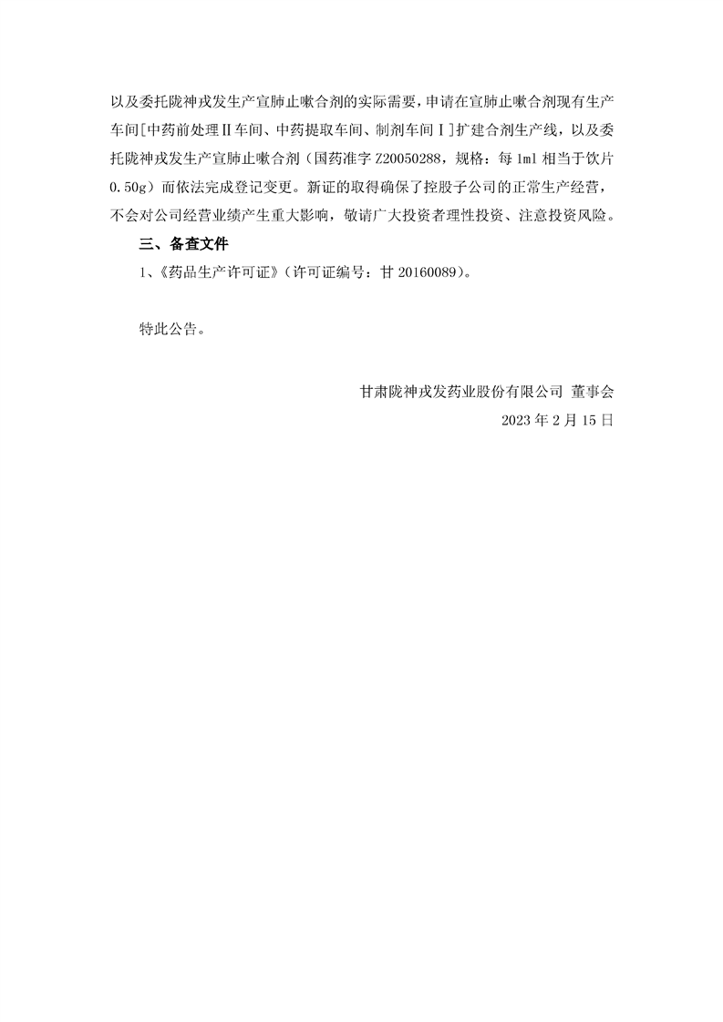 关于控股子公司取得换发后的《药品生产许可证》的公告