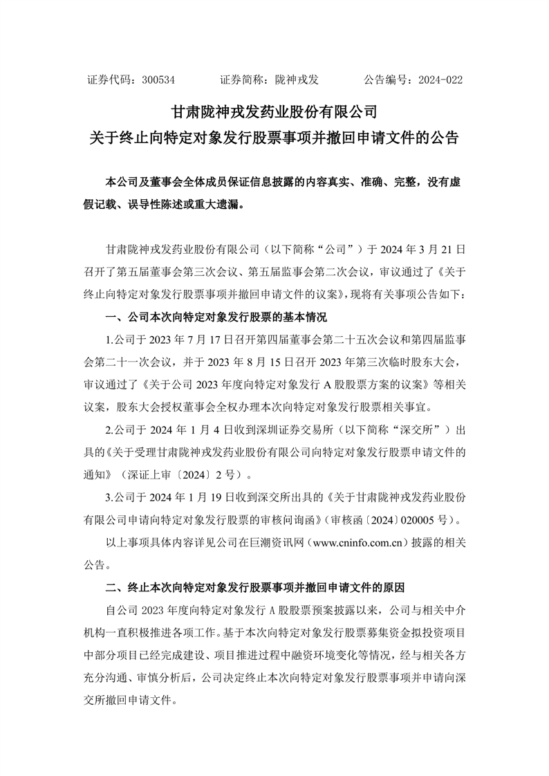 关于终止向特定对象发行股票事项并撤回申请文件的公告