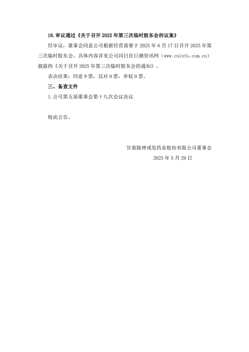 第五届董事会第十九次会议决议公告
