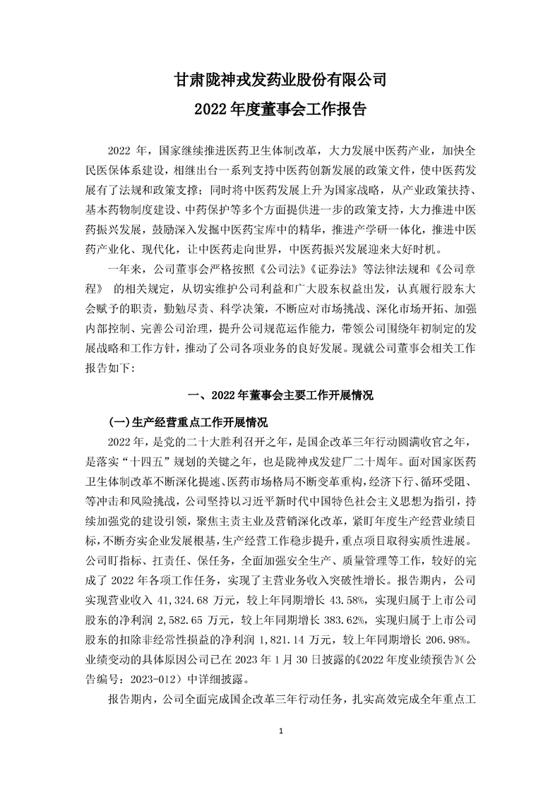 2022年度董事会工作报告