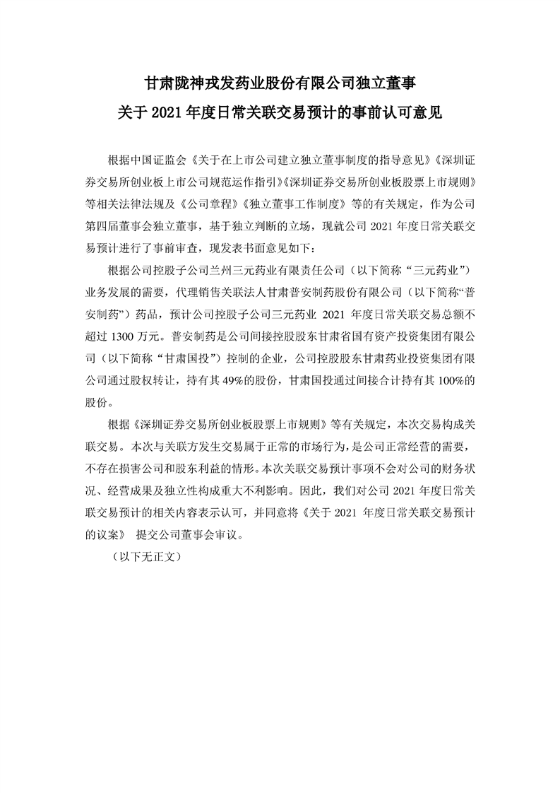 独立董事关于2021年度日常关联交易预计的事前认可意见