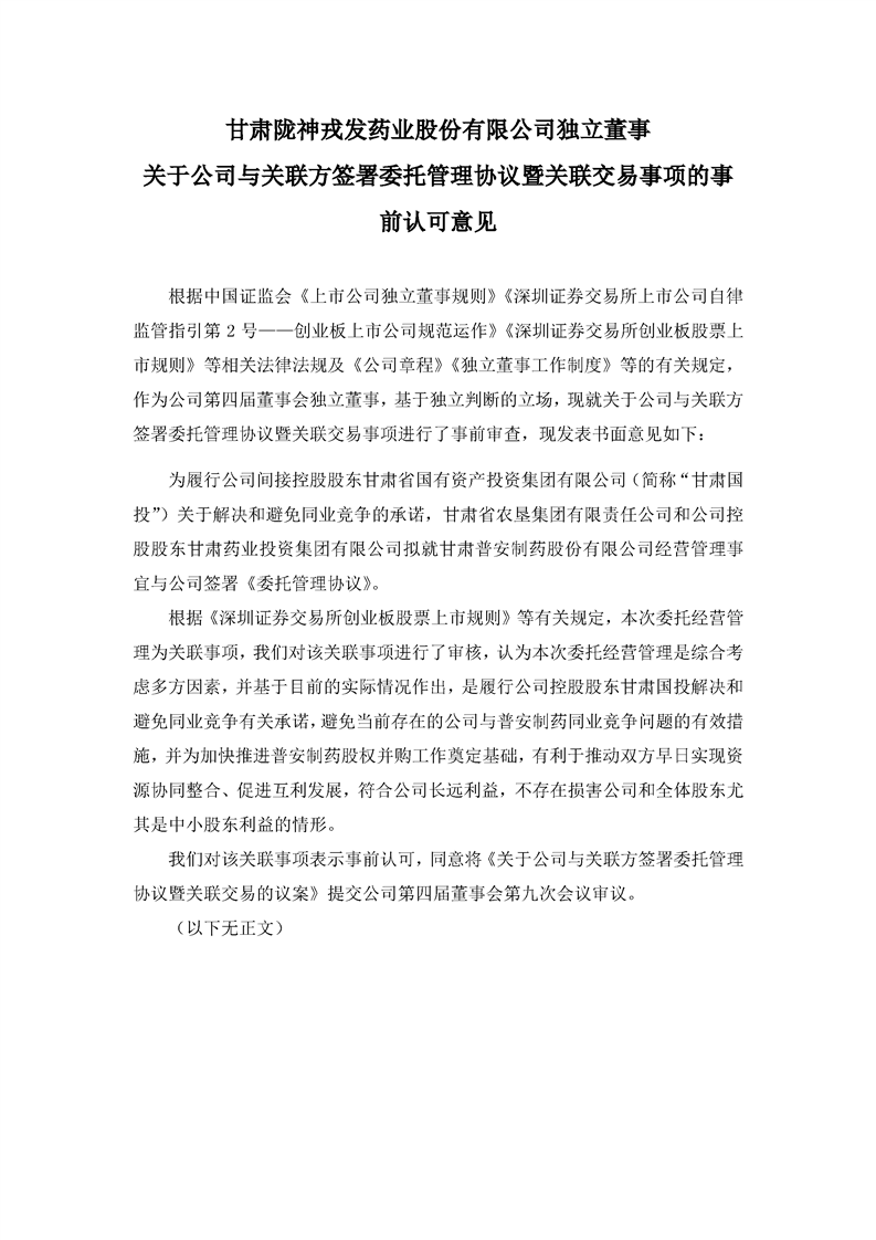 独立董事关于公司与关联方签署委托管理协议暨关联交易事项的事前认可意见