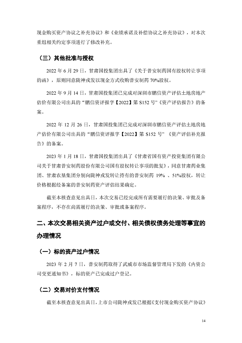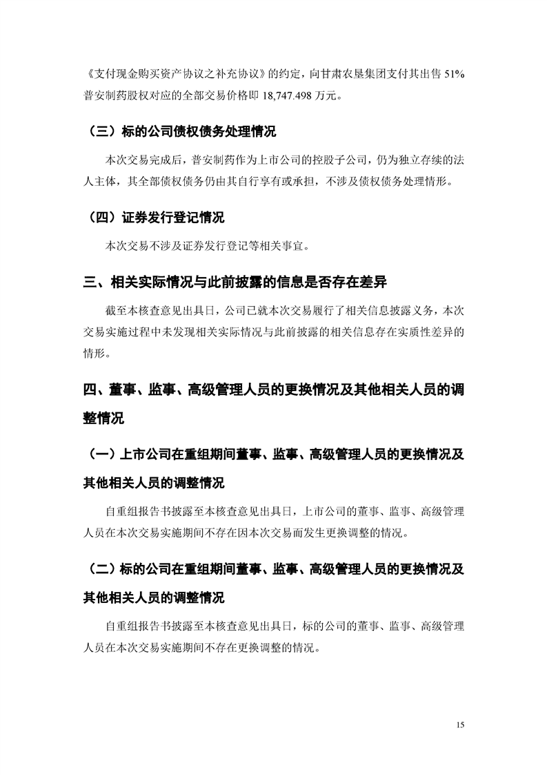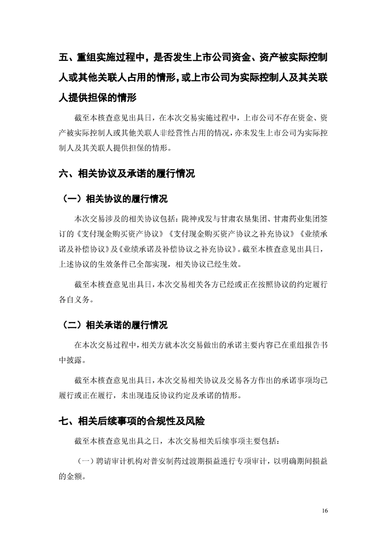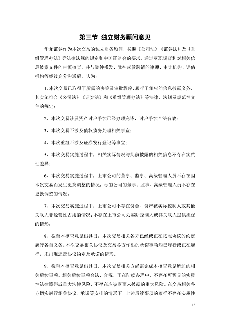 华龙证券股份有限公司关于甘肃陇神戎发药业股份有限公司重大资产购买暨关联交易实施情况之独立财务顾问核查意见