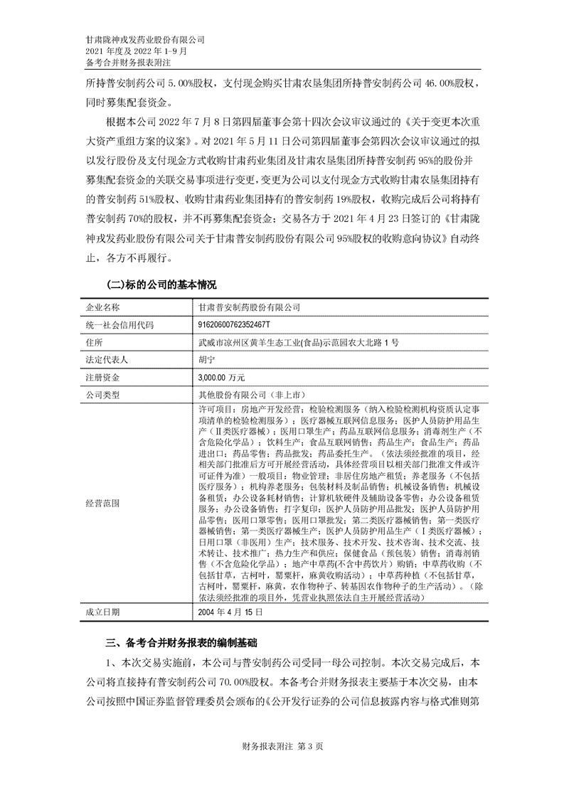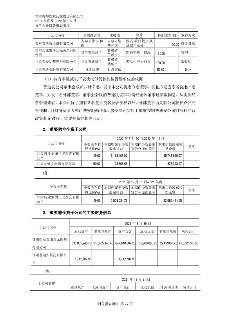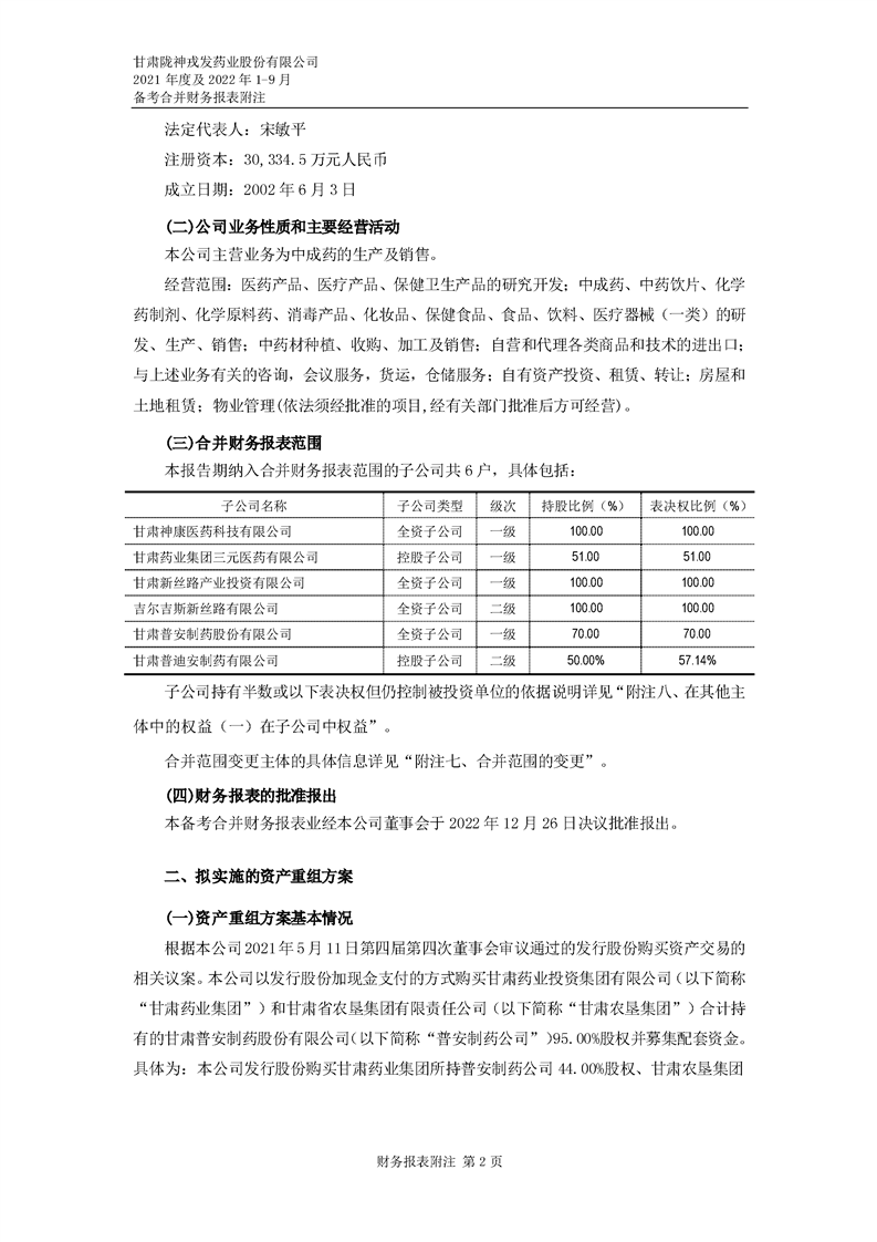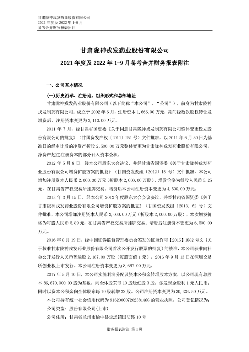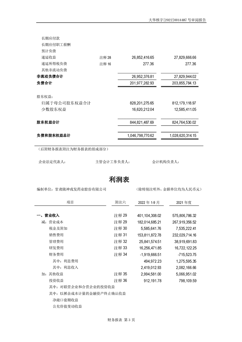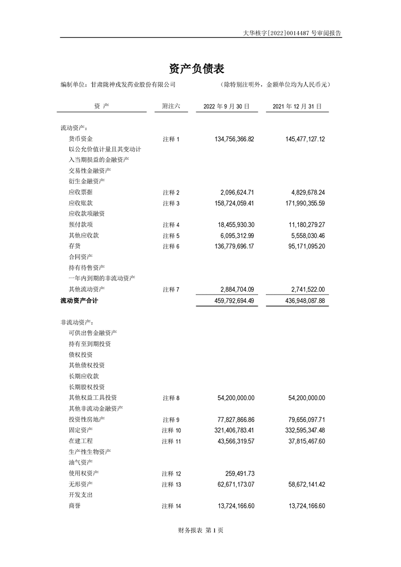 甘肃陇神戎发药业股份有限公司备考财务报表审阅报告-大华核字[2022]0014487号