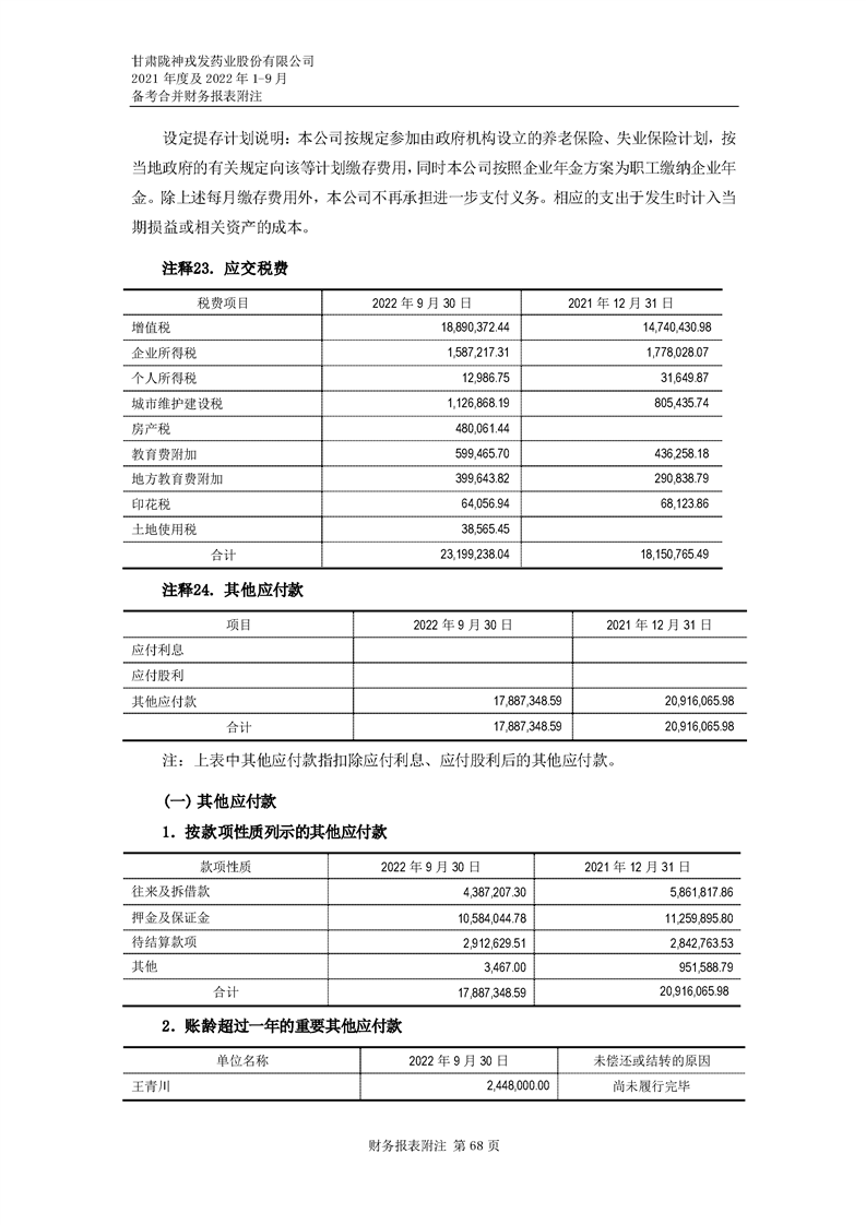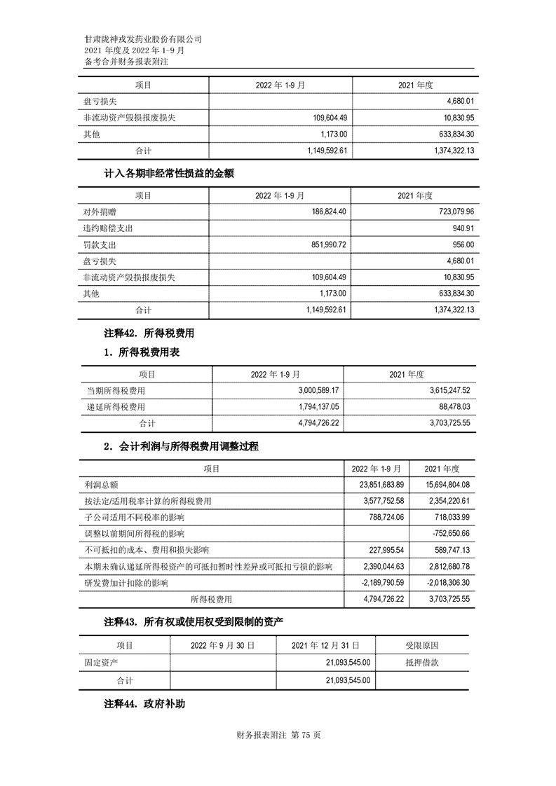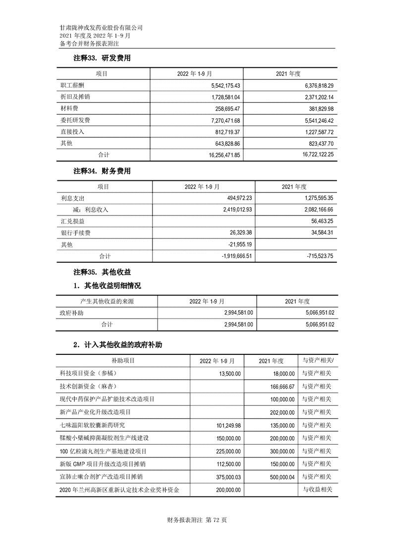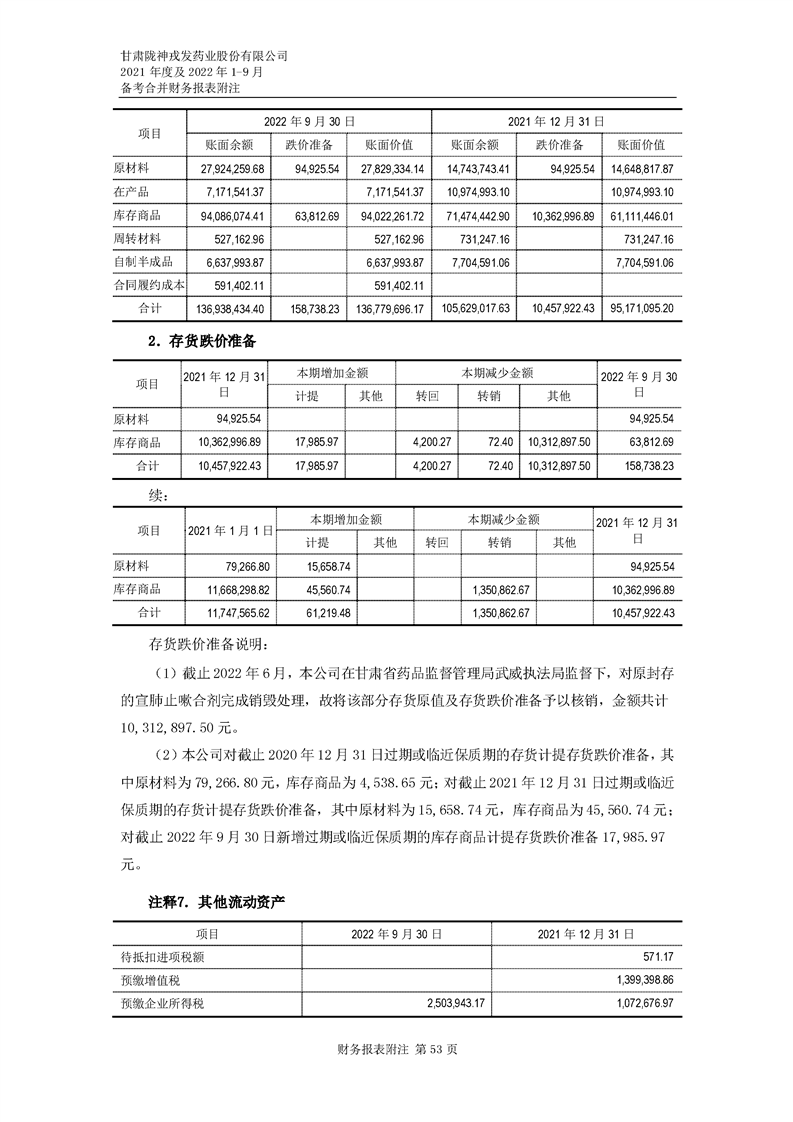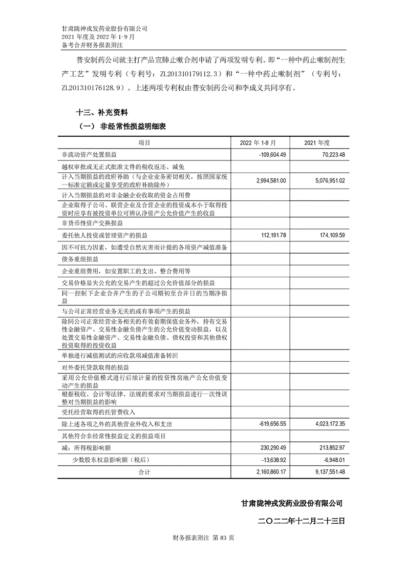 甘肃陇神戎发药业股份有限公司备考财务报表审阅报告-大华核字[2022]0014487号