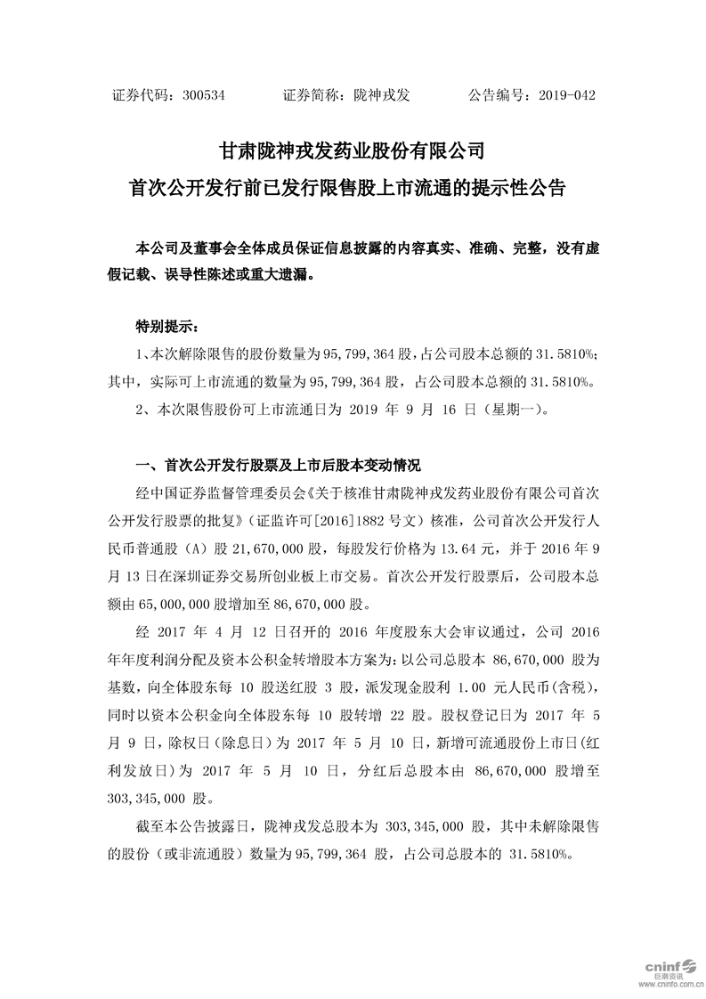 首次公开发行前已发行限售股上市流通的提示性公告