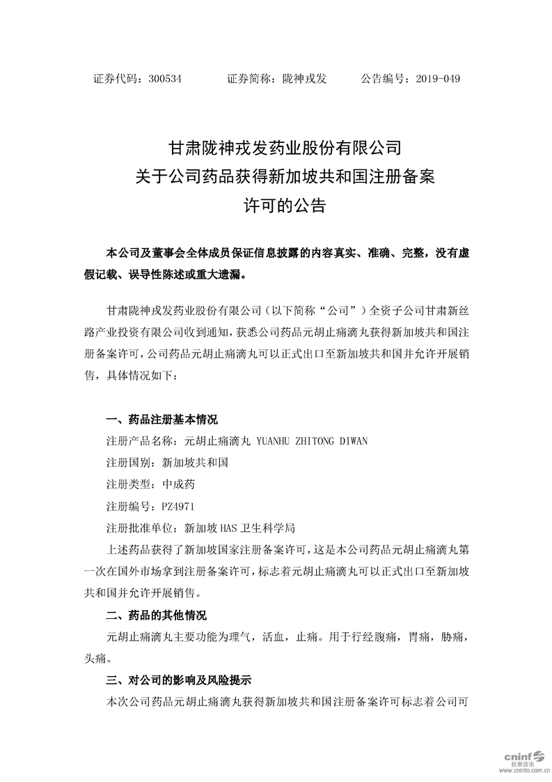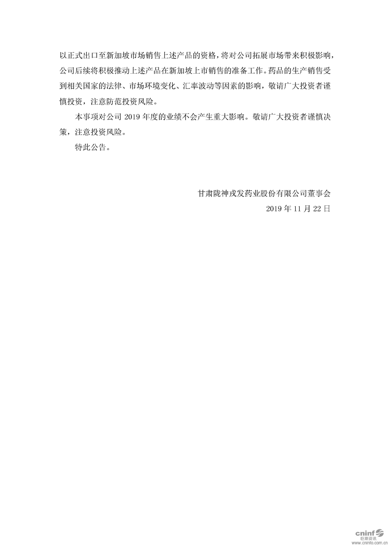 关于公司药品获得新加坡共和国注册备案许可的公告