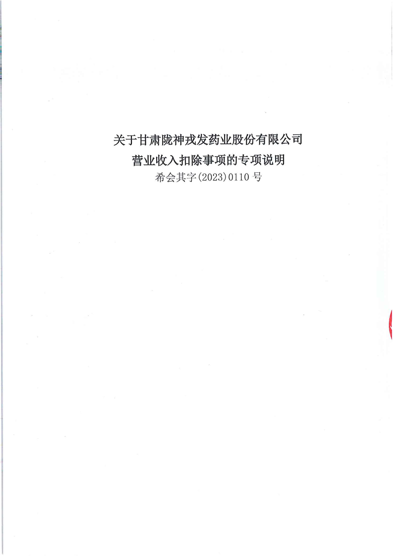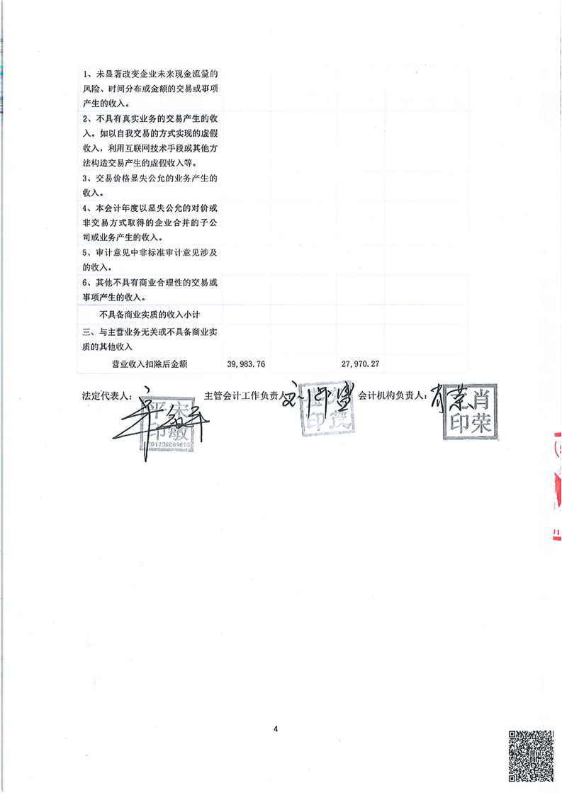 营业收入扣除事项的专项说明(更正后)