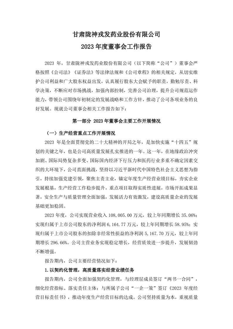 2023年度董事会工作报告