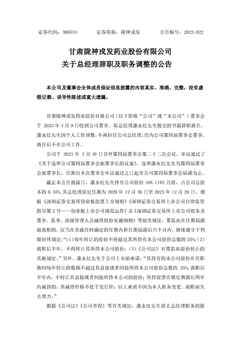 关于总经理辞职及职务调整的公告