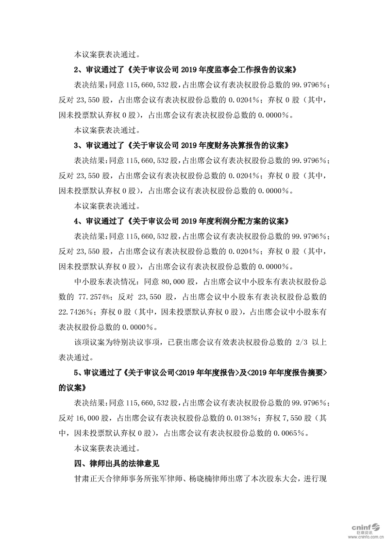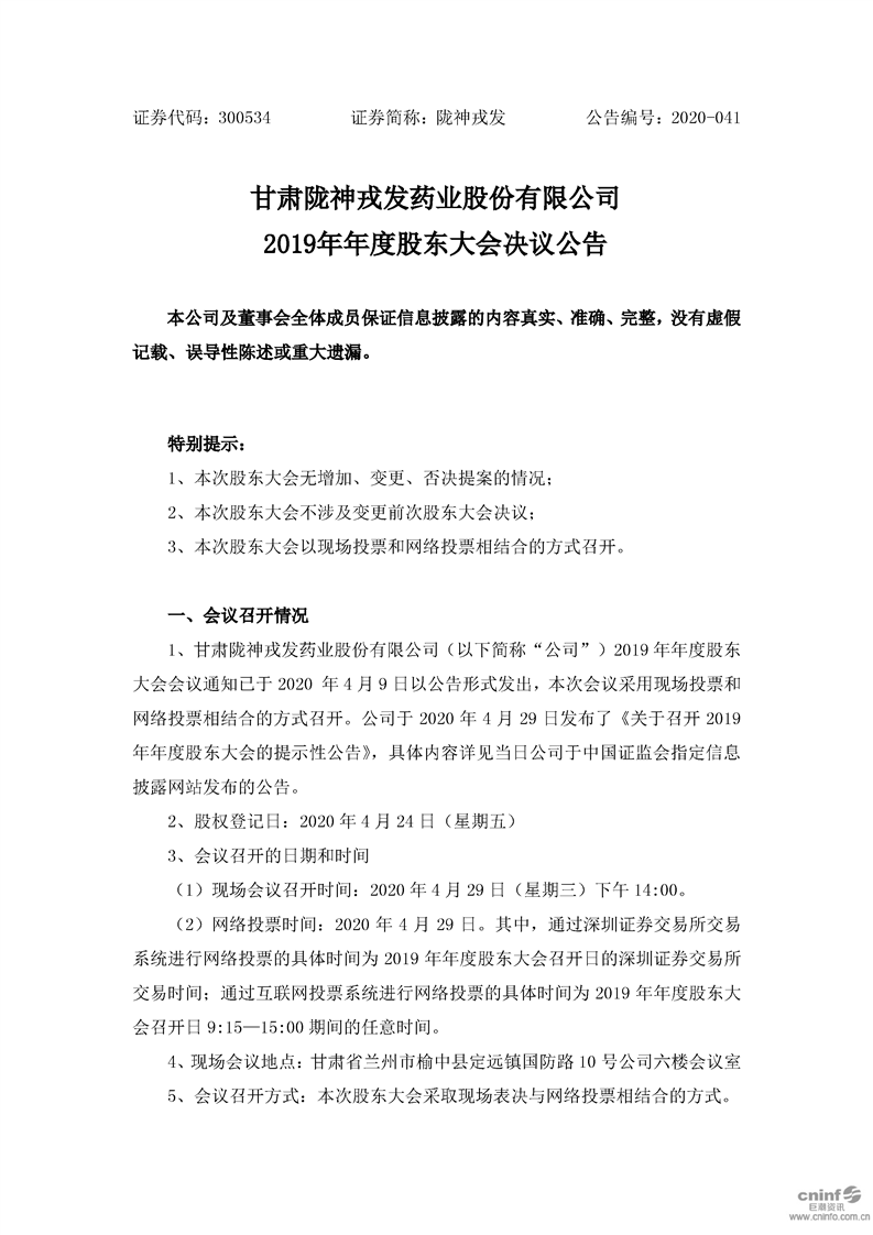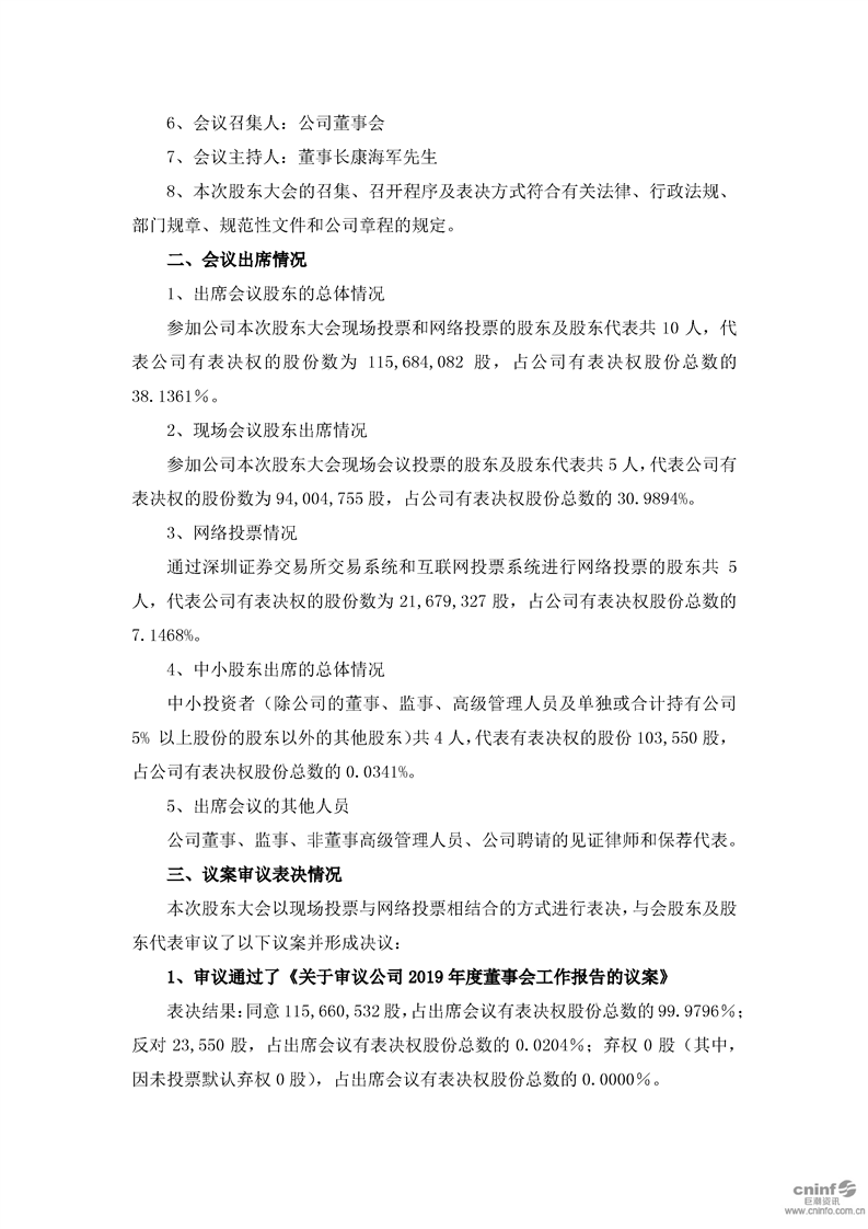 2019年年度股东大会决议公告