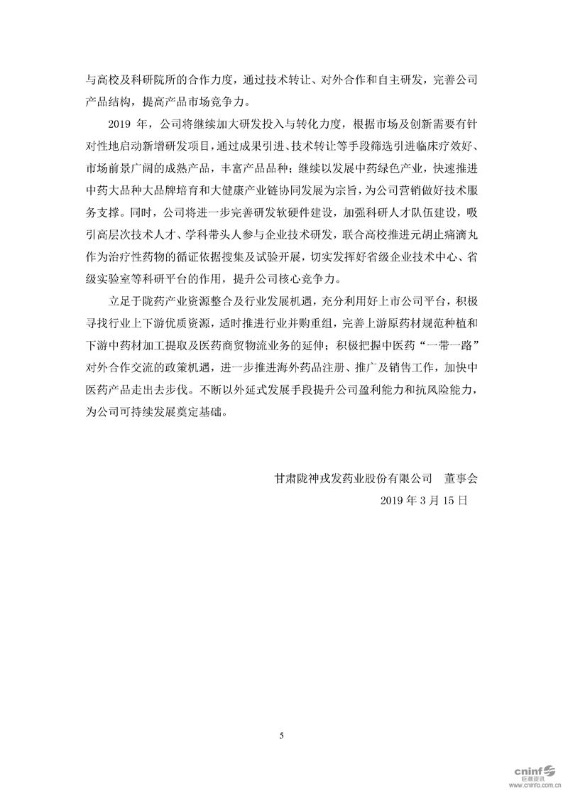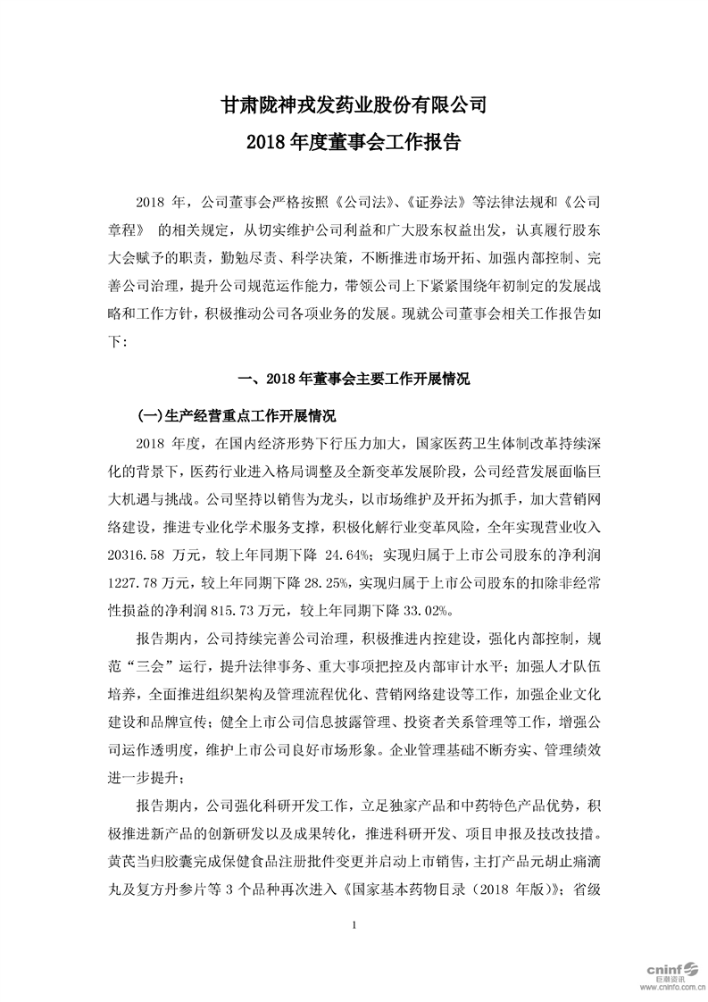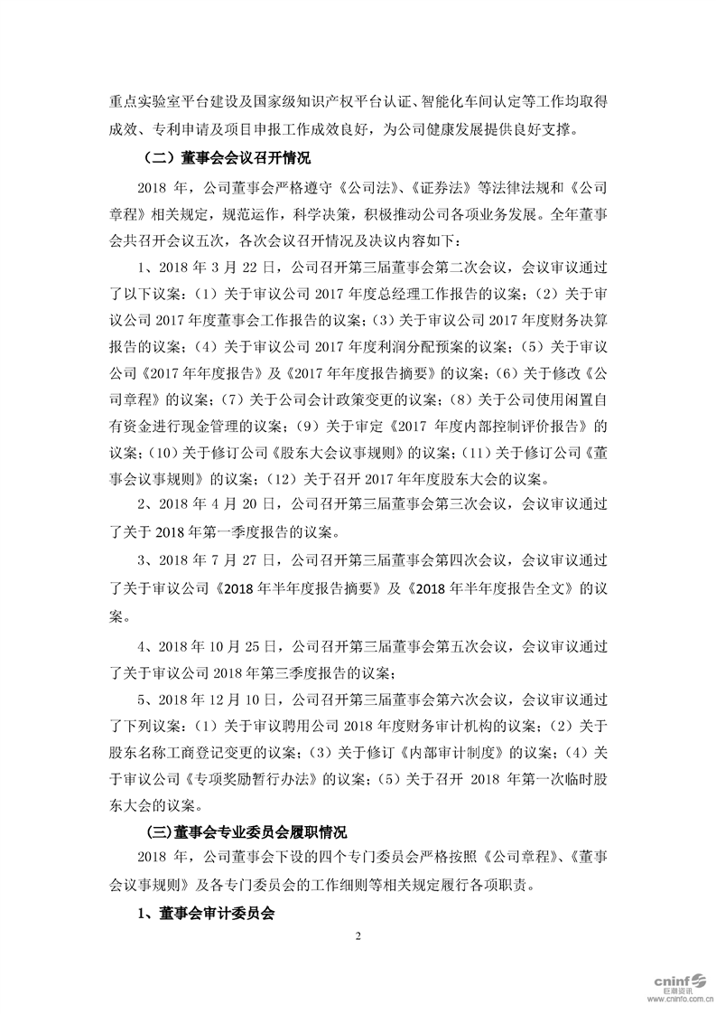 2018 年度董事会工作报告