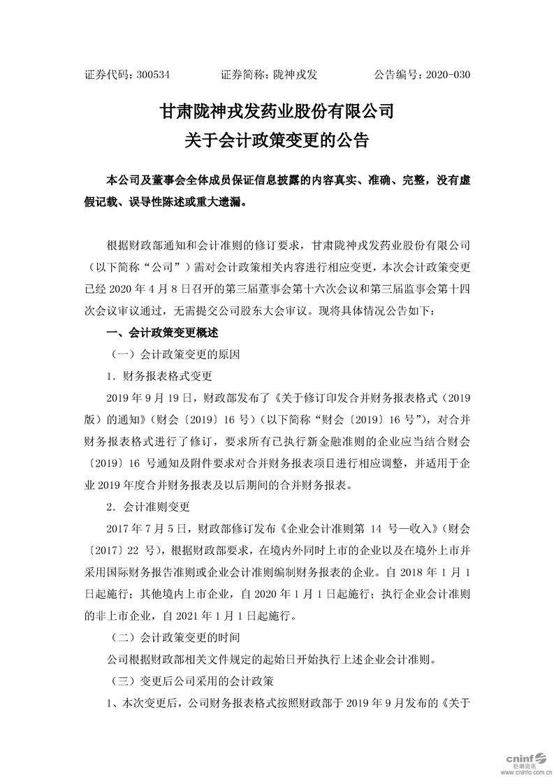 关于会计政策变更的公告