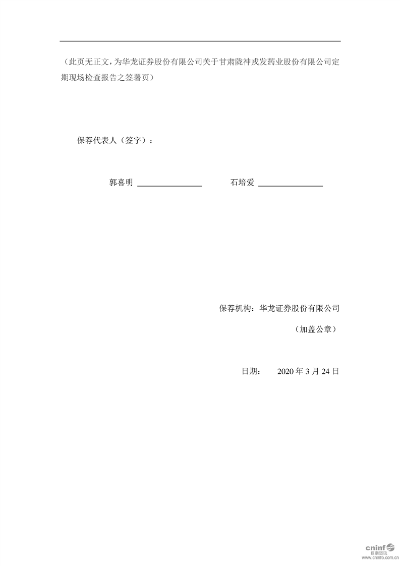 华龙证券股份有限公司关于公司2019年度持续督导定期现场检查报告