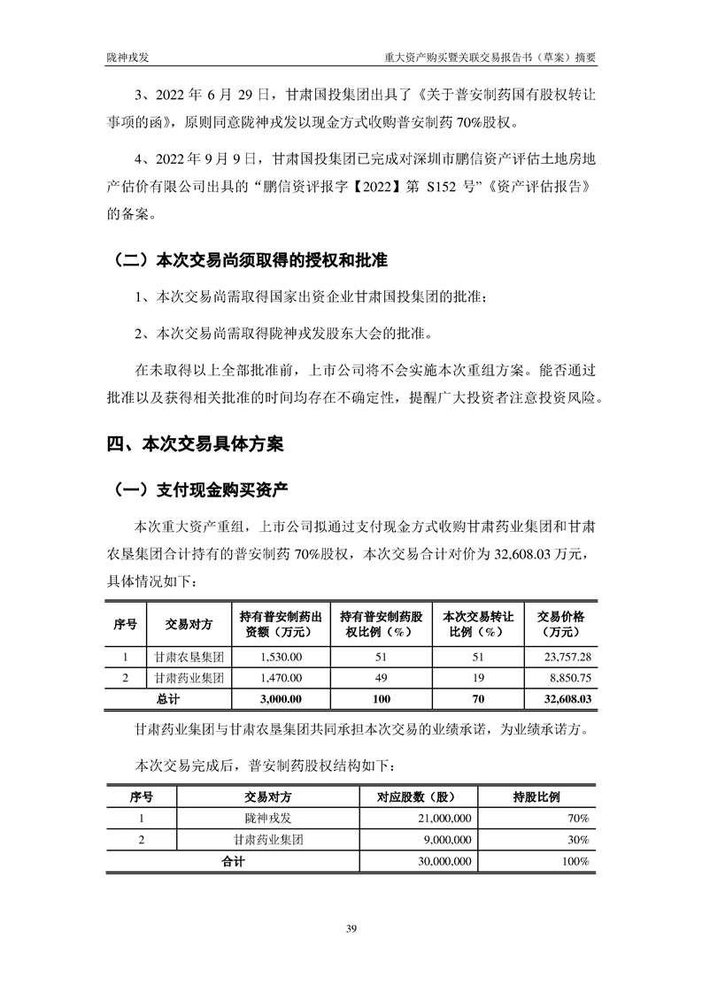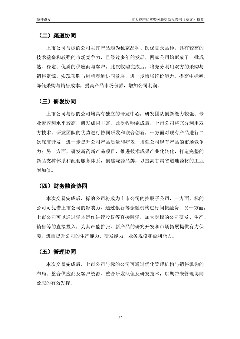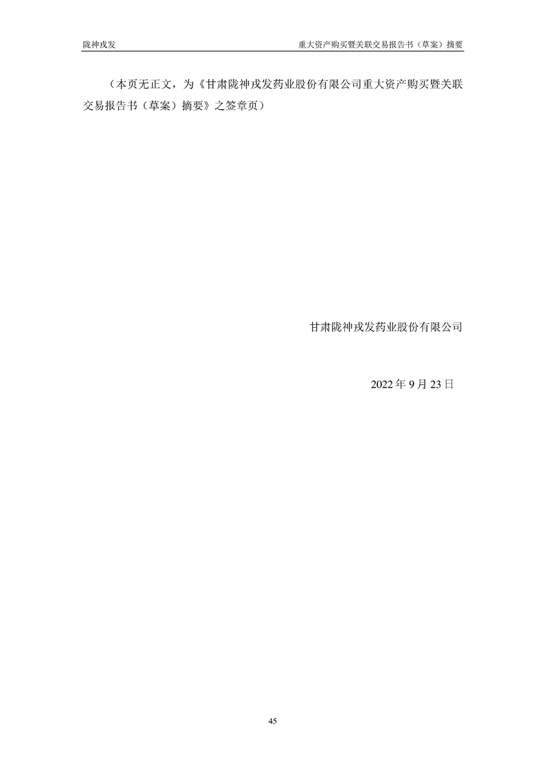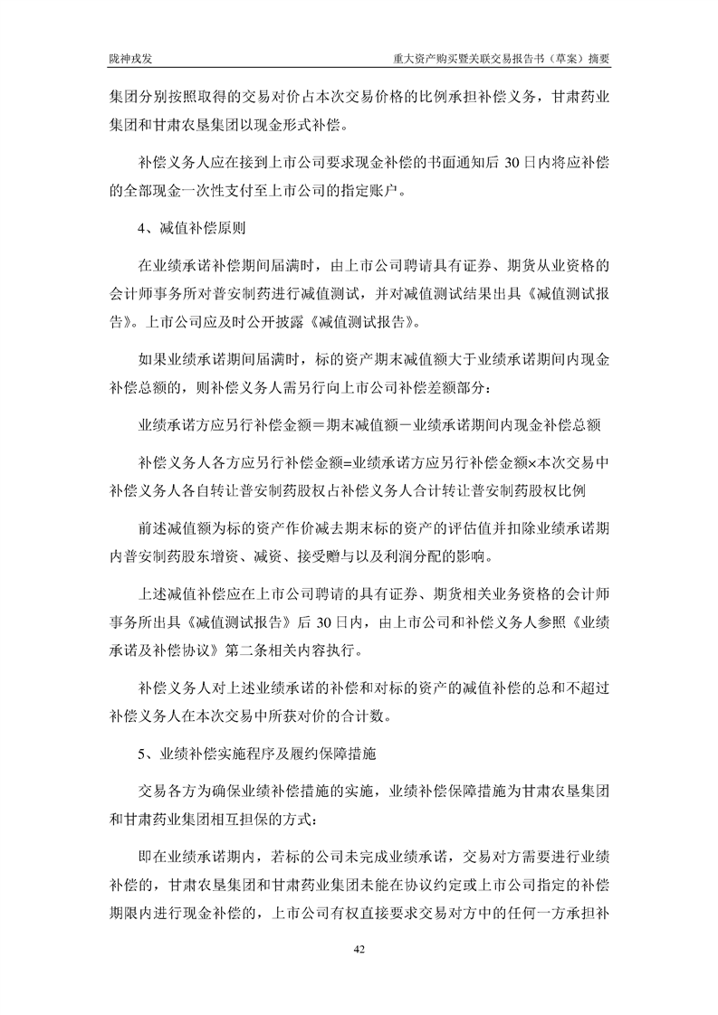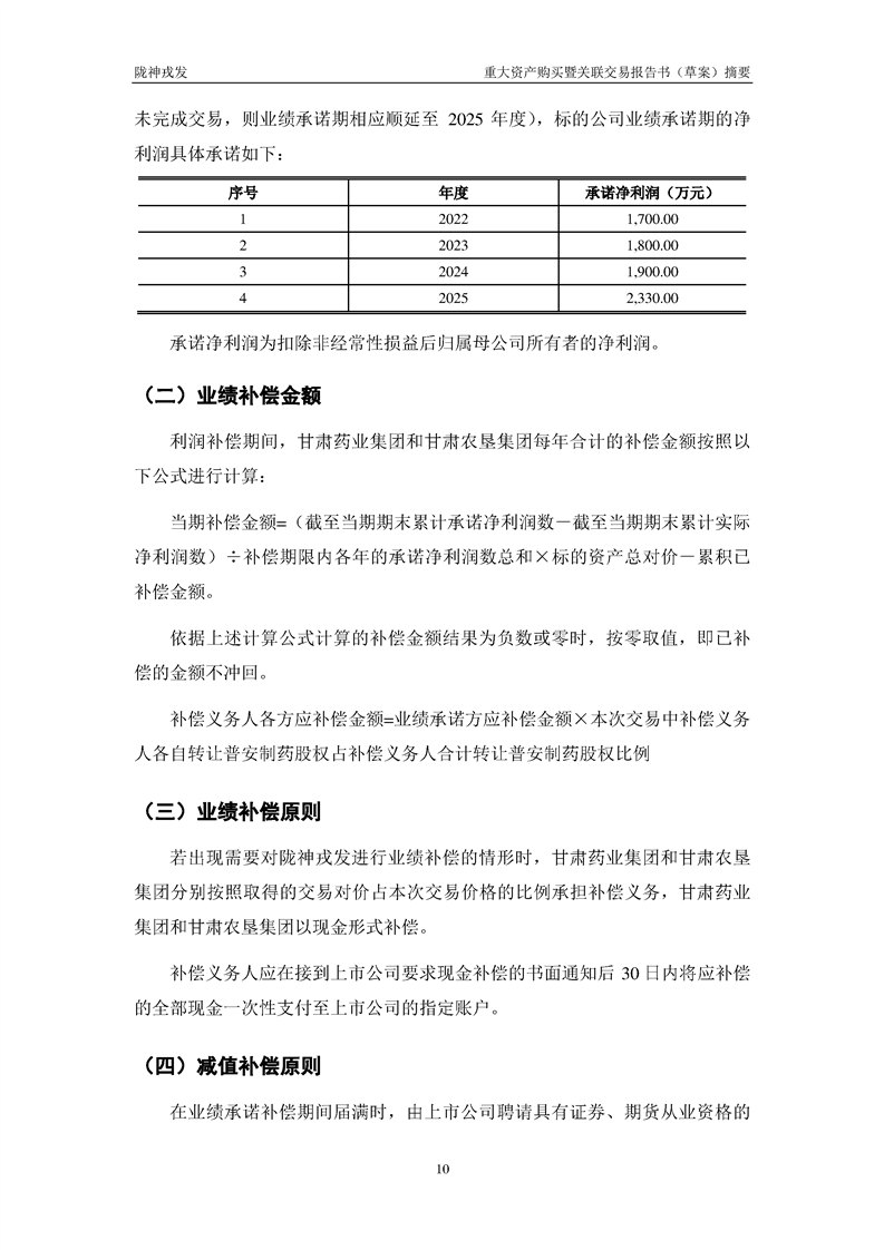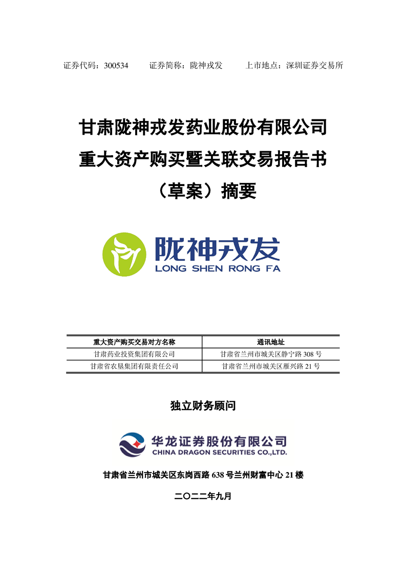 甘肃陇神戎发药业股份有限公司重大资产购买暨关联交易报告书(草案)摘要