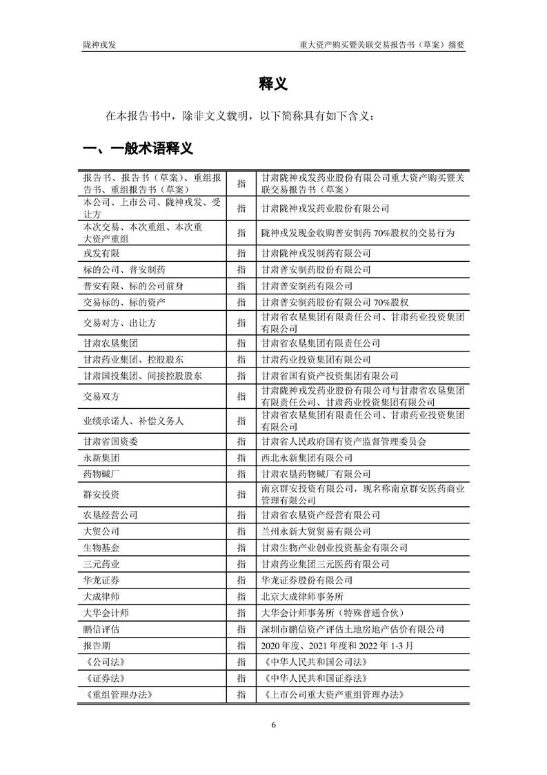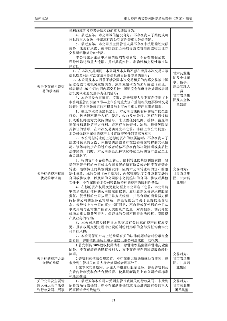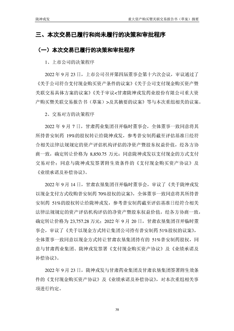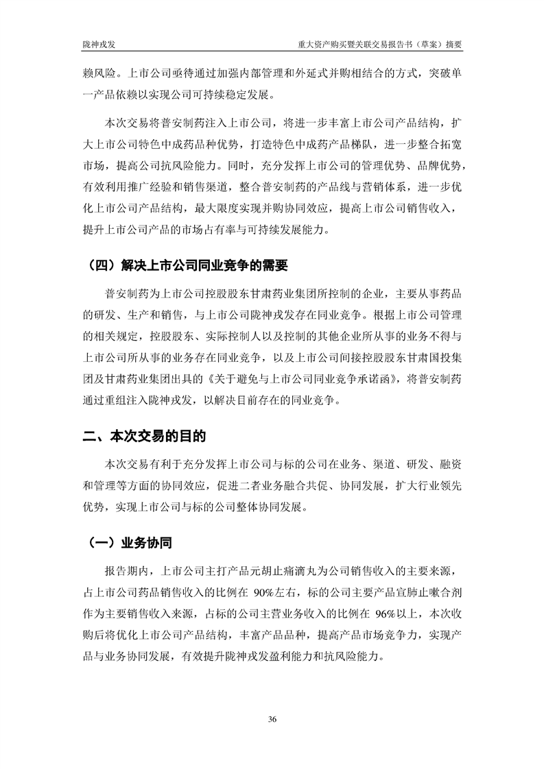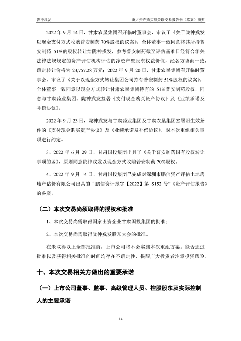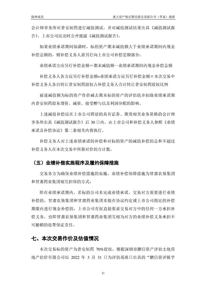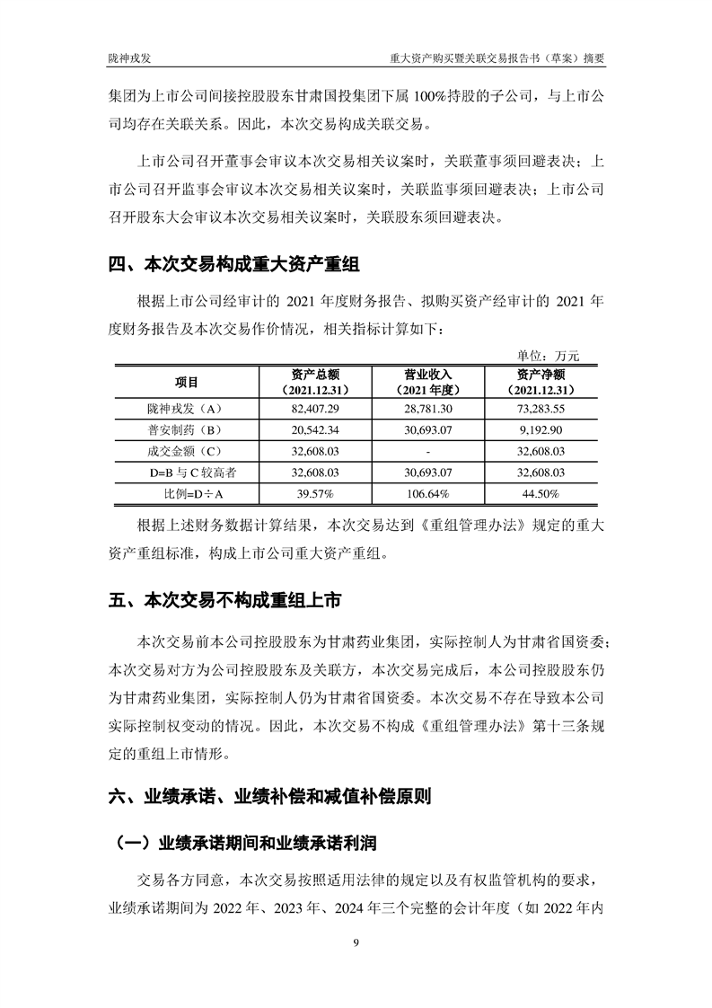 甘肃陇神戎发药业股份有限公司重大资产购买暨关联交易报告书(草案)摘要
