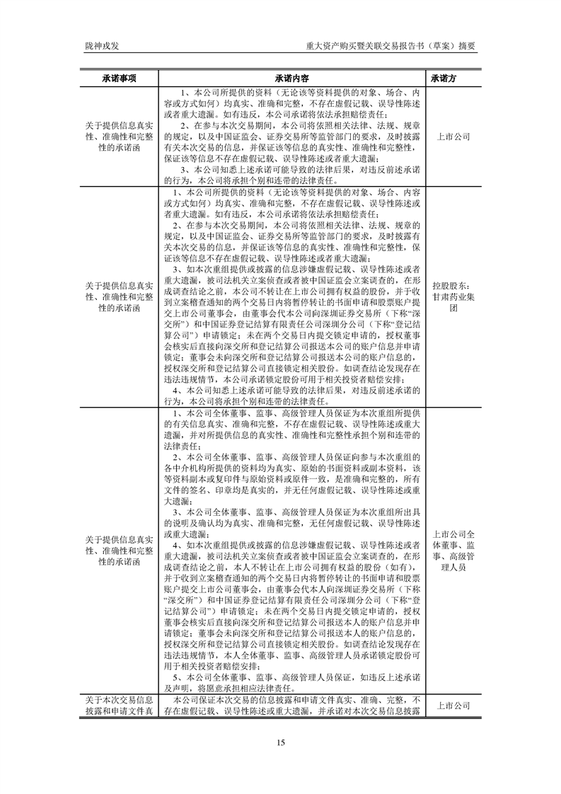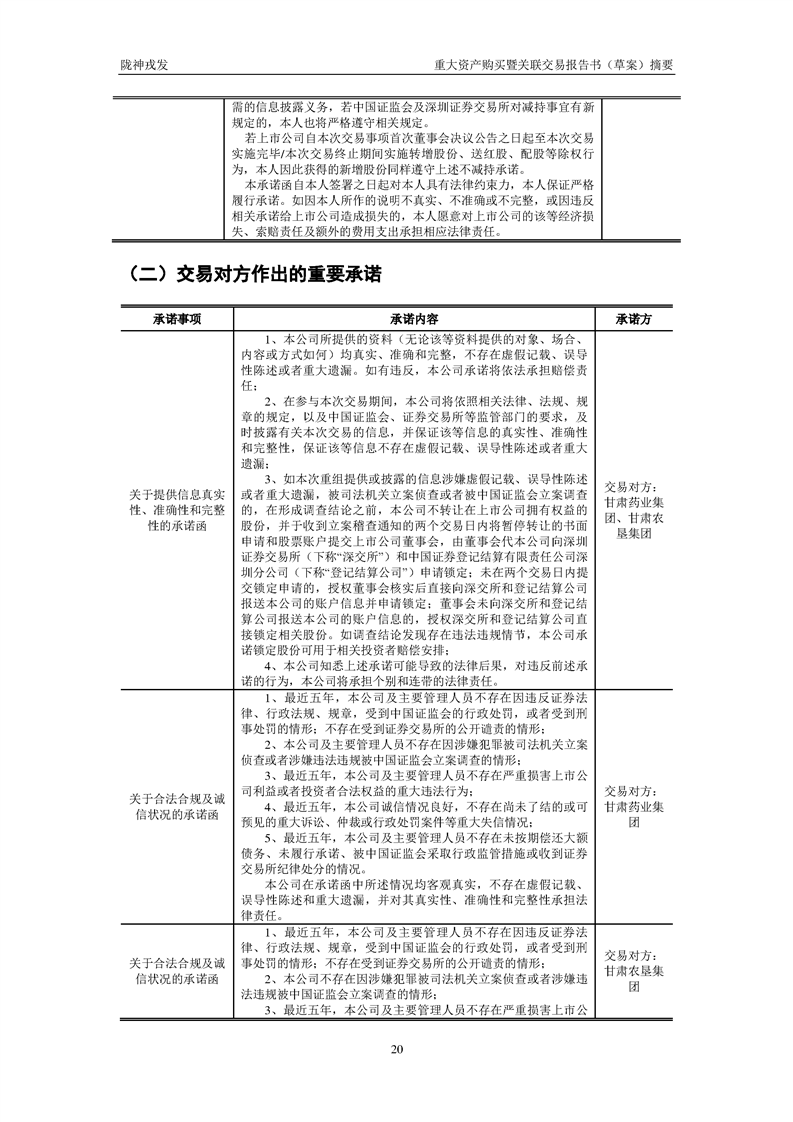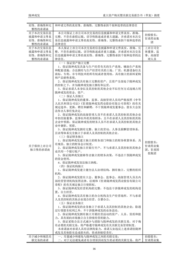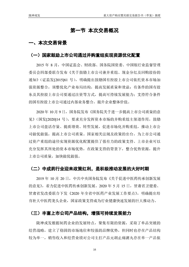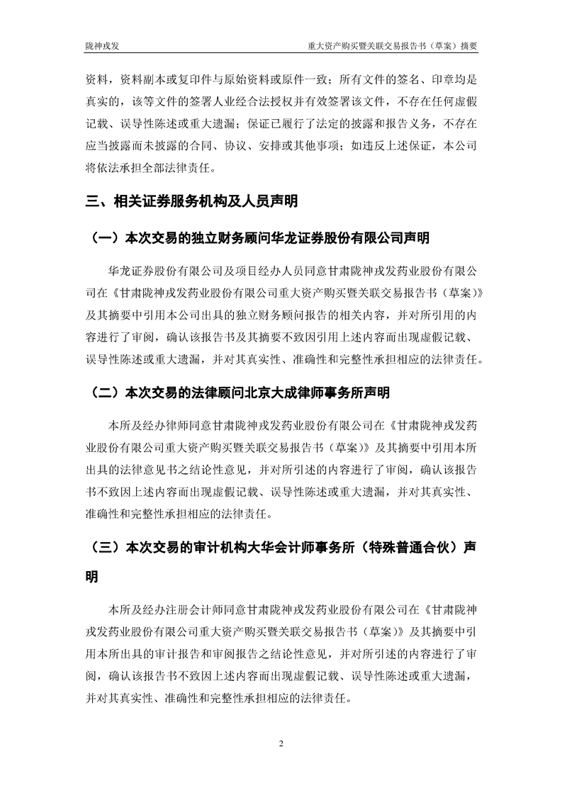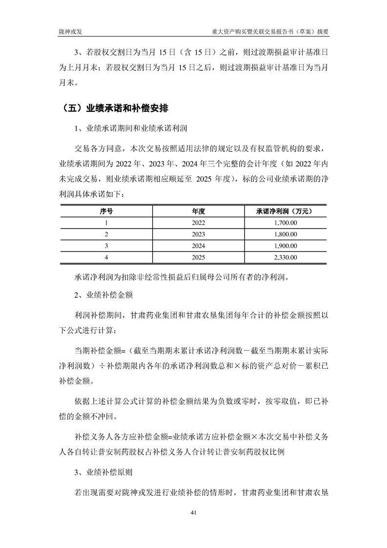甘肃陇神戎发药业股份有限公司重大资产购买暨关联交易报告书(草案)摘要