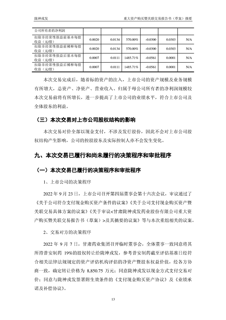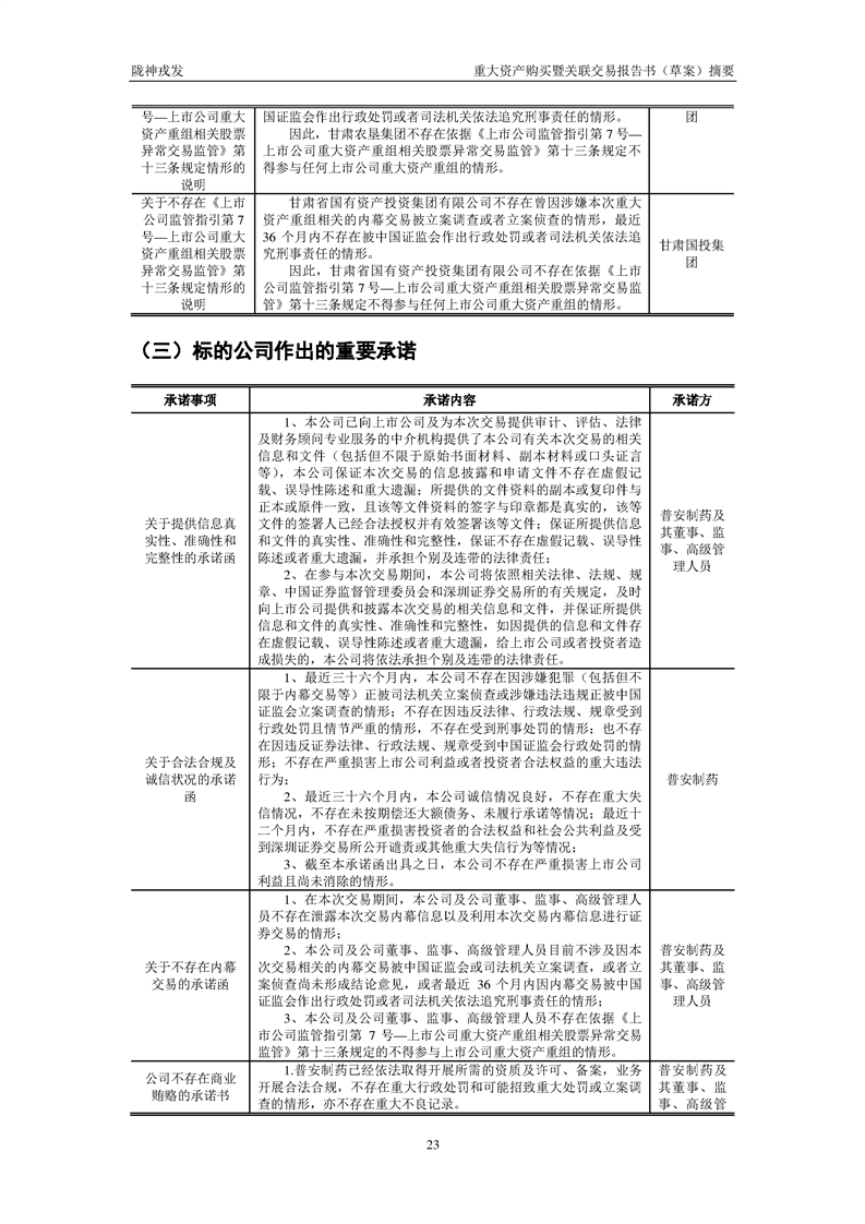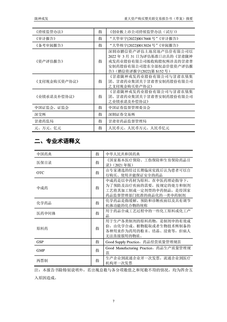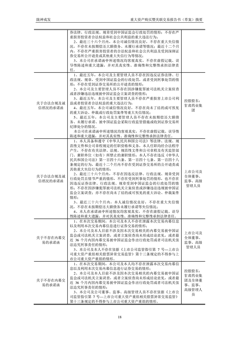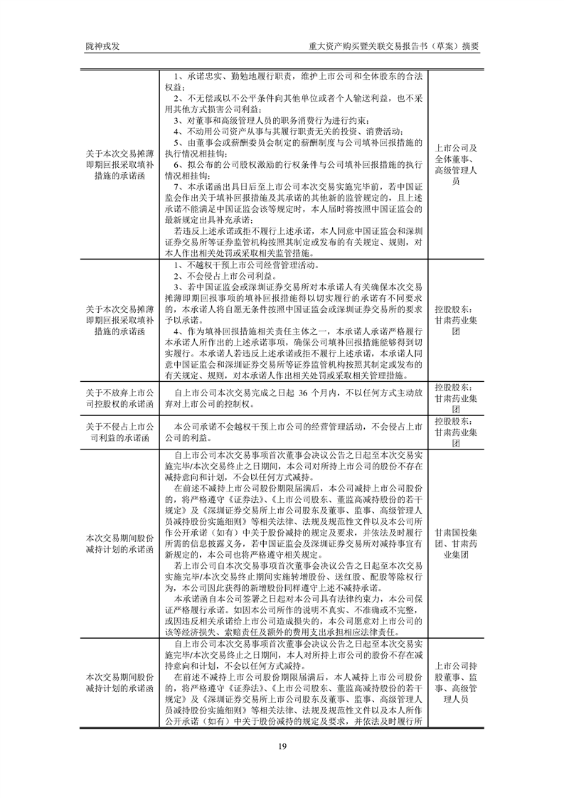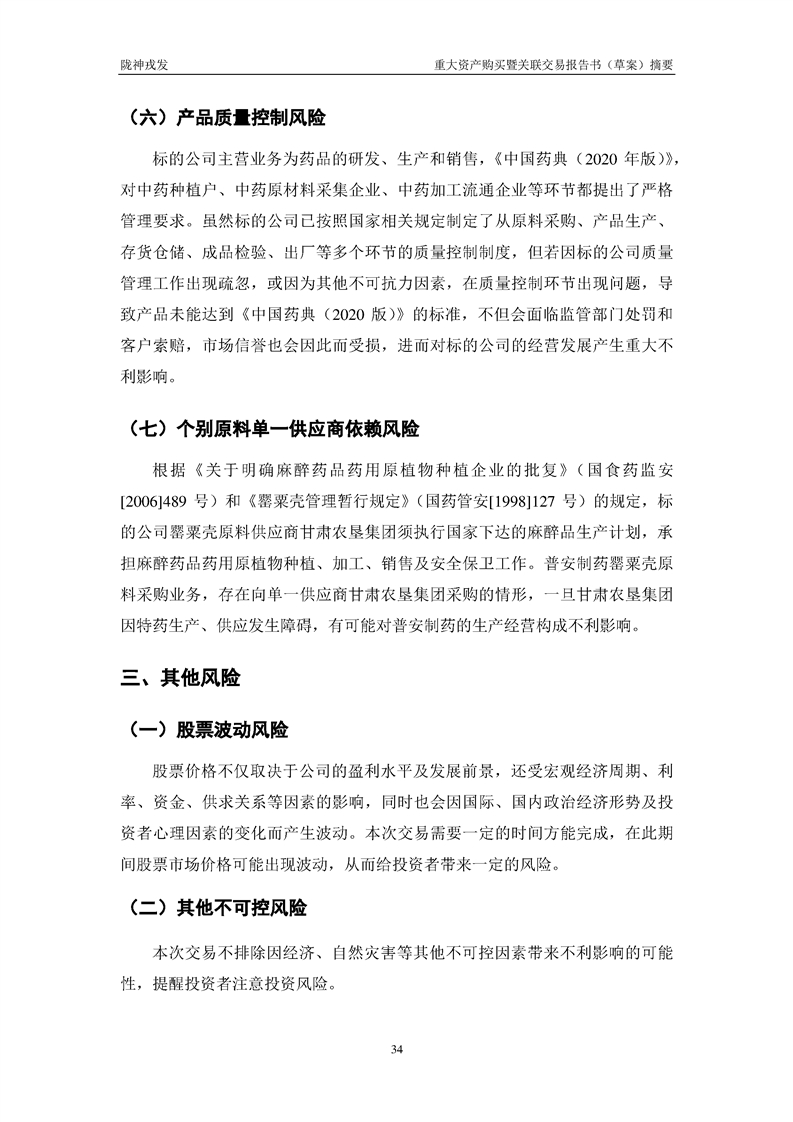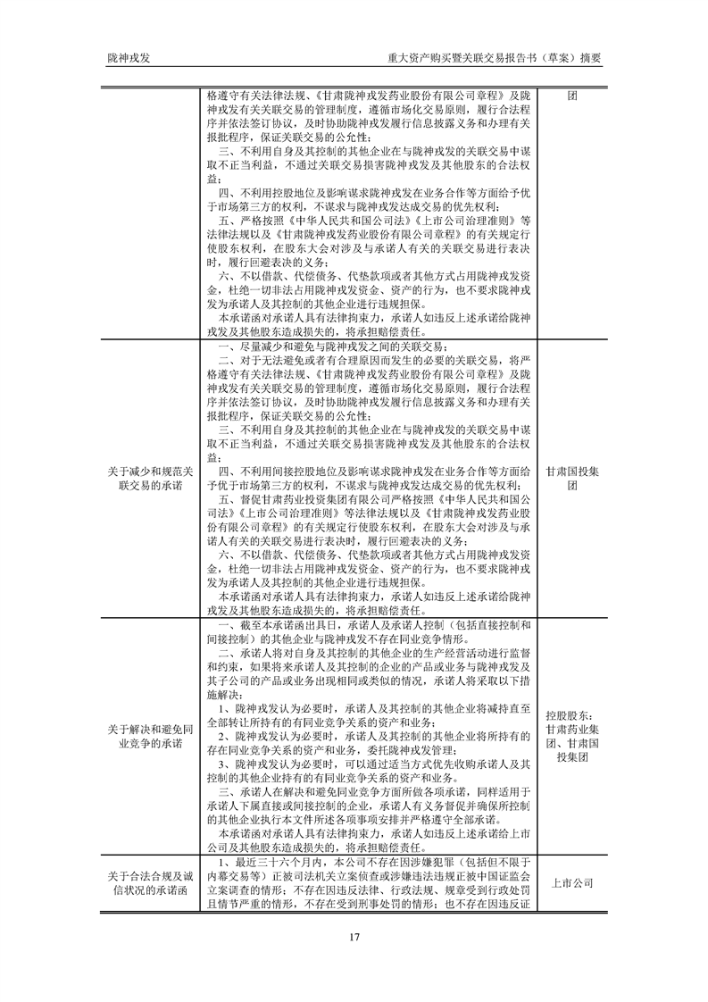 甘肃陇神戎发药业股份有限公司重大资产购买暨关联交易报告书(草案)摘要