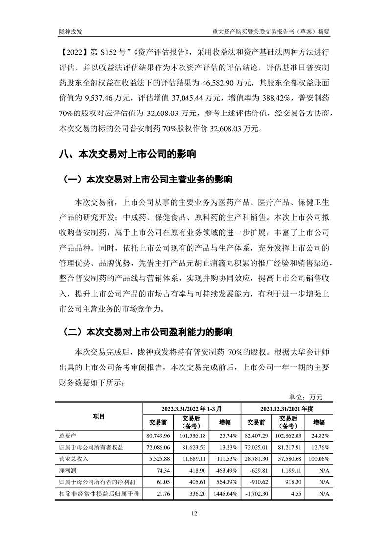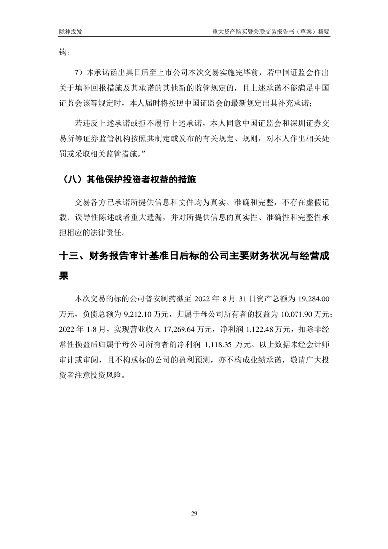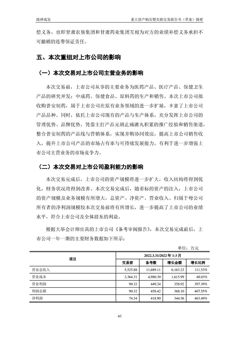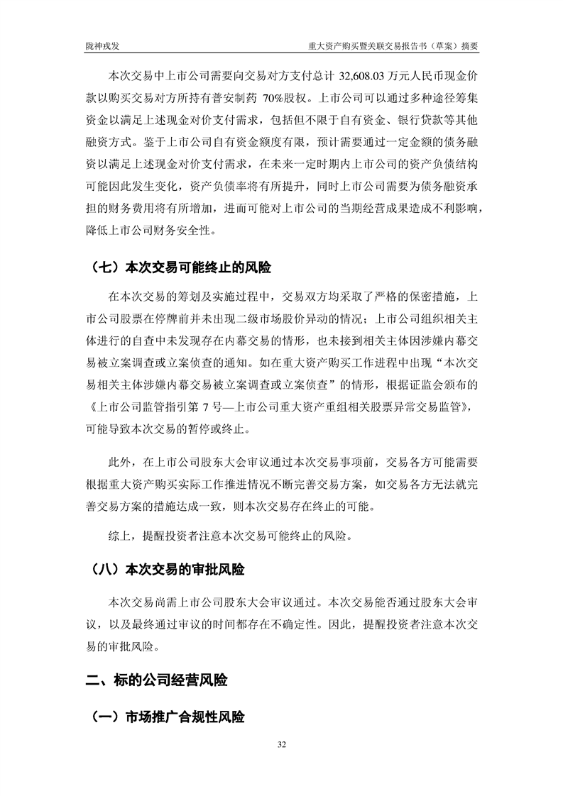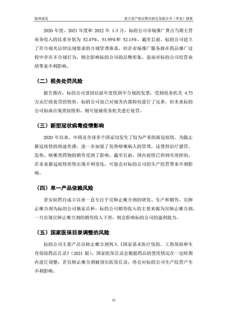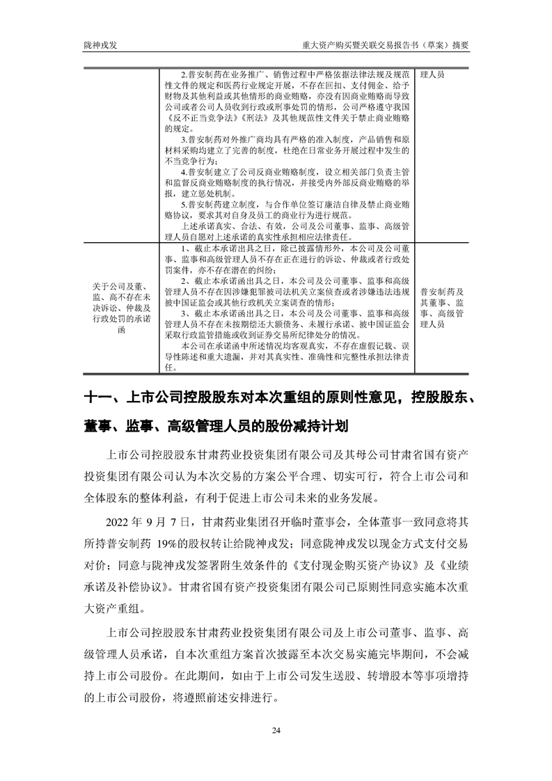 甘肃陇神戎发药业股份有限公司重大资产购买暨关联交易报告书(草案)摘要