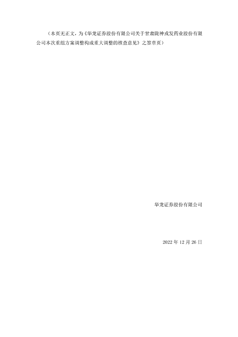 华龙证券股份有限公司关于甘肃陇神戎发药业股份有限公司本次重组方案调整构成重大调整的核查意见