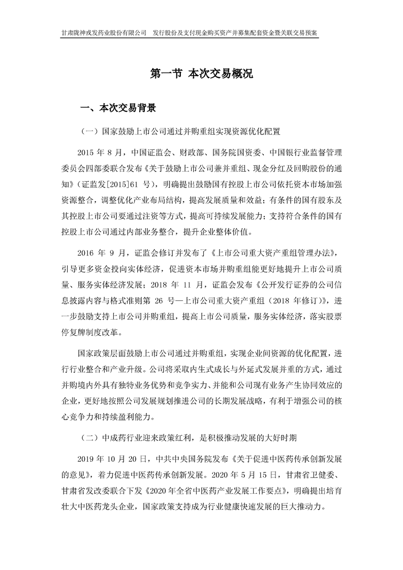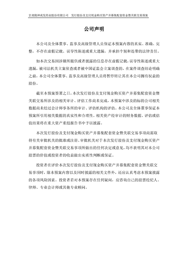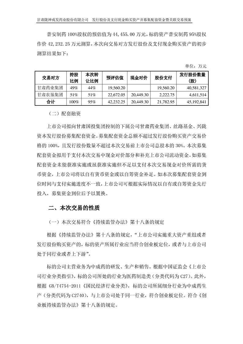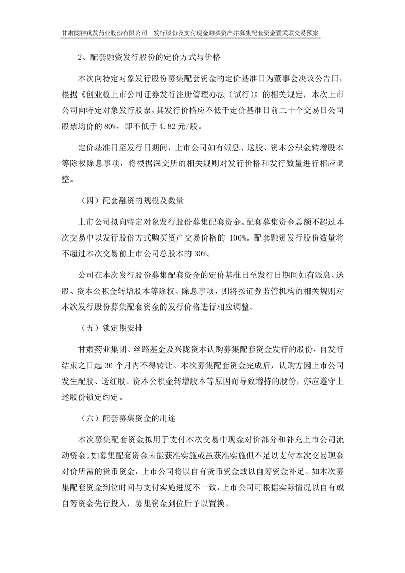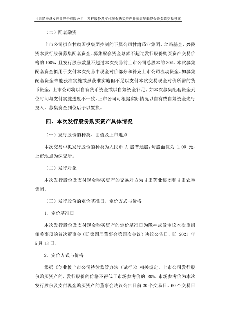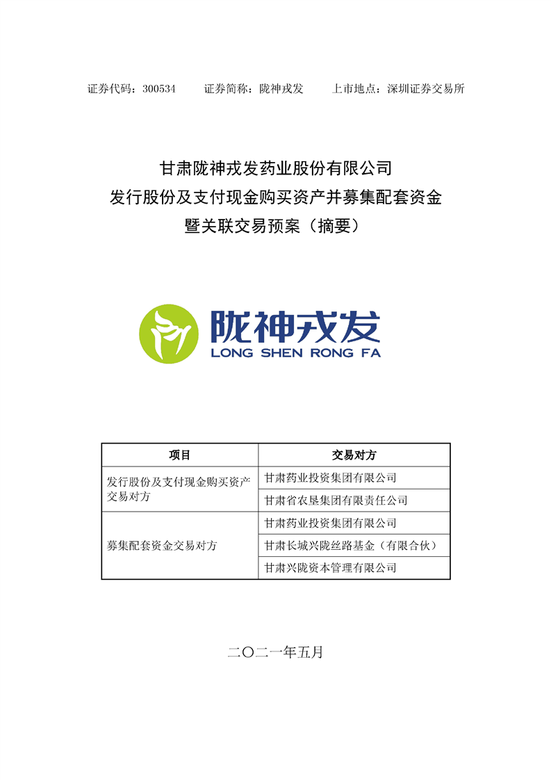 甘肃陇神戎发药业股份有限公司发行股份及支付现金购买资产并募集配套资金暨关联交易预案 (摘要)