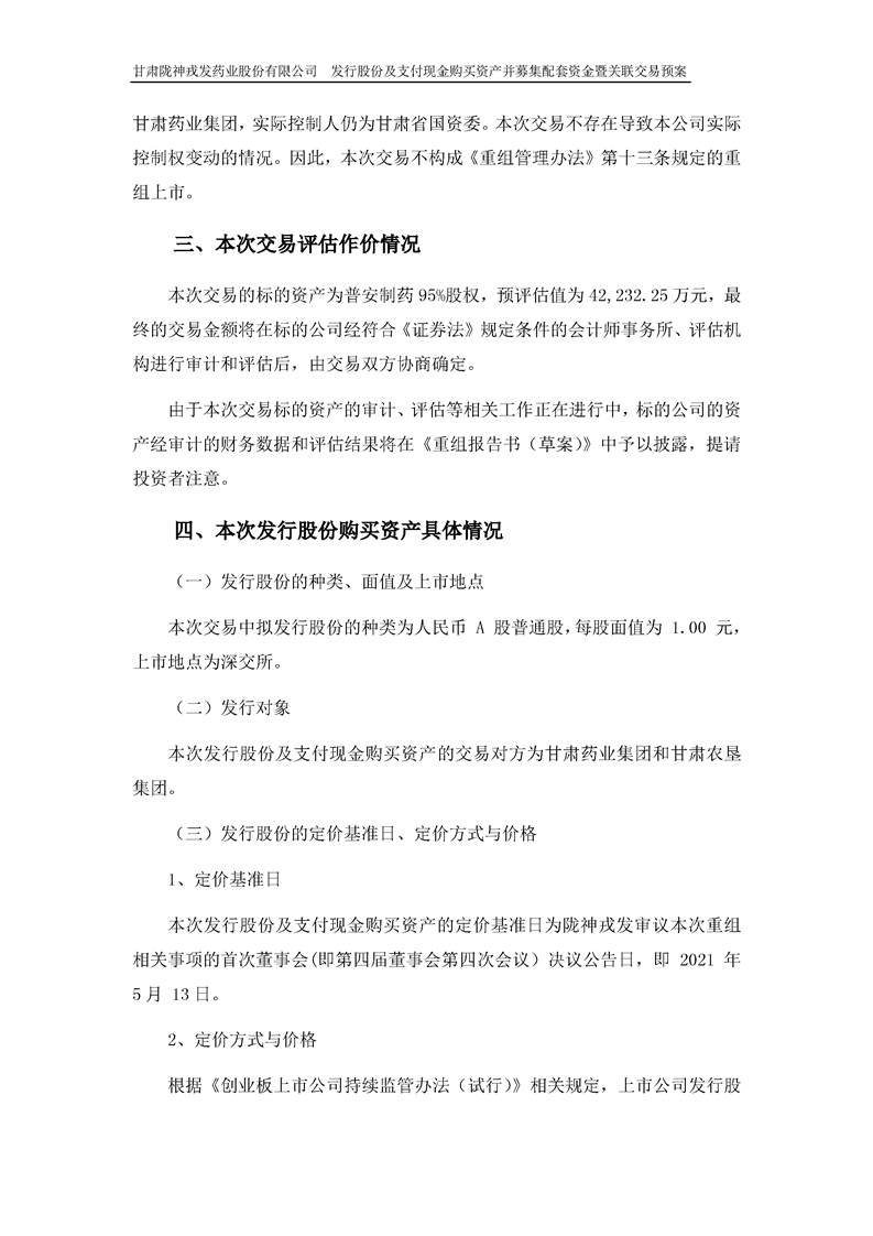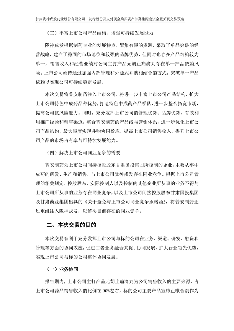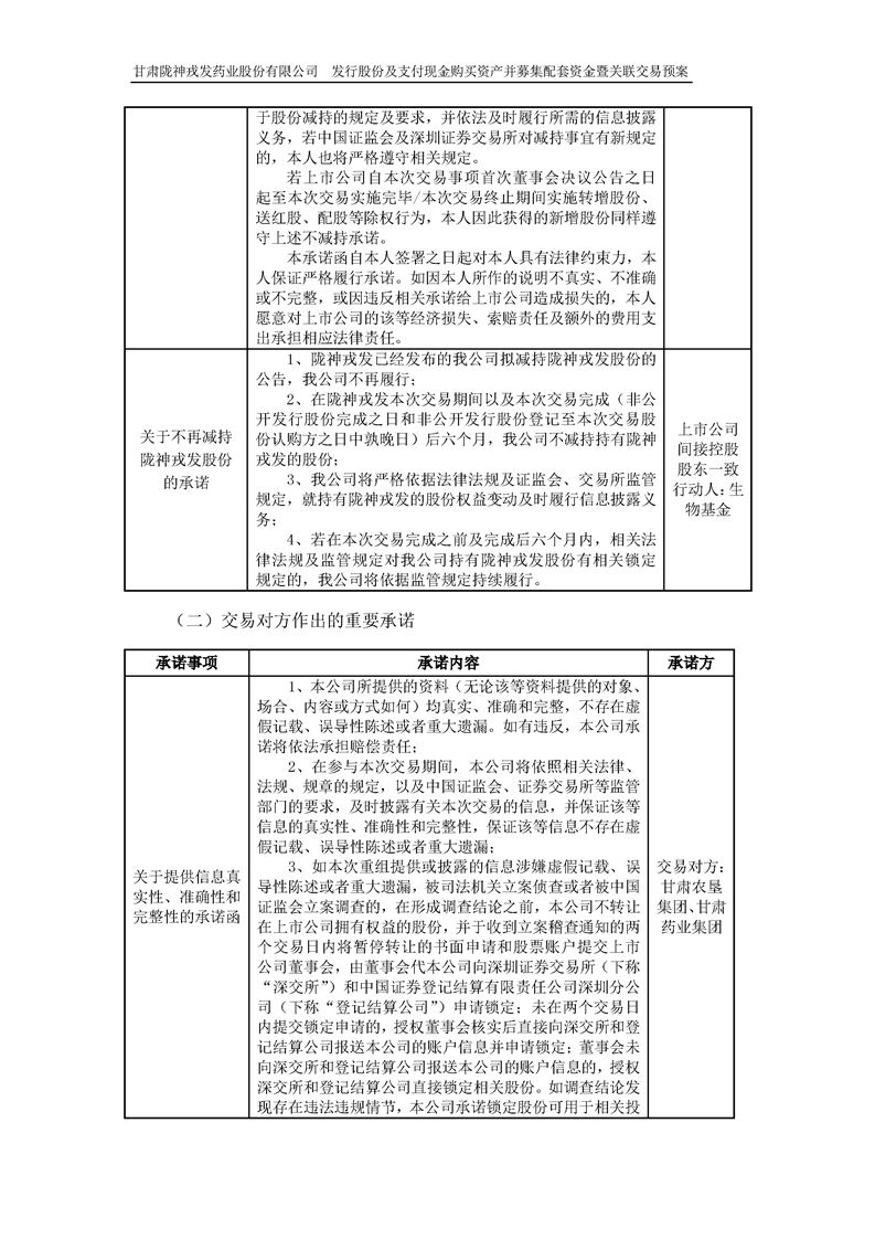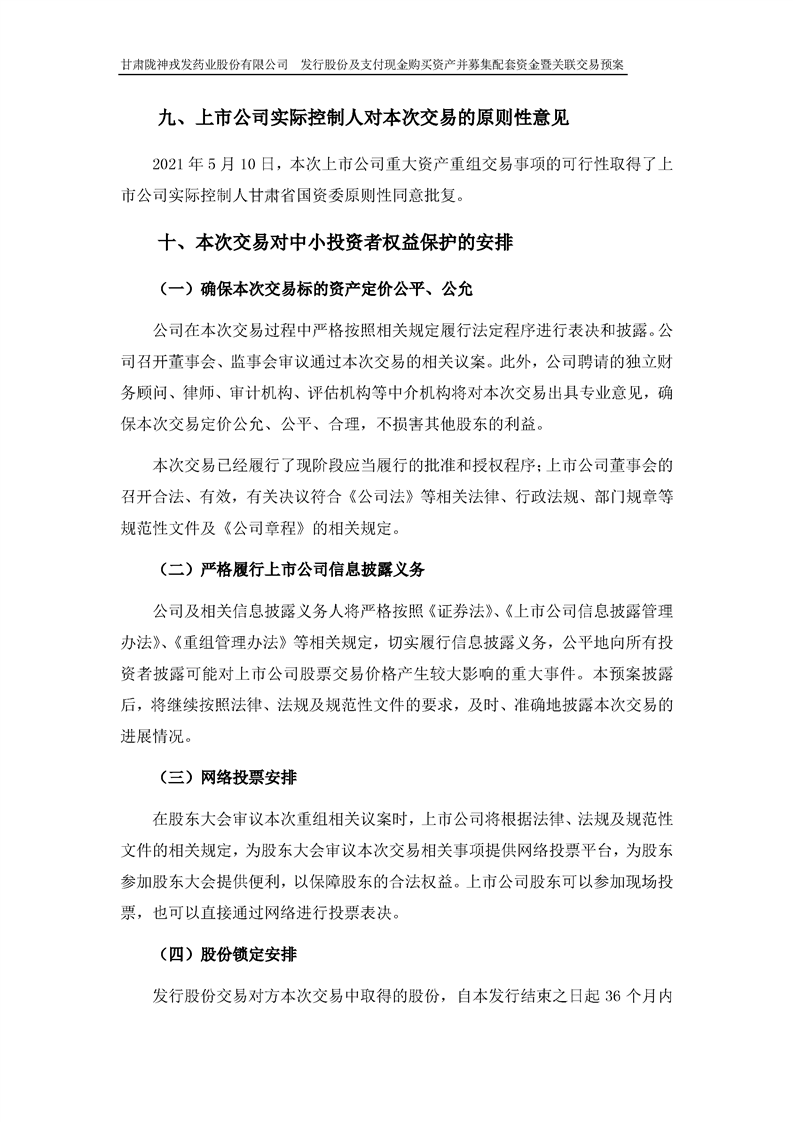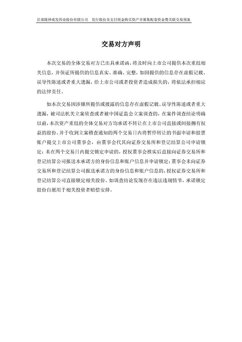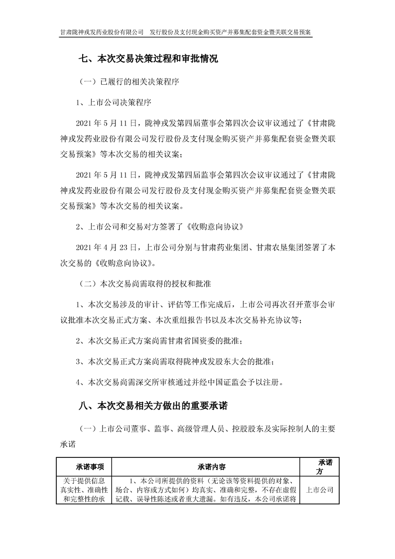 甘肃陇神戎发药业股份有限公司发行股份及支付现金购买资产并募集配套资金暨关联交易预案 (摘要)