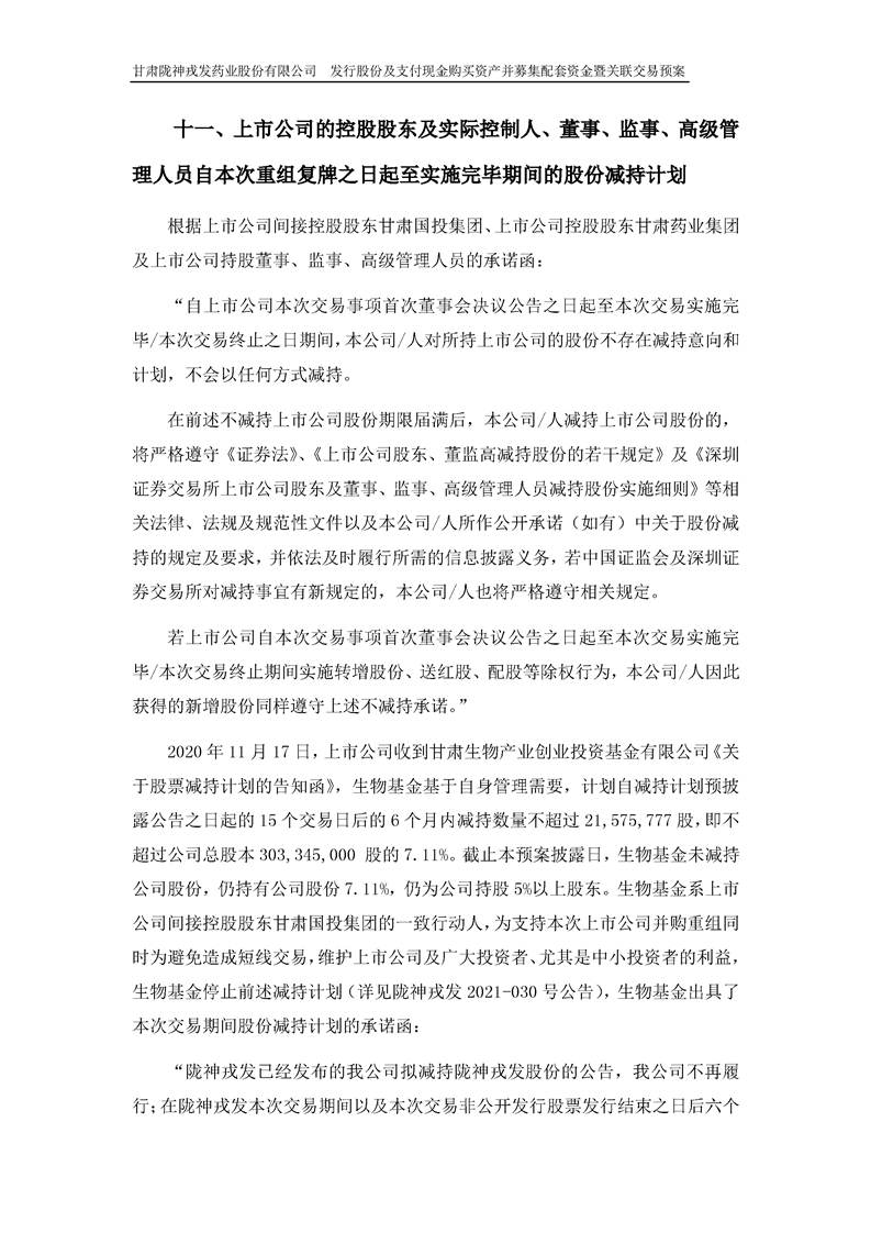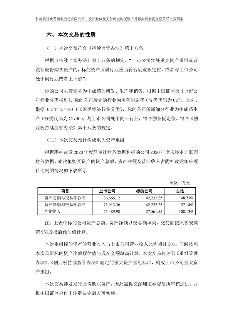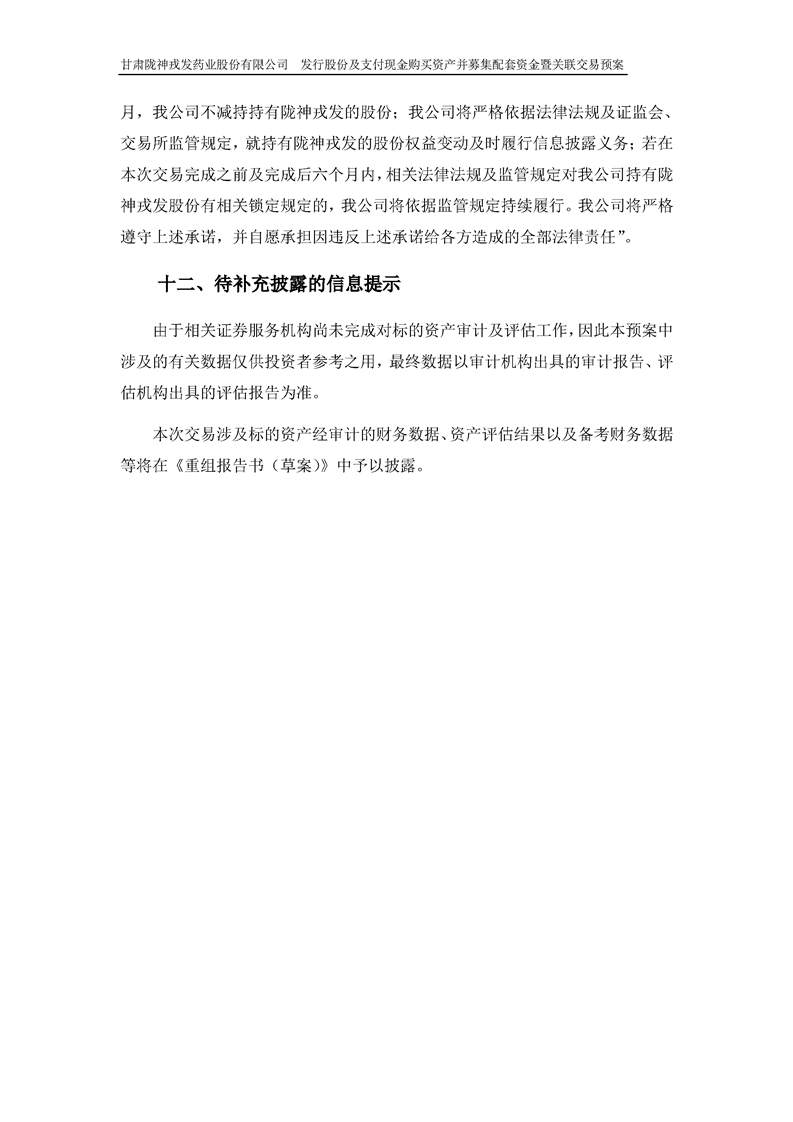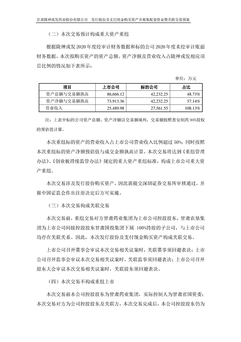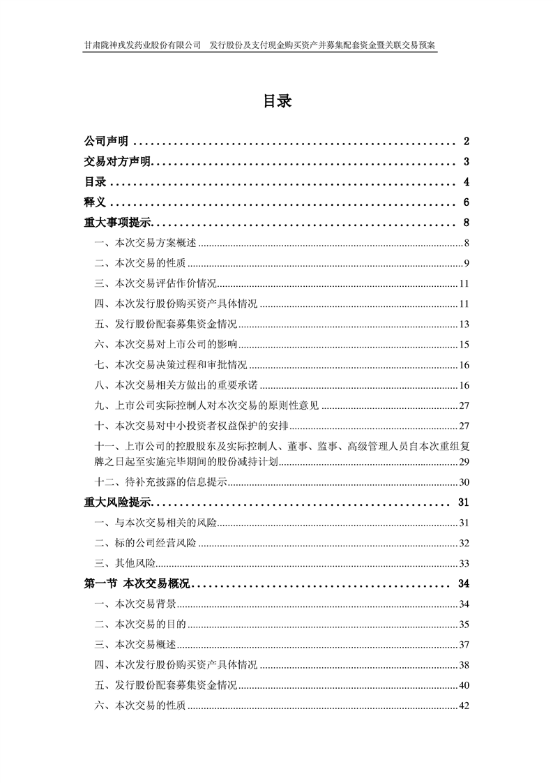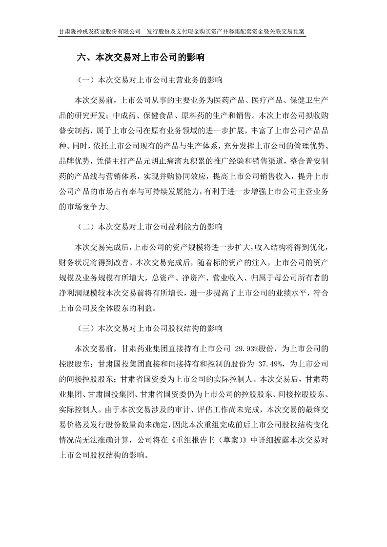 甘肃陇神戎发药业股份有限公司发行股份及支付现金购买资产并募集配套资金暨关联交易预案 (摘要)