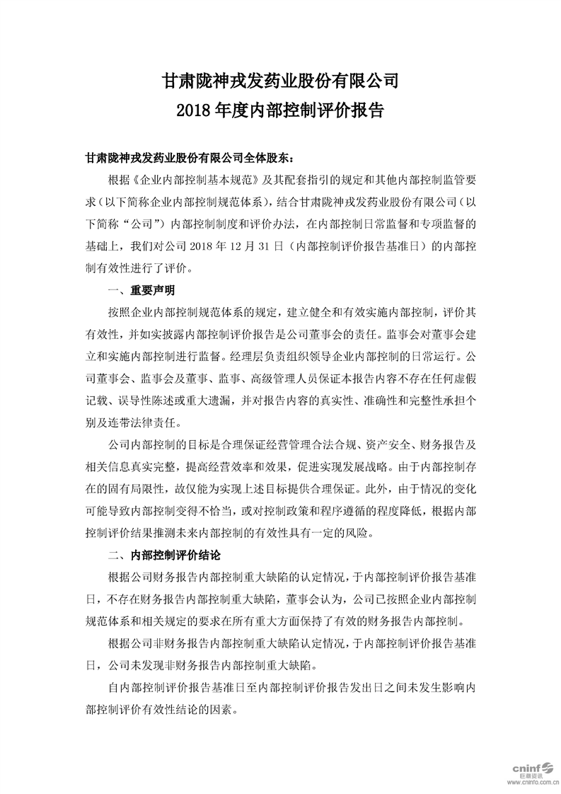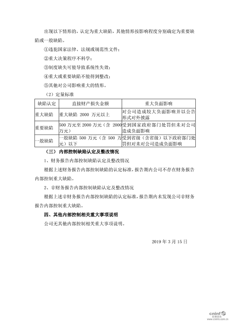 2018 年度内部控制评价报告