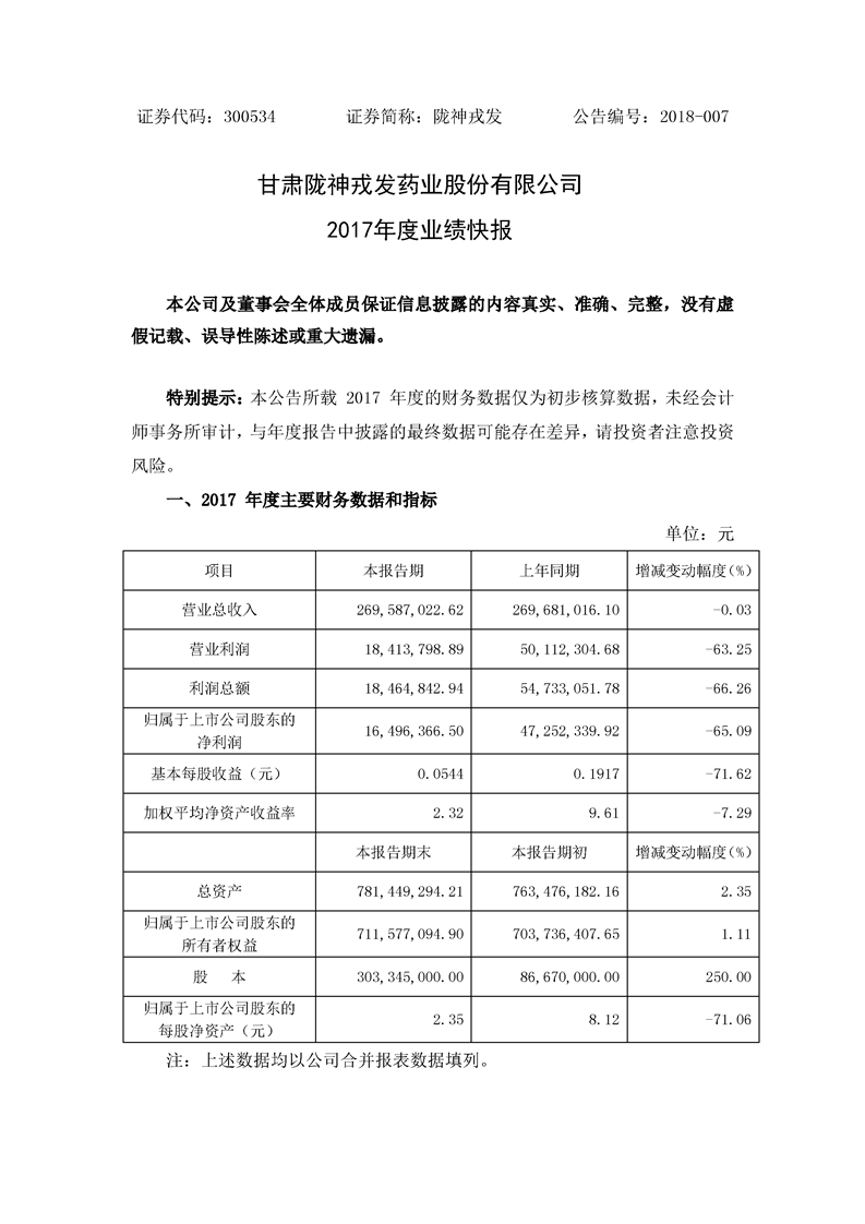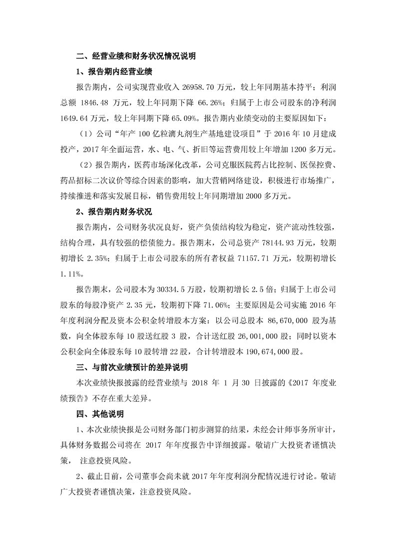 2017年度业绩快报