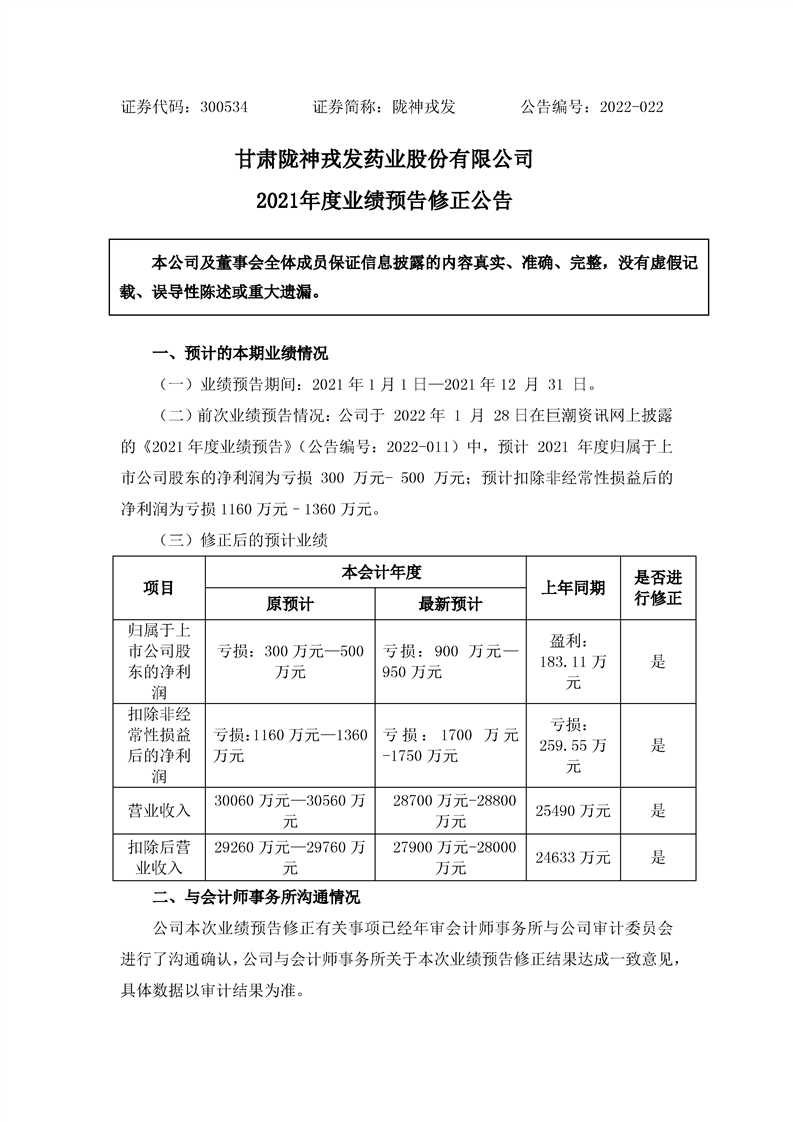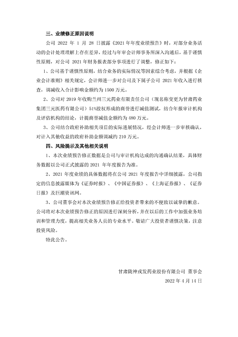 2021年度业绩预告修正公告