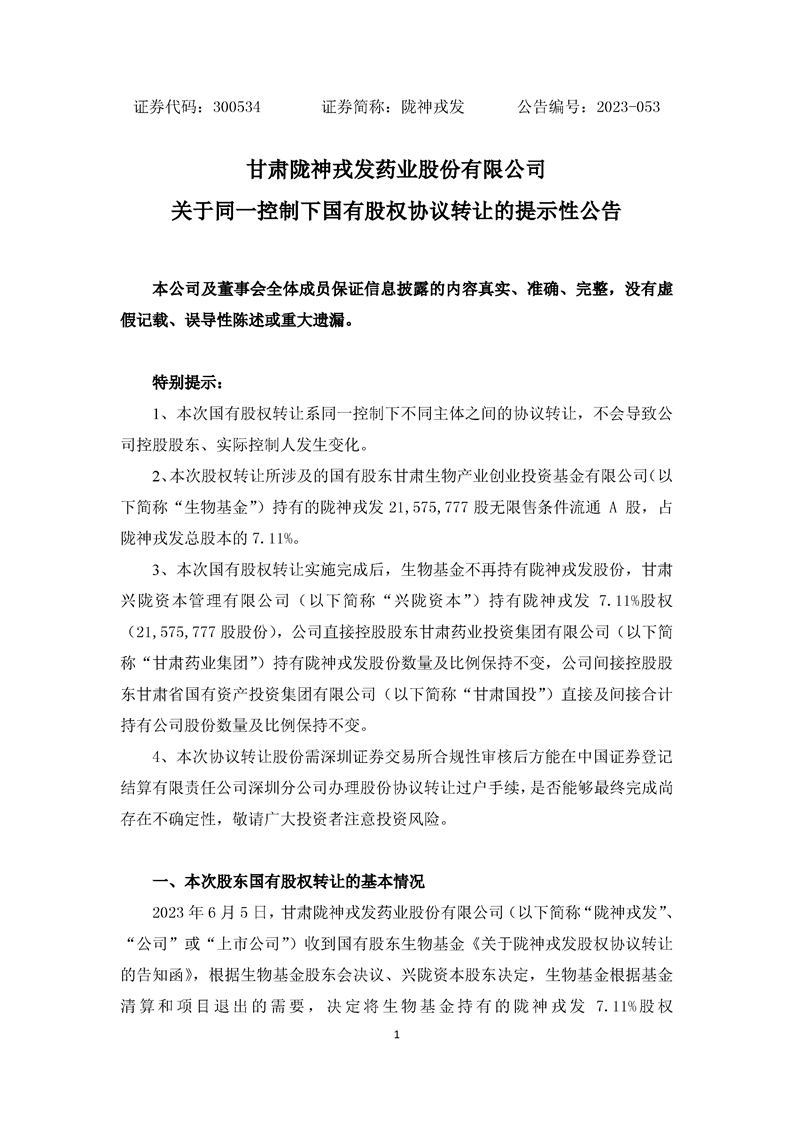 关于同一控制下国有股权协议转让的提示性公告