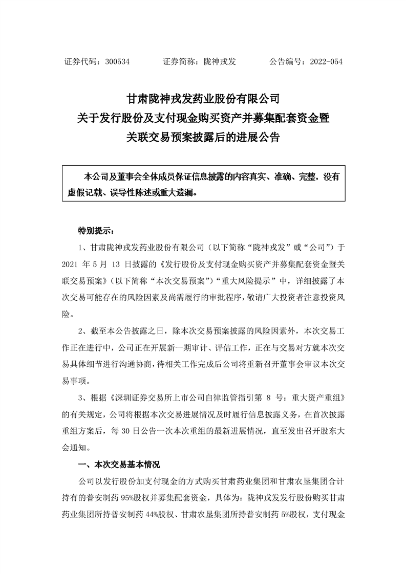 关于发行股份及支付现金购买资产并募集配套资金暨关联交易预案披露后的进展公告