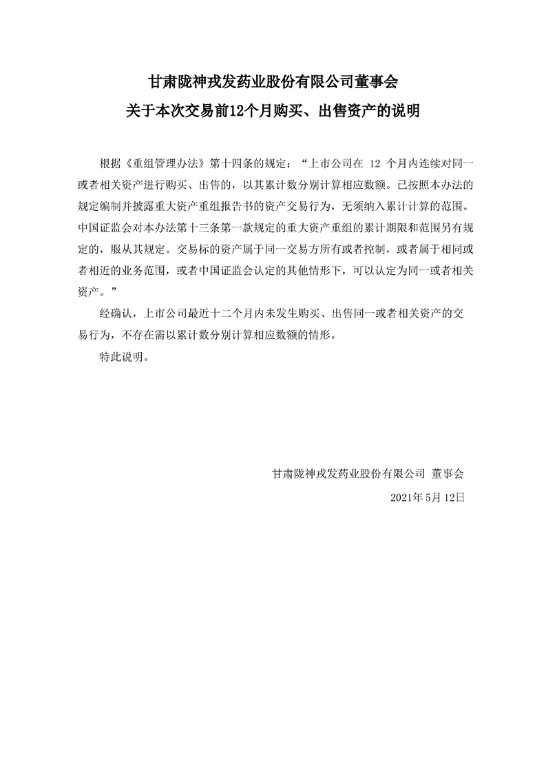 董事会关于本次交易前12个月购买、出售资产的说明