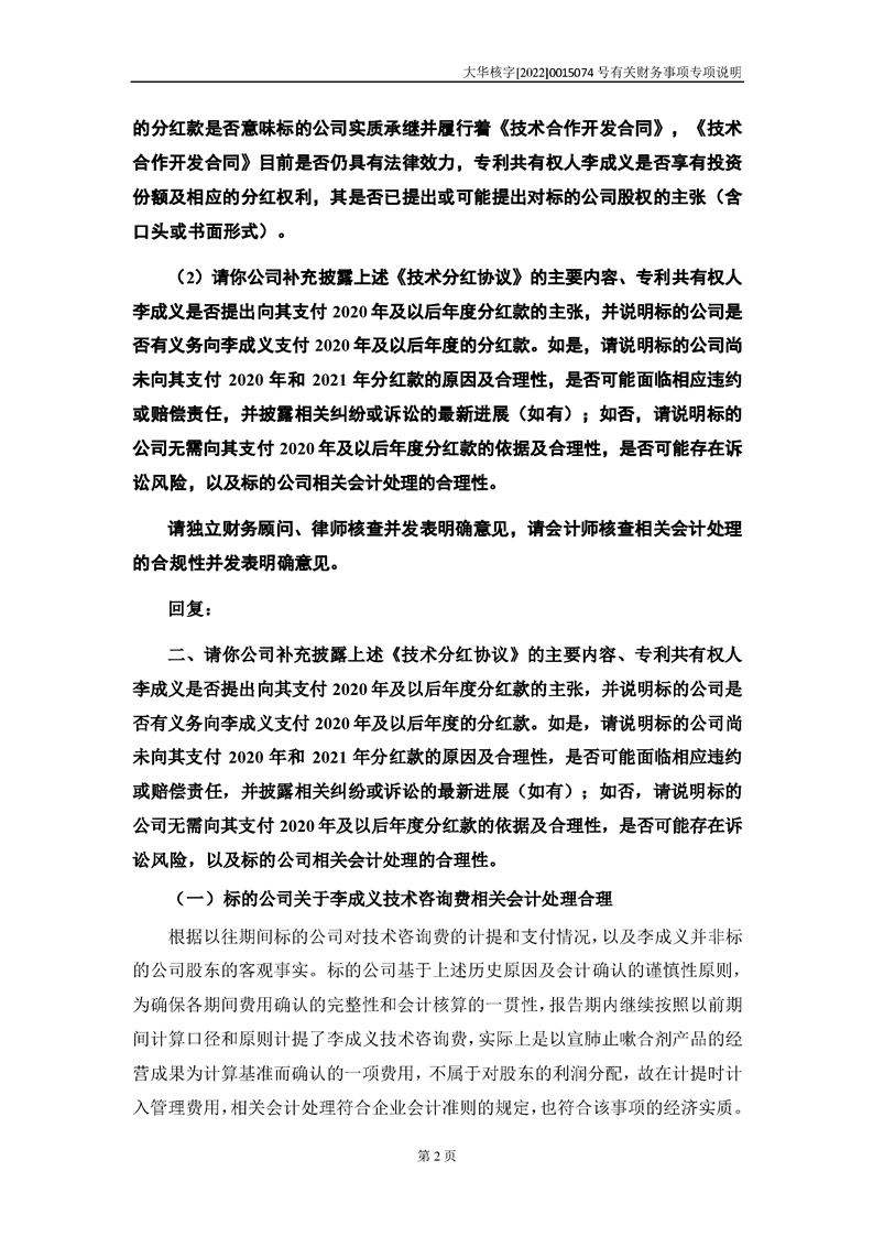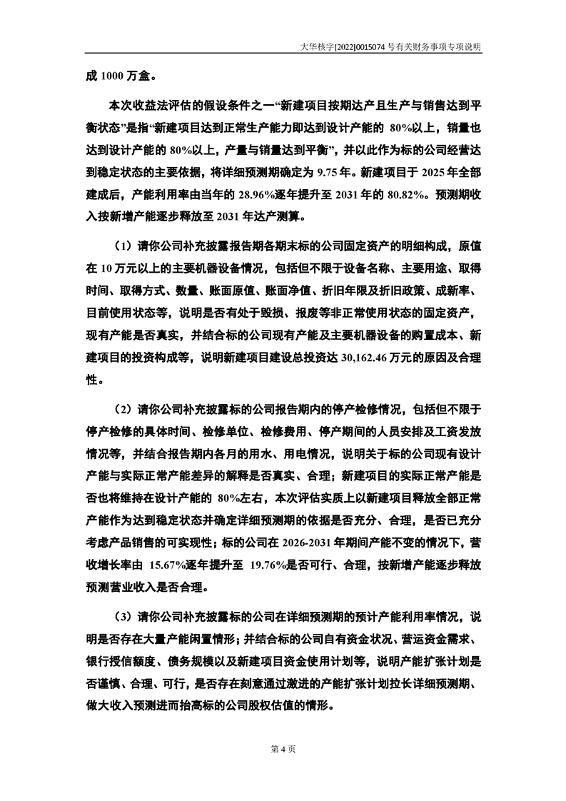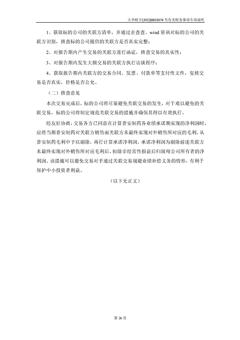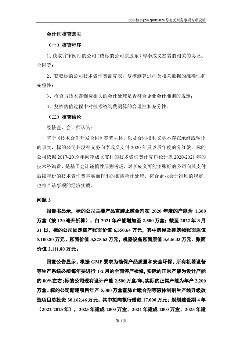 关于深圳证券交易所对甘肃陇神戎发药业股份有限公司的重组问询函中有关财务事项的专项说明-大华核字[2022]0015074号