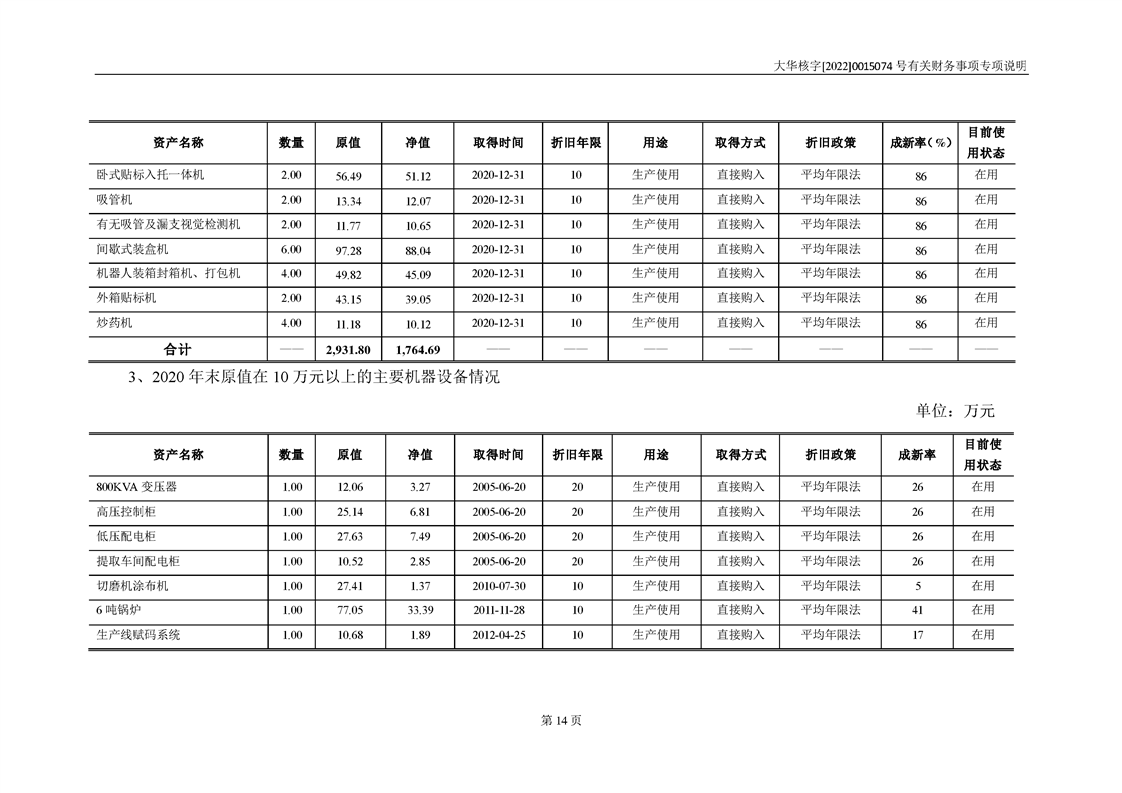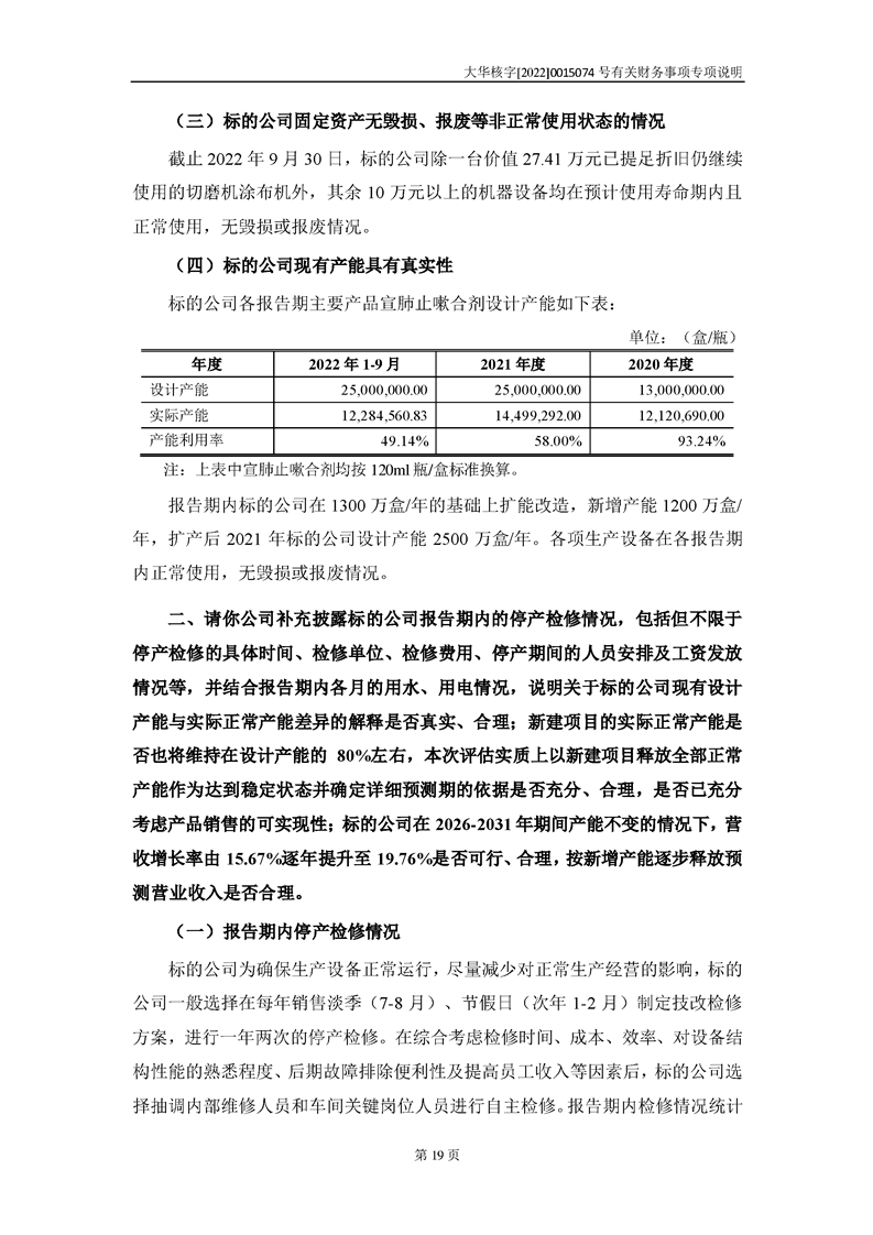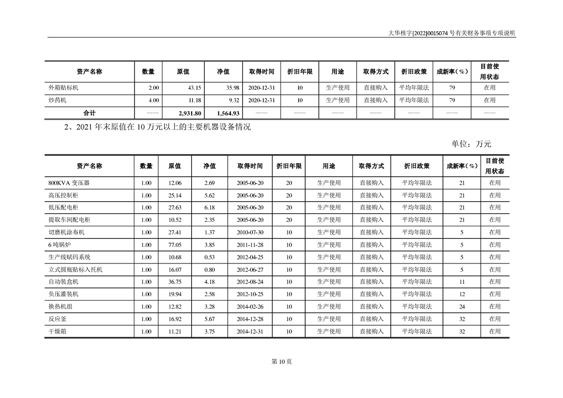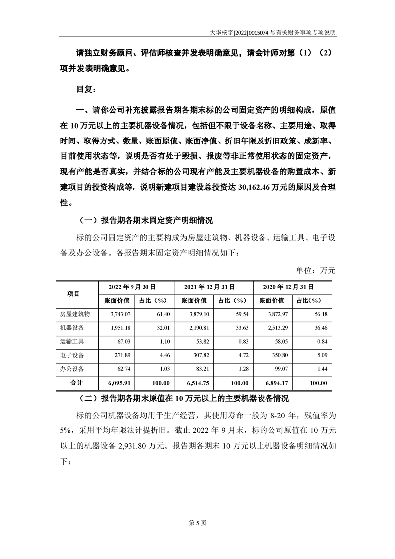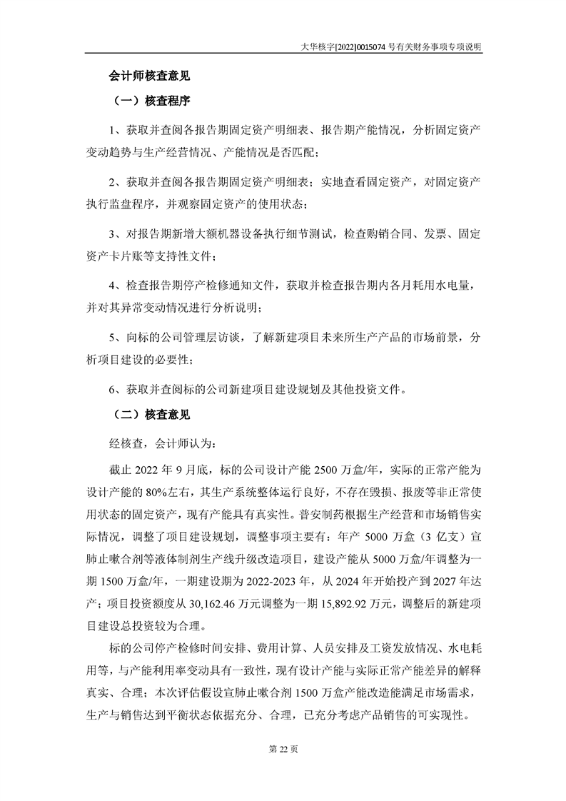 关于深圳证券交易所对甘肃陇神戎发药业股份有限公司的重组问询函中有关财务事项的专项说明-大华核字[2022]0015074号