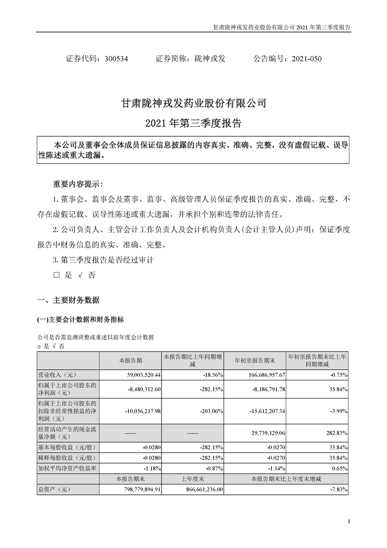 2021年第三季度报告