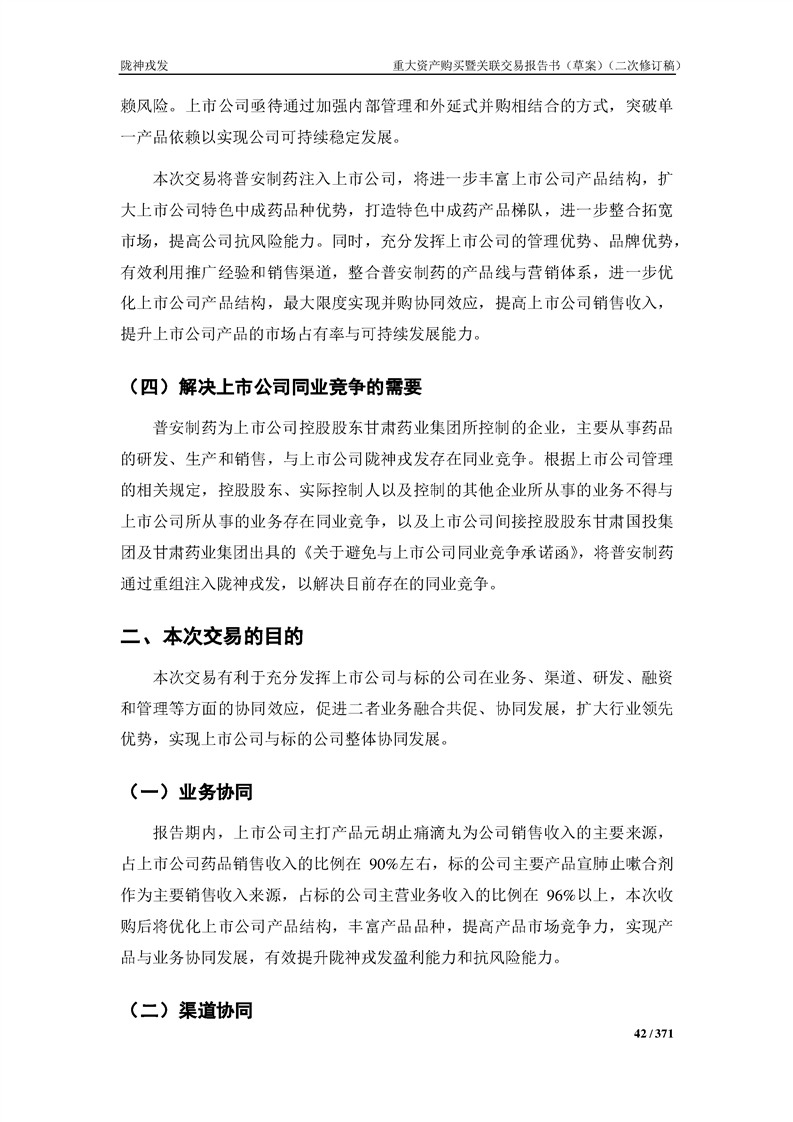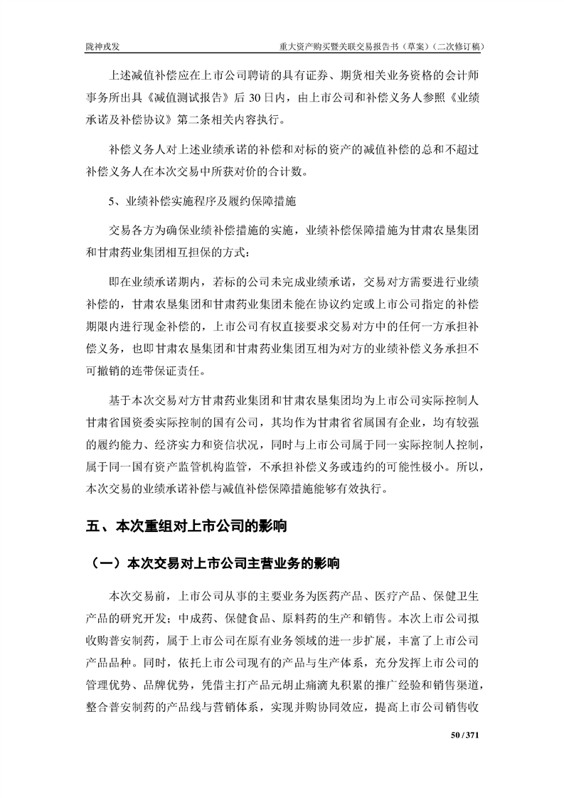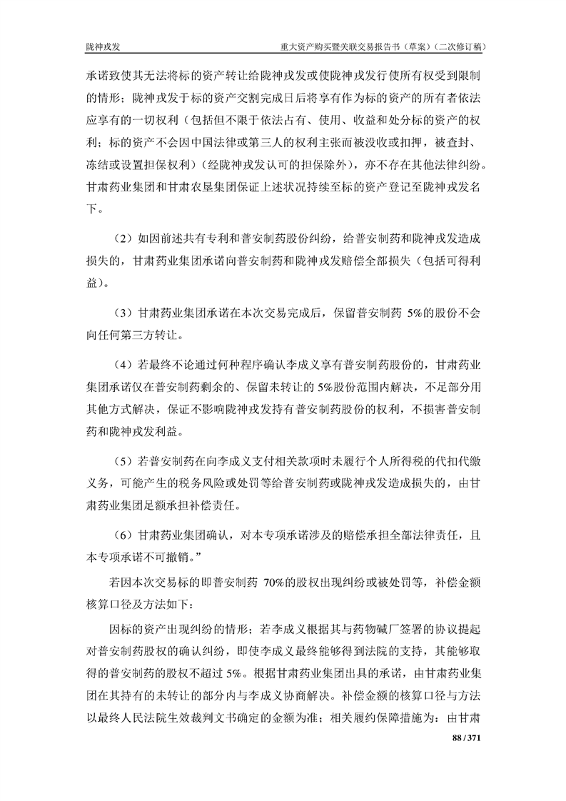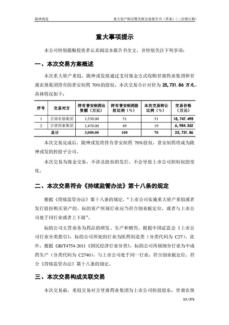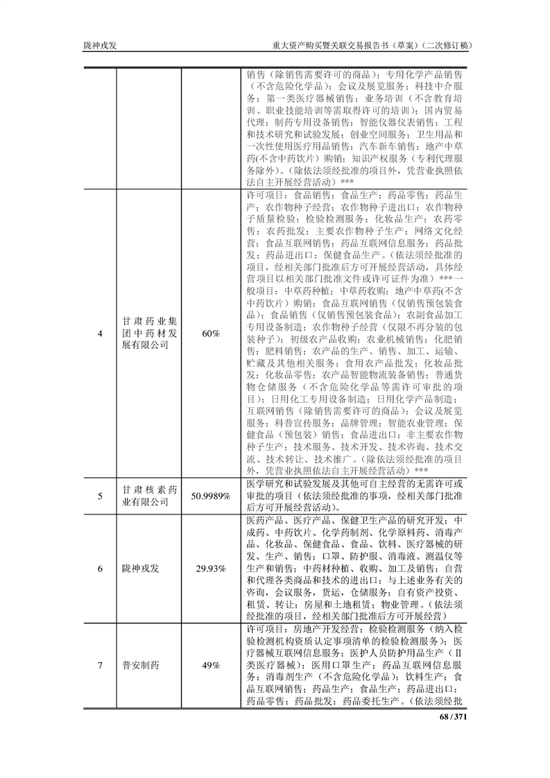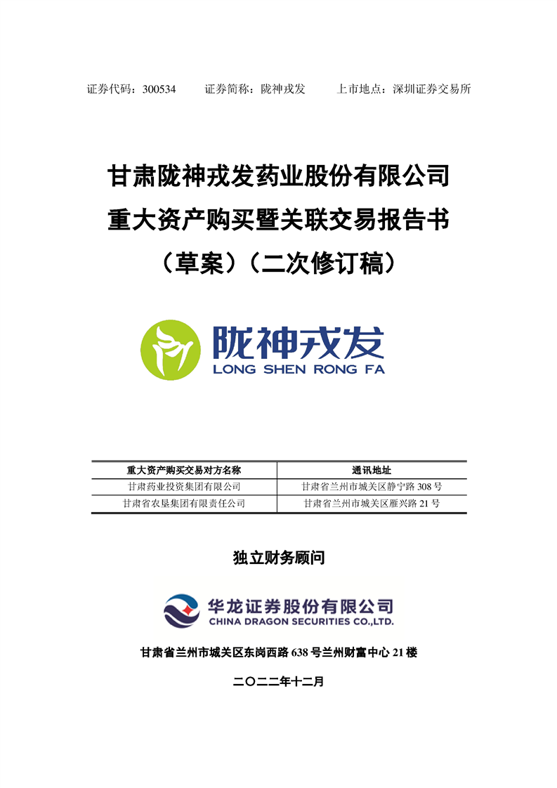 甘肃陇神戎发药业股份有限公司重大资产购买暨关联交易报告书(草案)摘要(二次修订稿)