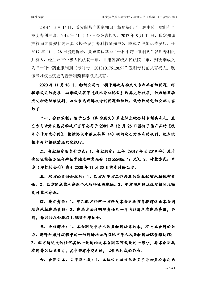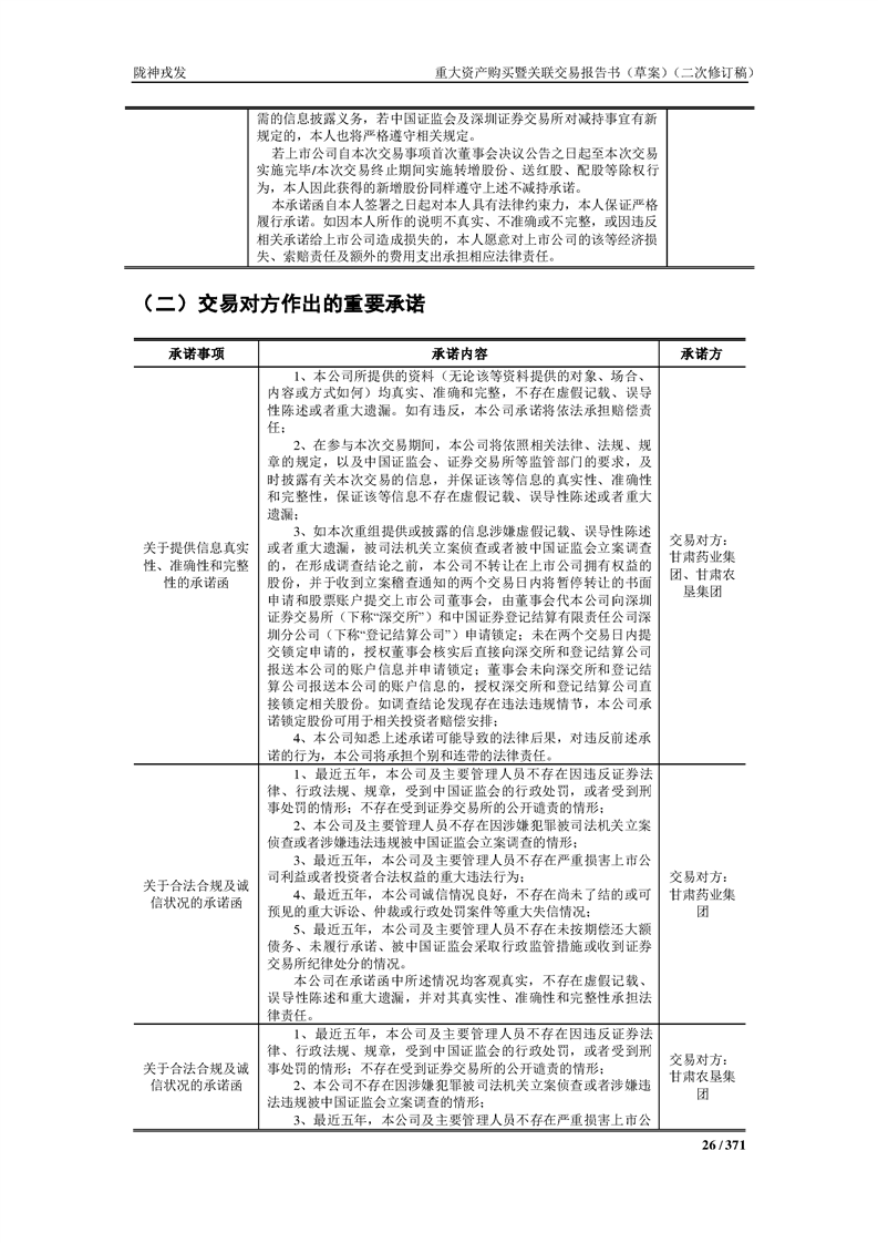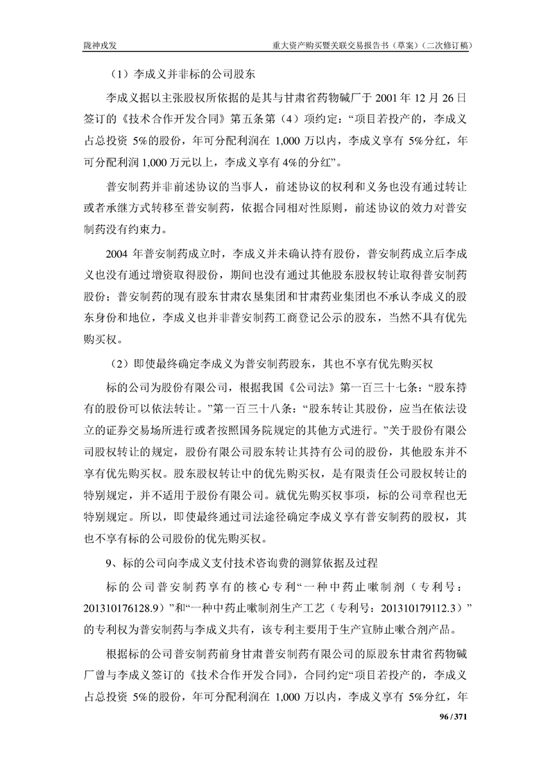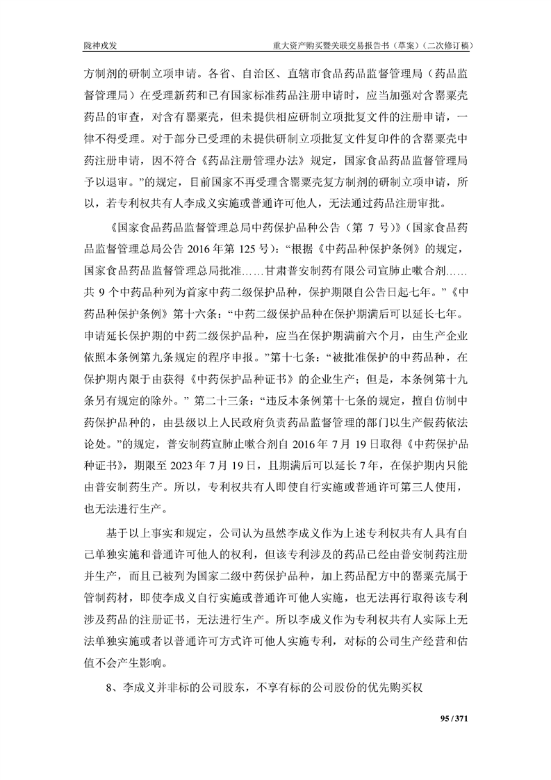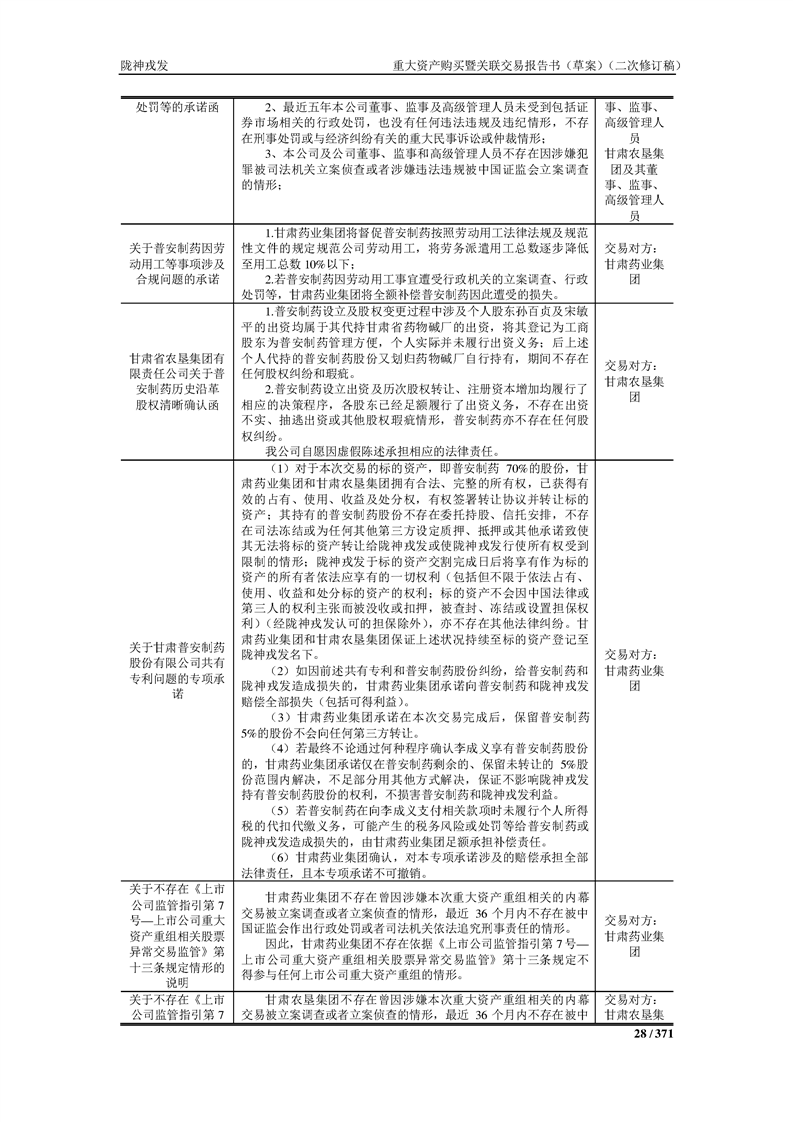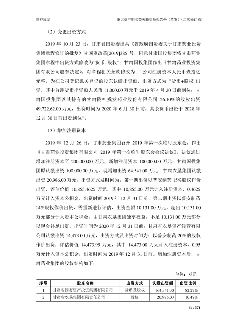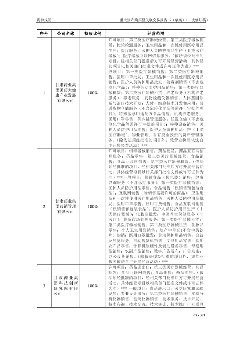 甘肃陇神戎发药业股份有限公司重大资产购买暨关联交易报告书(草案)摘要(二次修订稿)