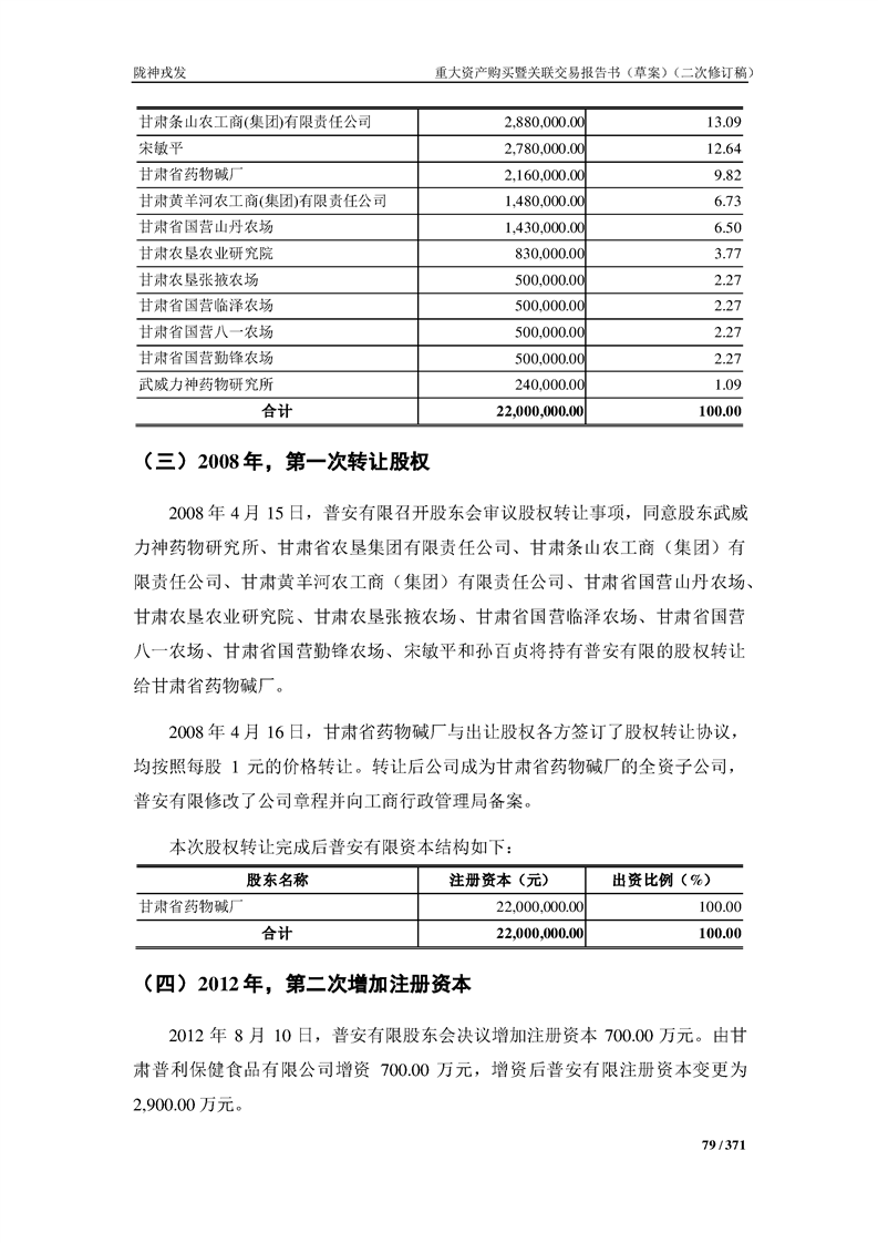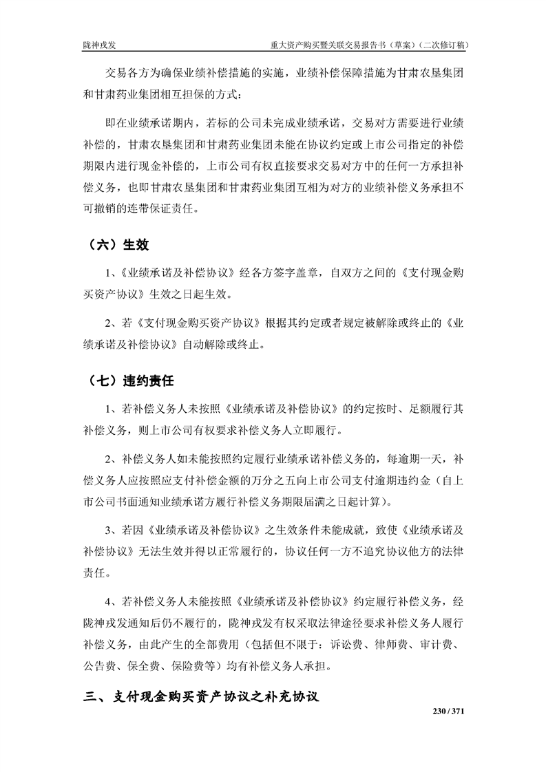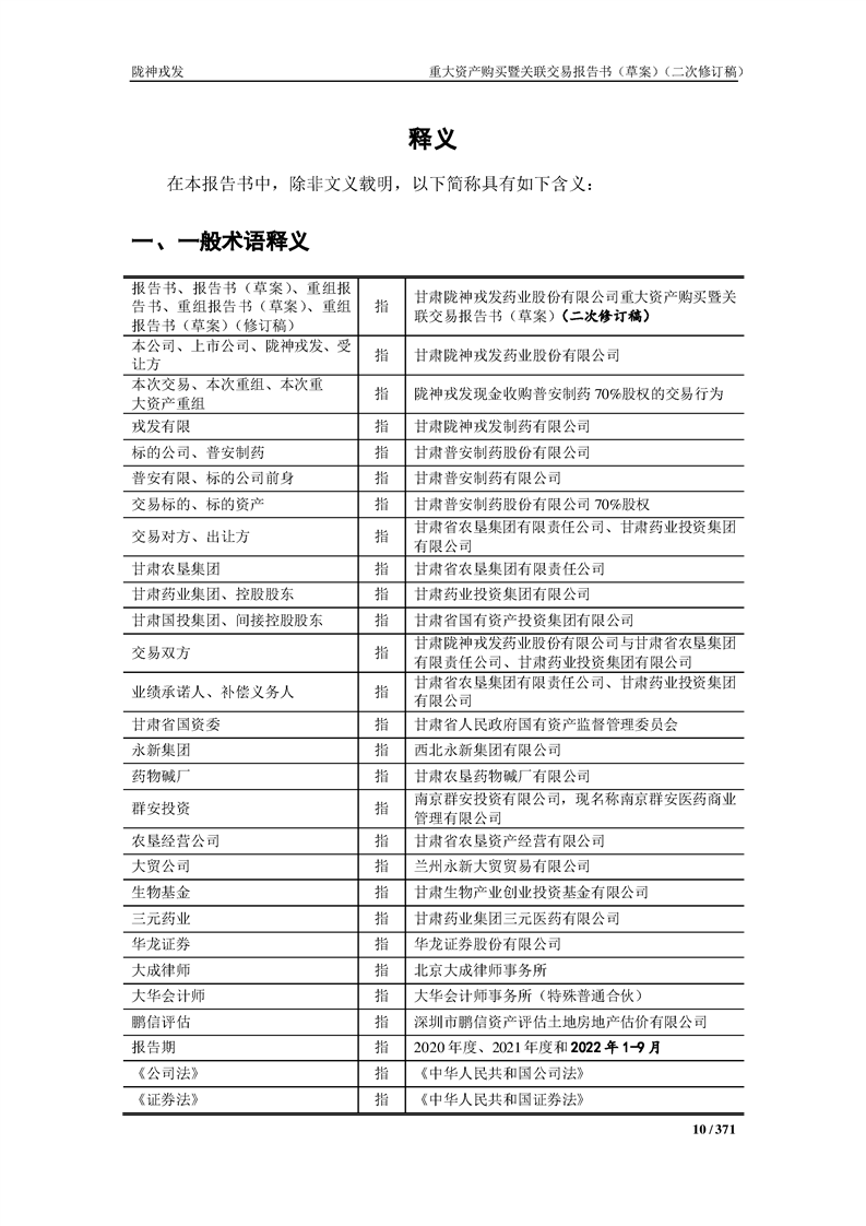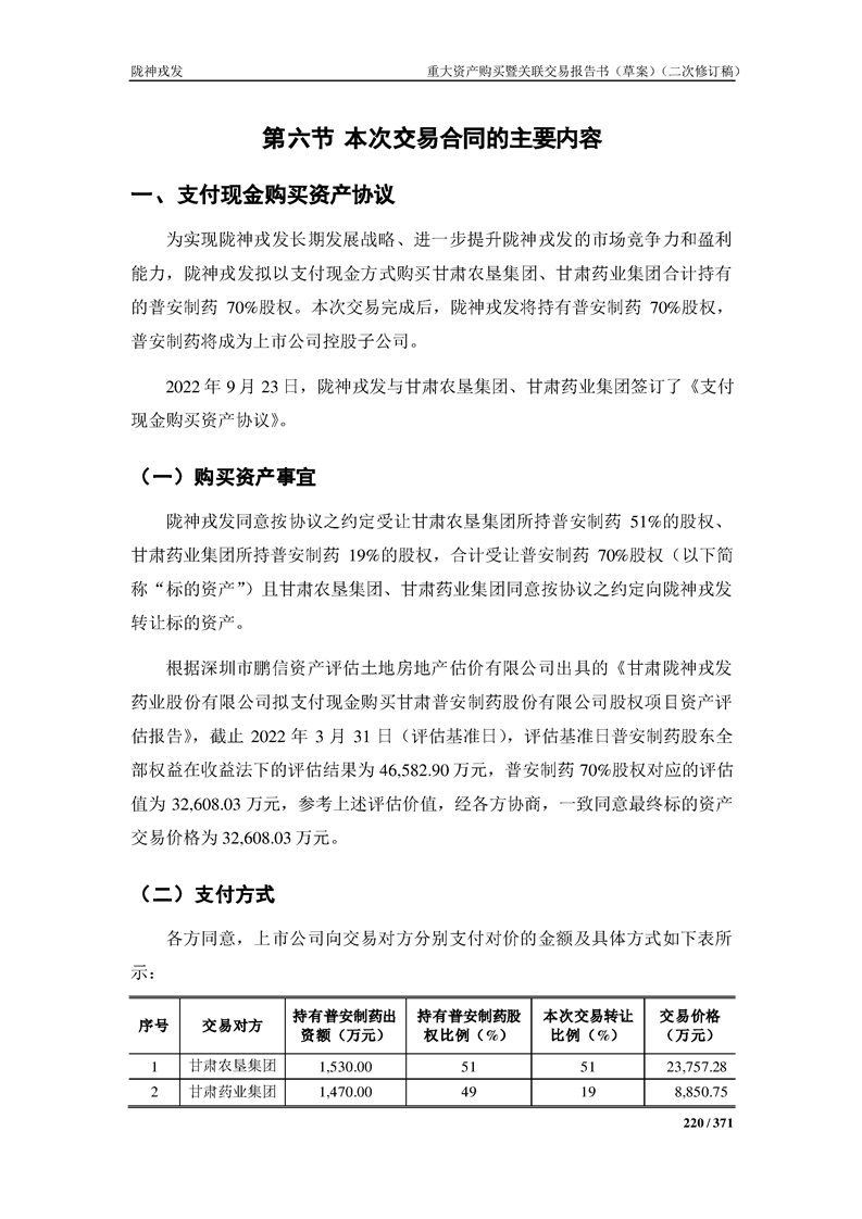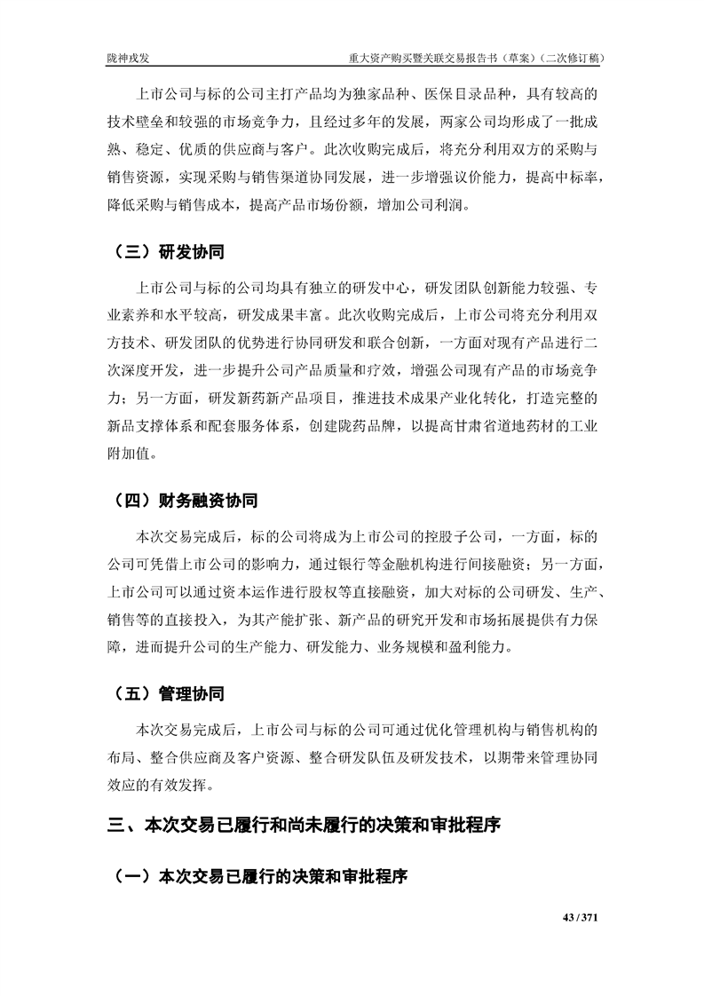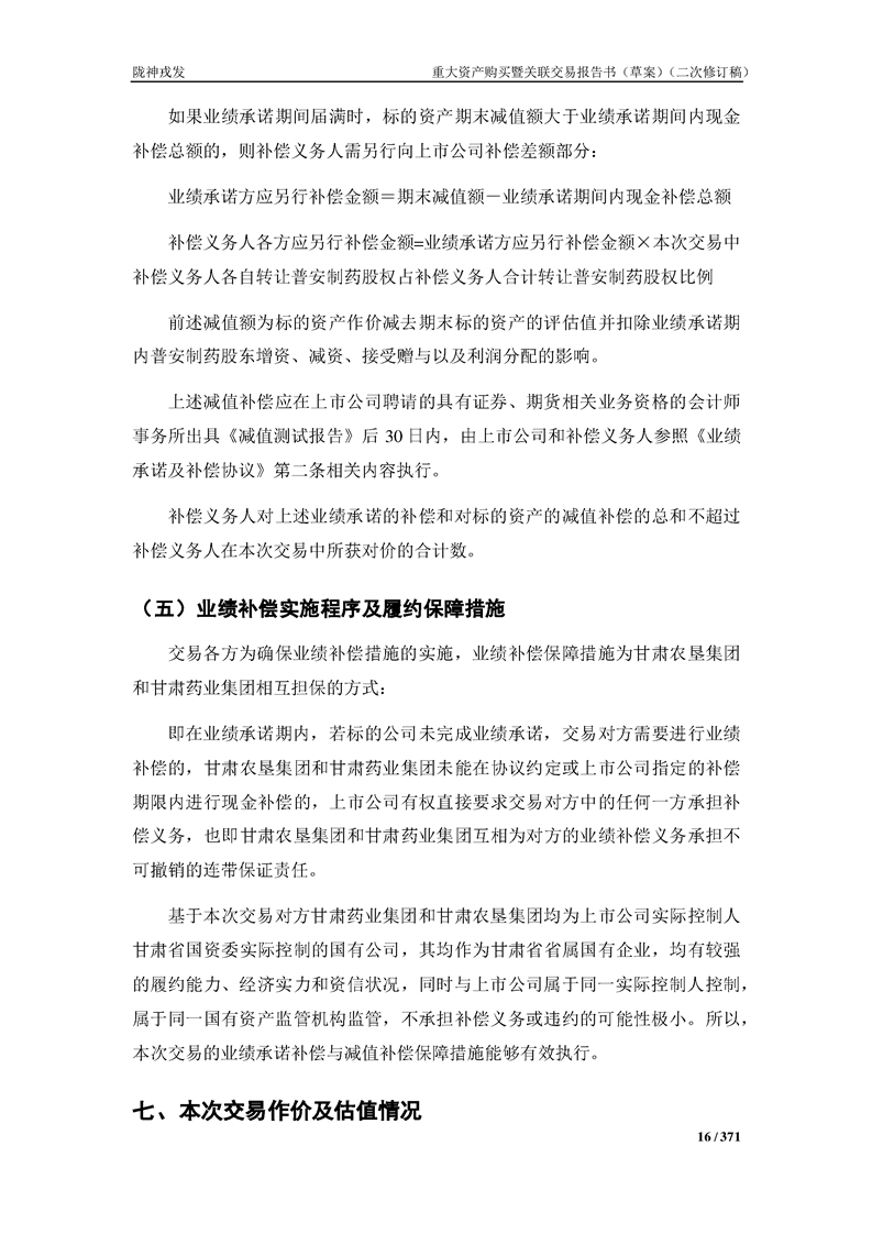 甘肃陇神戎发药业股份有限公司重大资产购买暨关联交易报告书(草案)摘要(二次修订稿)