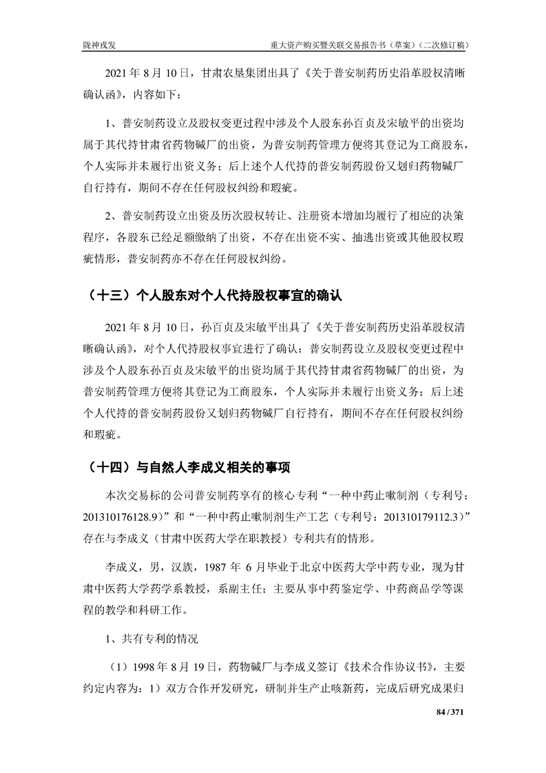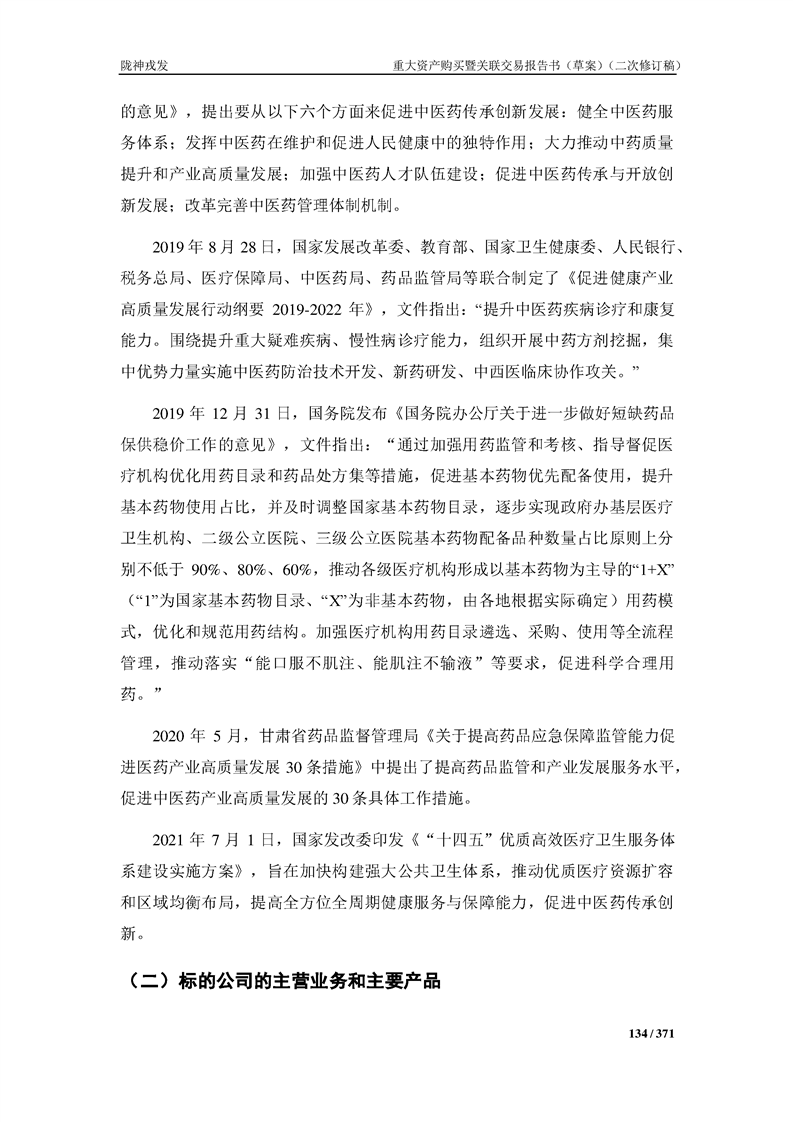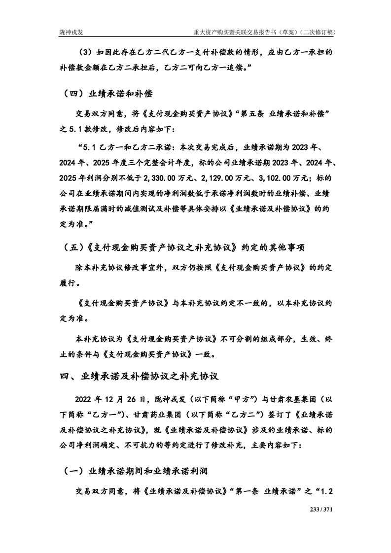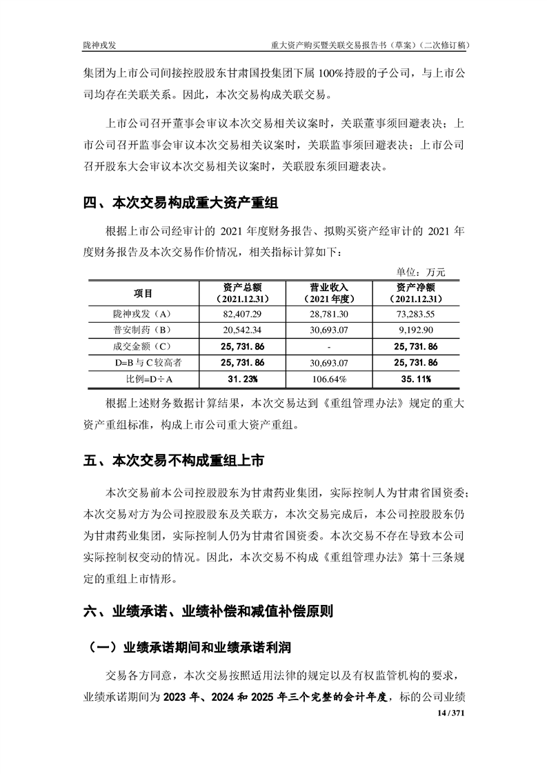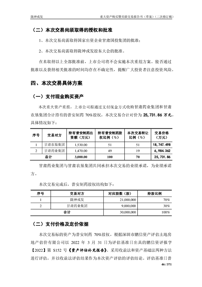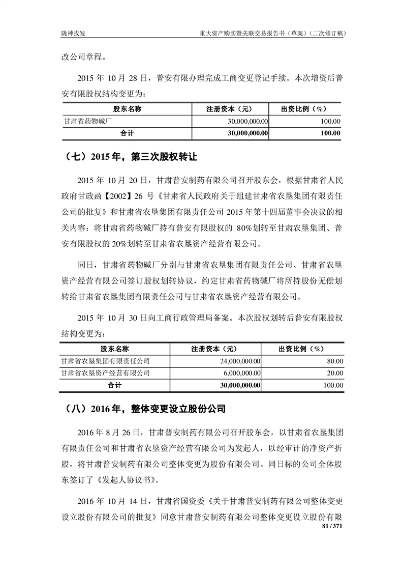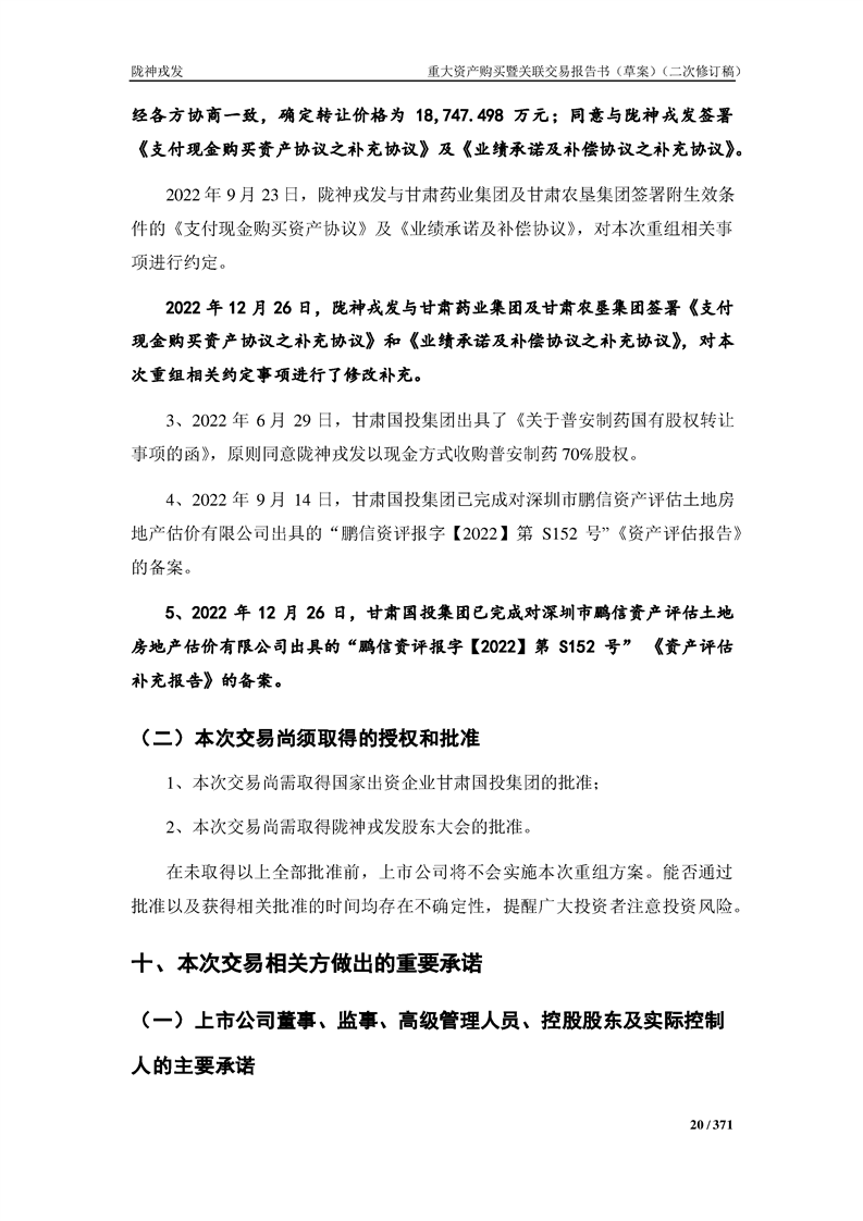 甘肃陇神戎发药业股份有限公司重大资产购买暨关联交易报告书(草案)摘要(二次修订稿)