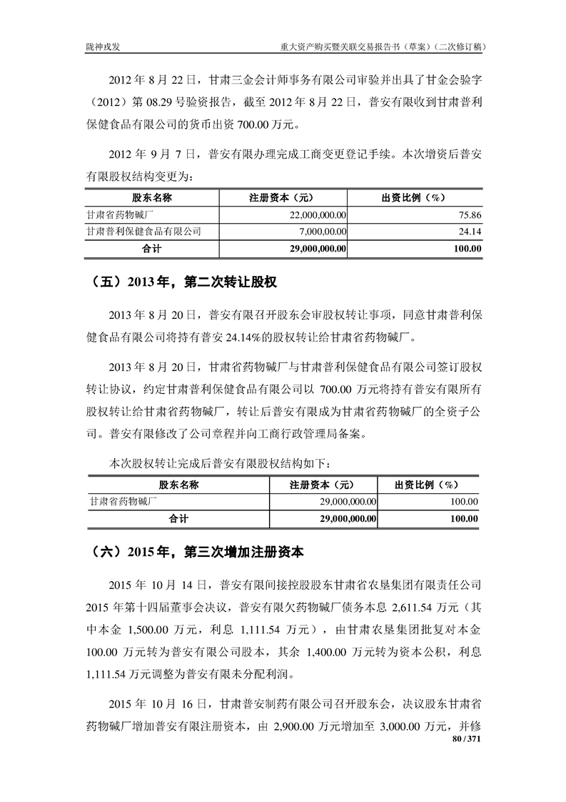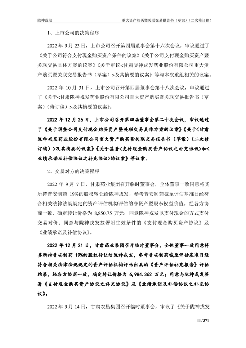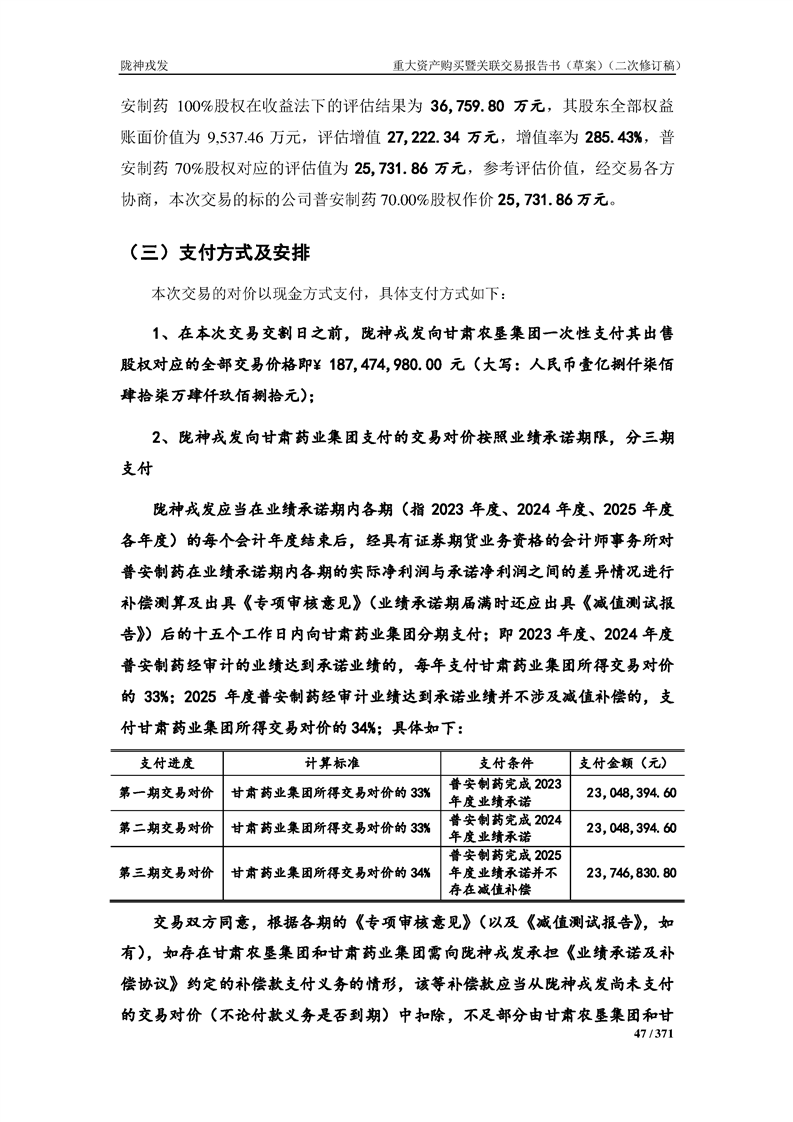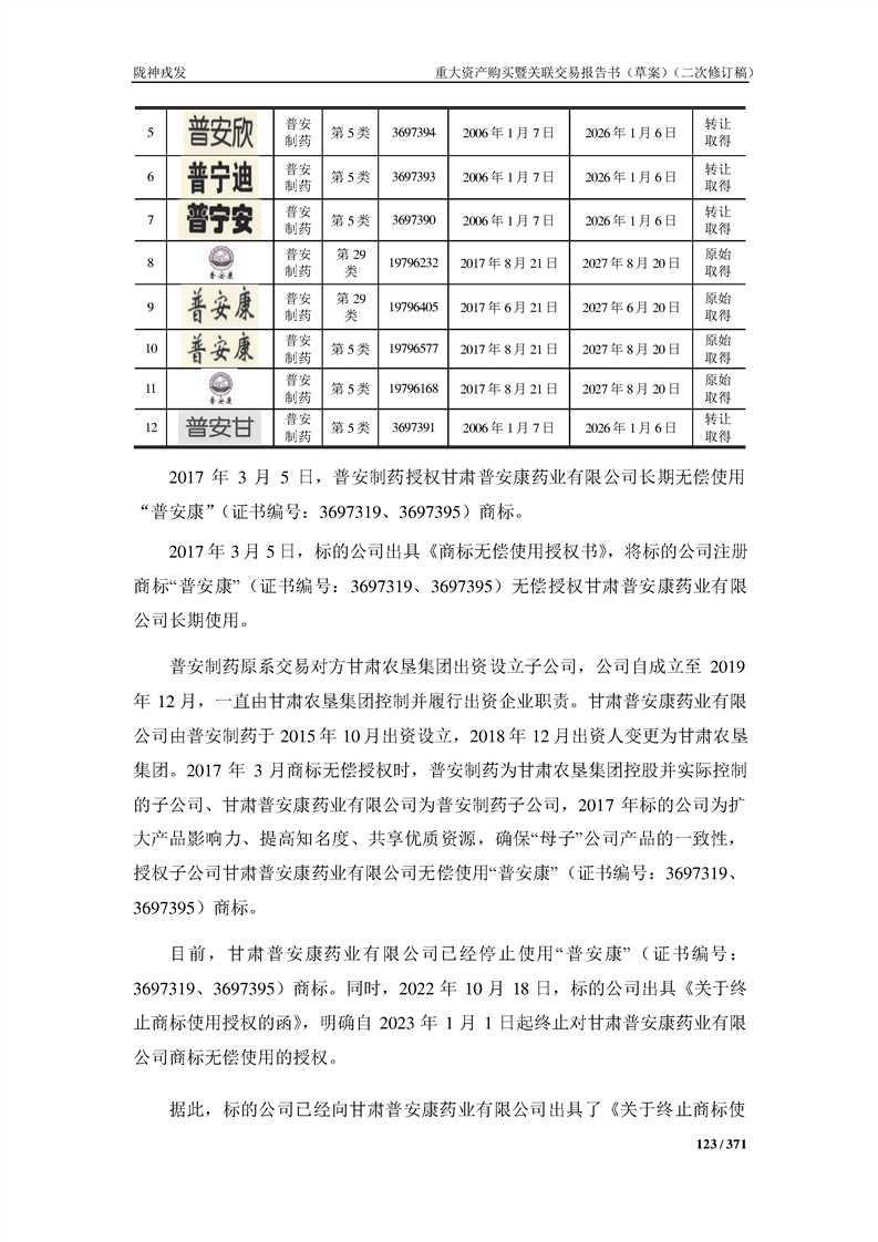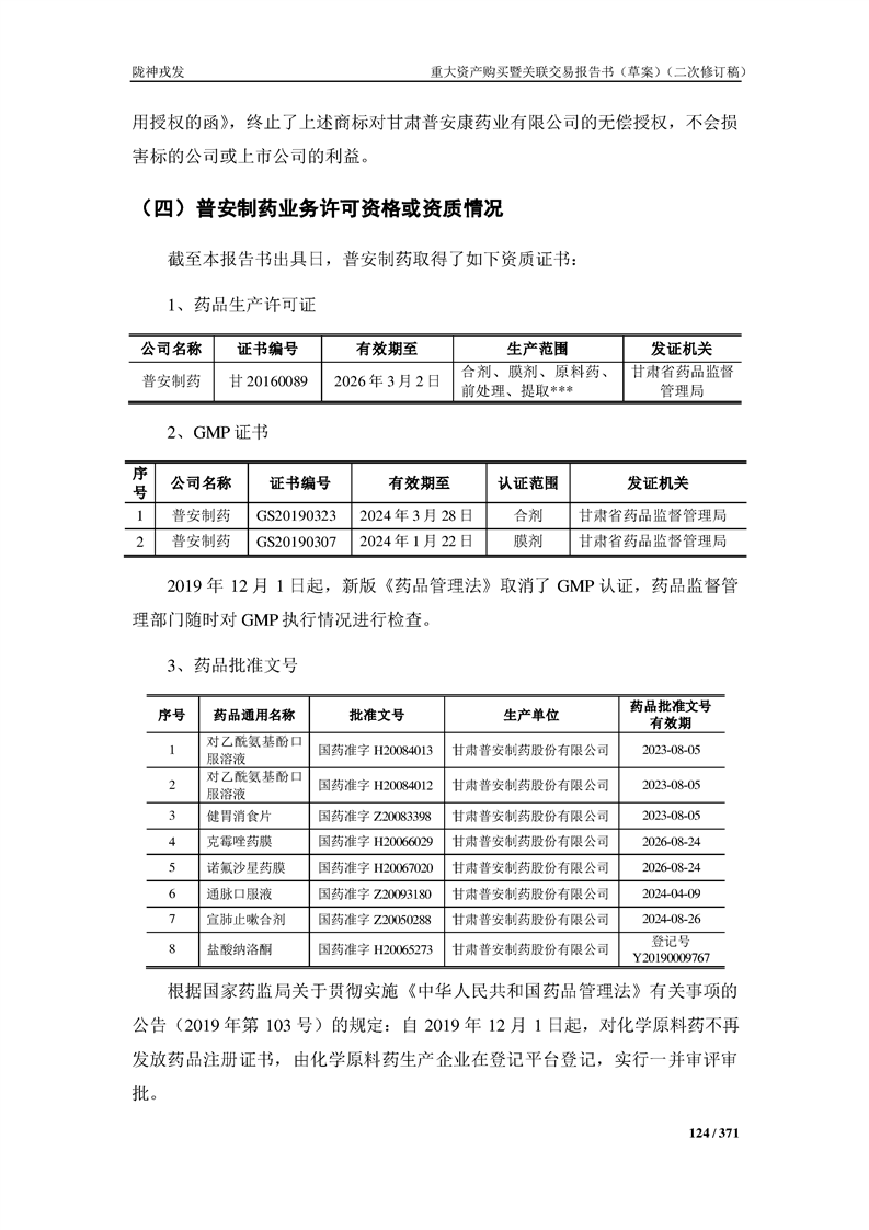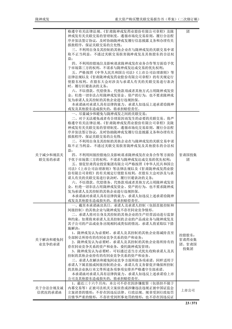 甘肃陇神戎发药业股份有限公司重大资产购买暨关联交易报告书(草案)摘要(二次修订稿)