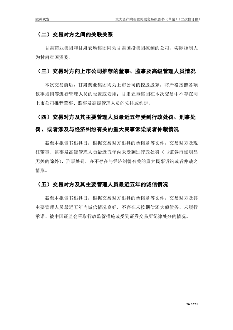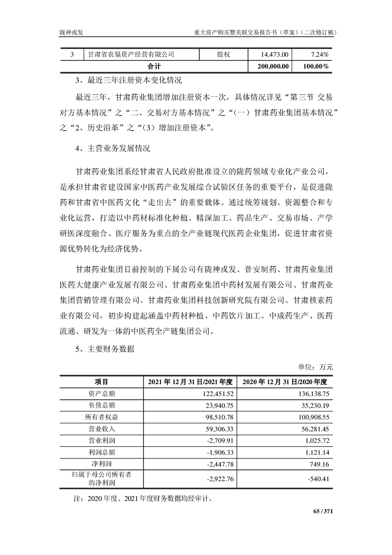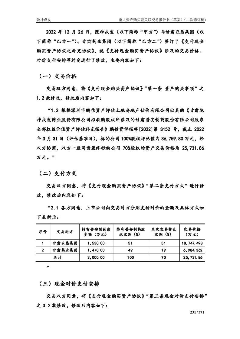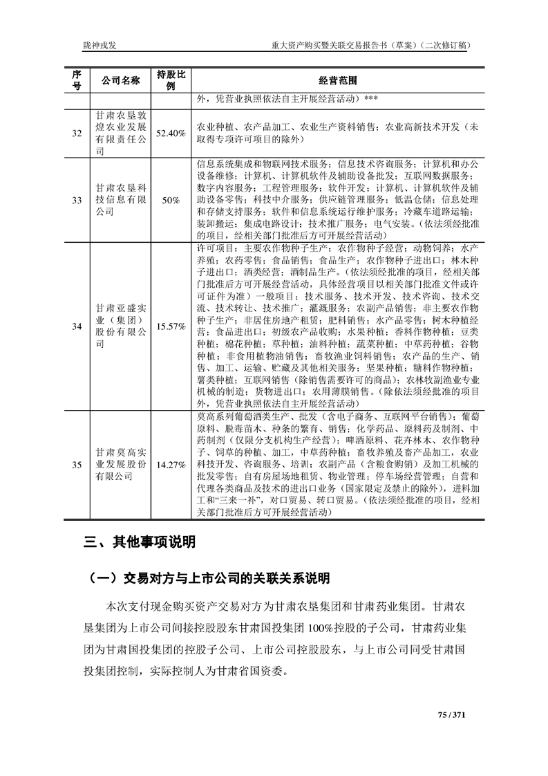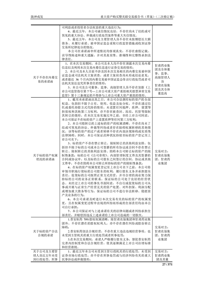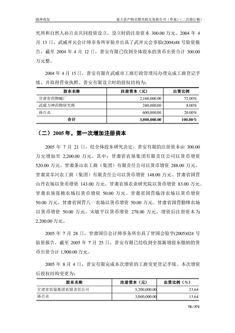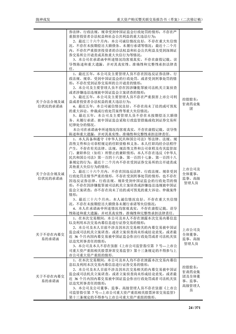 甘肃陇神戎发药业股份有限公司重大资产购买暨关联交易报告书(草案)摘要(二次修订稿)